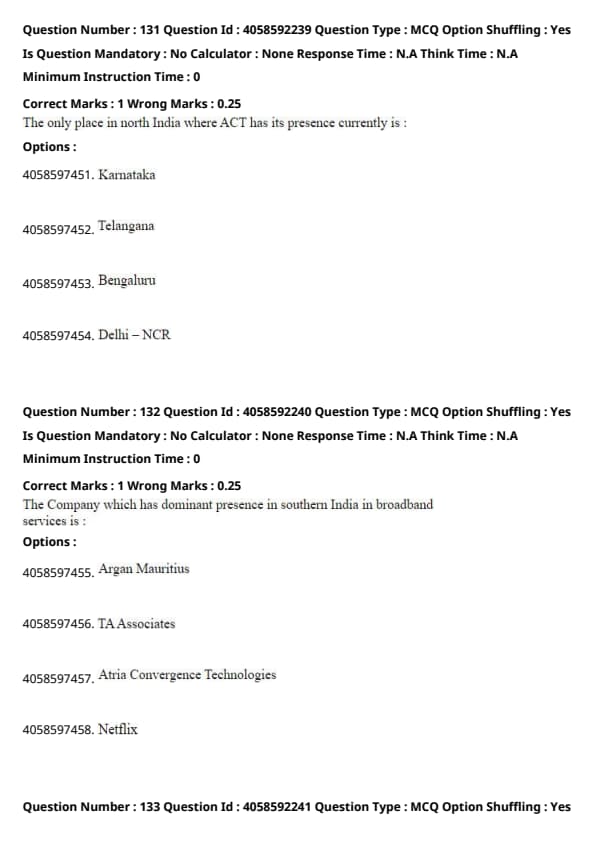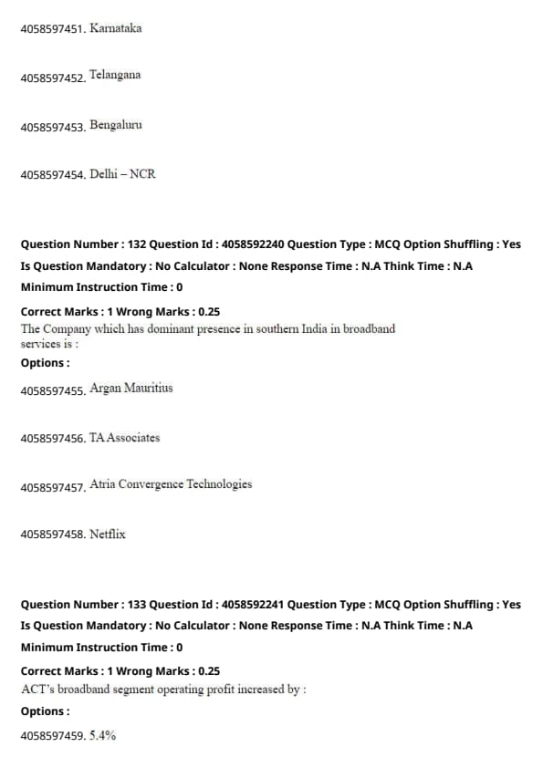 The passage clearly mentions that Atria Convergence Technologies (ACT) operates in over 20 cities with a dominant presence in southern India. Hence, the company with a dominant presence in southern India in broadband services is Atria Convergence Technologies. Quick Tip: When identifying companies or key points from a passage, focus on the specific details that describe their activities or geographic operations.