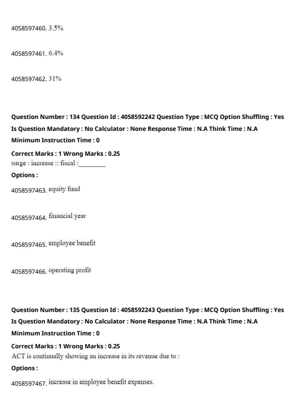 The word "surge" refers to a significant increase, and "increase" is a synonym. Similarly, "fiscal" refers to a financial period, which is synonymous with a "financial year". Therefore, the analogy is best completed by financial year. Quick Tip: In analogy problems, look for relationships based on synonymy or functional association.