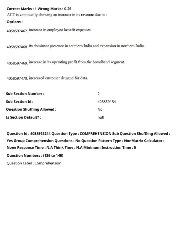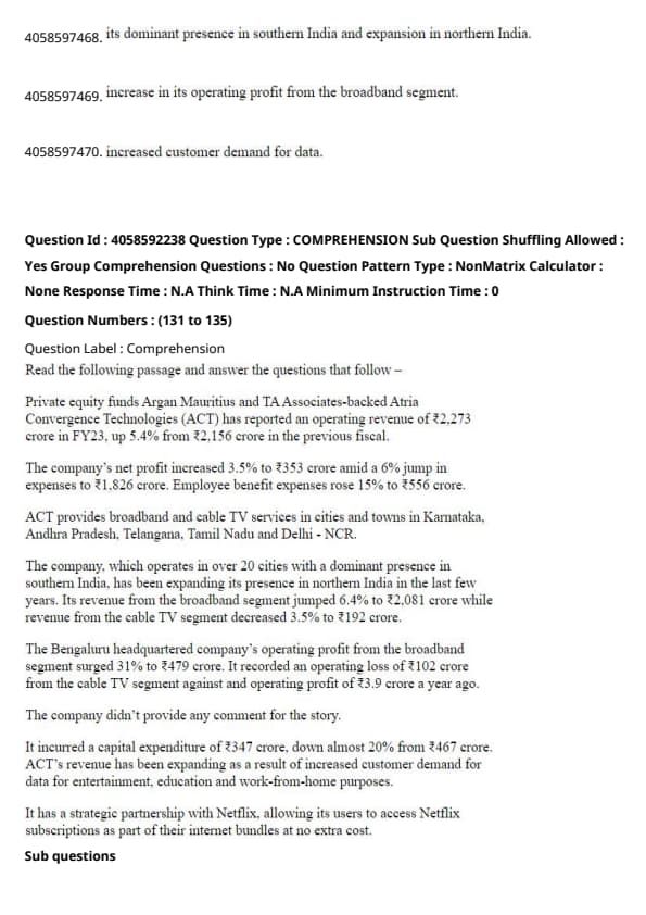 The passage indicates that ACT’s revenue has been expanding as a result of increased customer demand for data for entertainment, education, and work-from-home purposes. Therefore, the correct answer is increased customer demand for data. Quick Tip: Look for key details in the passage that explain why certain actions or outcomes are happening, such as market trends or customer behavior.