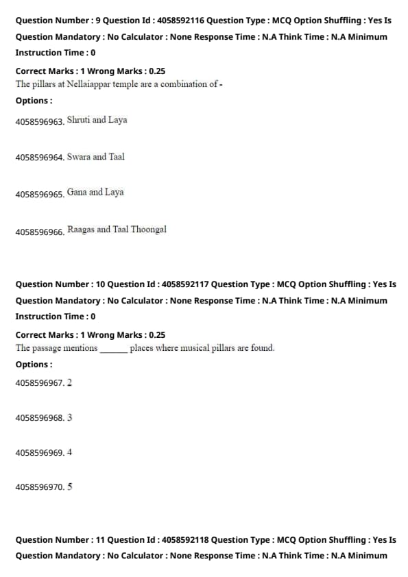 The passage cites Nellaiappar, Hampi, Kanyakumari, and Thiruvananthapuram as locations where musical pillars can be found, totaling four different places. Quick Tip: When studying architectural sites, noting the spread and uniqueness of certain features across different locations can offer insights into cultural exchanges and technological spread.