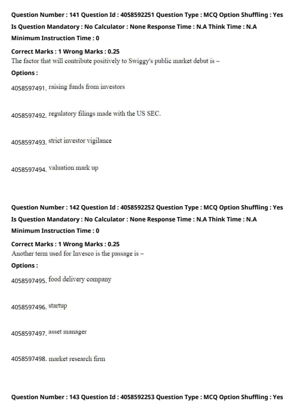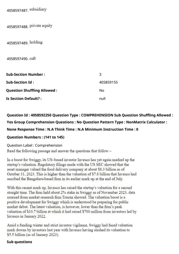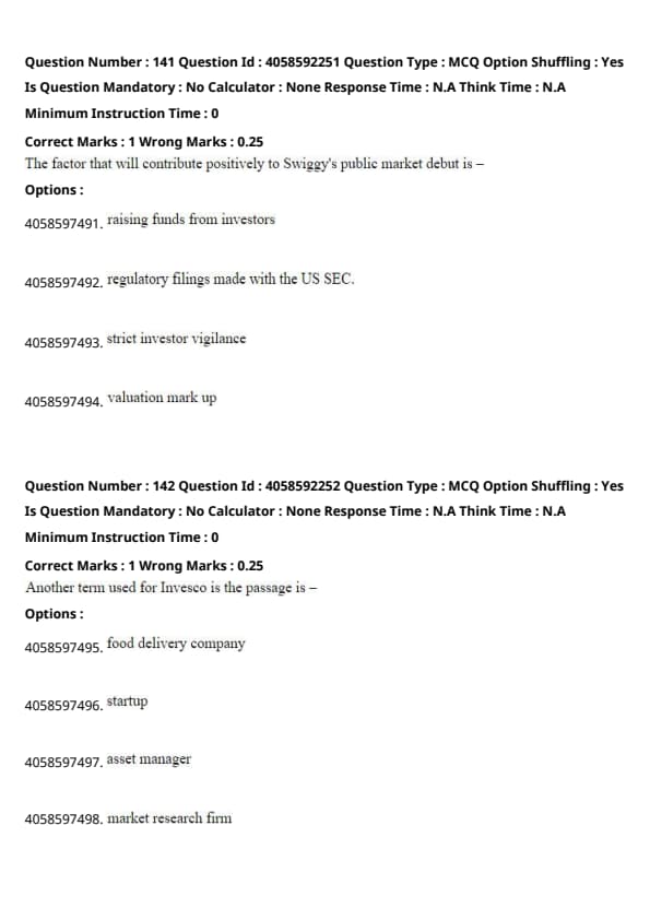 Invesco is referred to as an asset manager in the passage, as it is the entity that marked up Swiggy’s valuation. Quick Tip: Pay attention to descriptive terms used for specific entities in the passage to accurately identify their role.