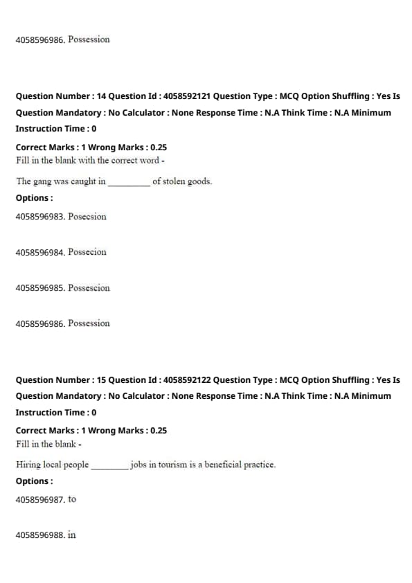 The correct spelling is "possession," which refers to the act of having or holding something in one's control, in this context, stolen goods. Quick Tip: Always verify the spelling of commonly miswritten words, especially those like "possession" that have repeated consonants and vowels.