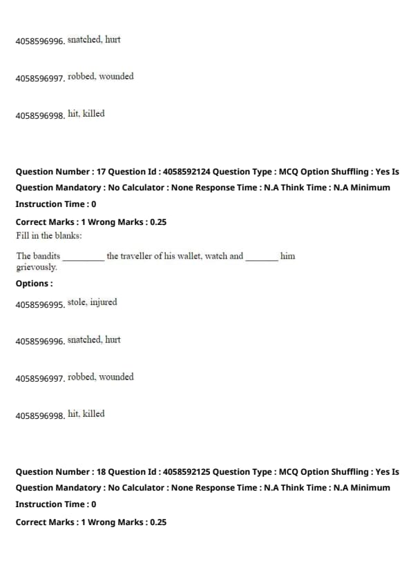 The verbs "robbed" and "wounded" correctly describe the actions taken by the bandits, emphasizing the severity of both the theft and physical harm. Quick Tip: Choosing precise verbs can significantly affect the impact and clarity of a sentence, especially in narratives involving actions and consequences.