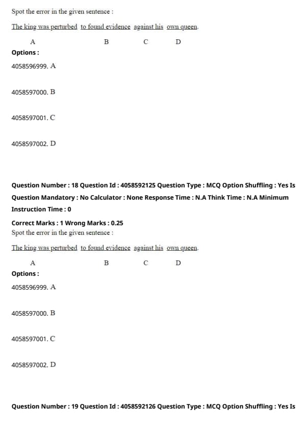 The error in the sentence is in part B. The phrase "to found" should be corrected to "to find" to use the correct infinitive form of the verb 'find'. The corrected sentence should read: "The king was perturbed to find evidence against his own queen." Quick Tip: In proofreading, pay close attention to verb forms to ensure they correctly reflect the time, aspect, and mood intended by the sentence structure.