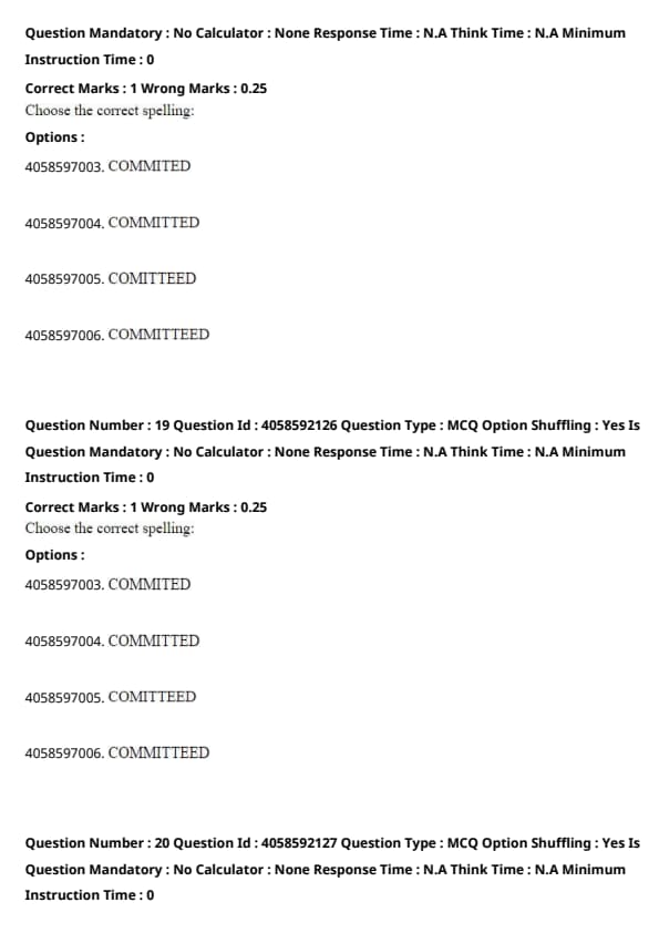 - "COMITTEED" and "COMMITTEED" both have an extra "E", making them incorrect as well.