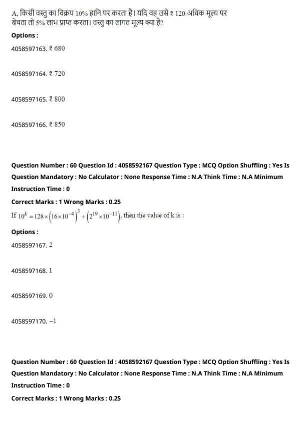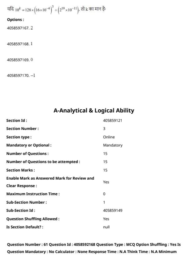 Final Answer: \[ \boxed{1} \] Quick Tip: In such problems, carefully check each possible option and perform the mathematical operations step-by-step to verify which option satisfies the equation.