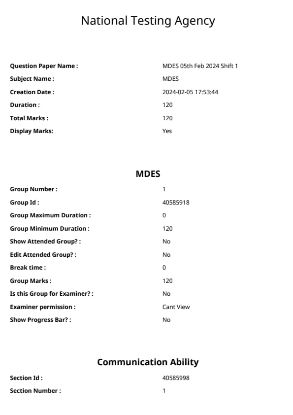 The NIFT 2024 Master of Design (M.Des) Entrance Exam is a national-level test conducted by the National Institute of Fashion Technology (NIFT) for admission to its postgraduate design program. The exam assesses candidates on their creativity, analytical thinking, problem-solving ability, and knowledge of design trends.The NIFT 2024 Master of Design (M.Des) Shift 1 Entrance Exam has a total of 120 marks and a duration of 2 hours.NIFT Master of Design (M.Des) Shift 1 Question Paper With Solution PDF is available here.