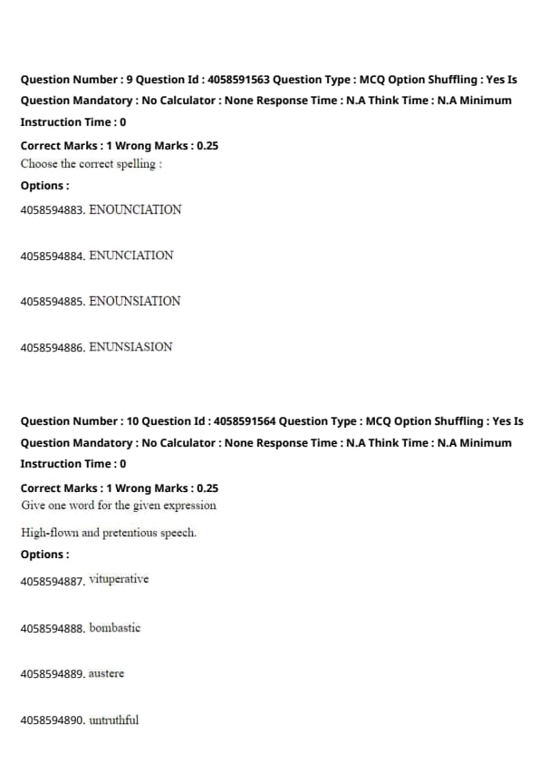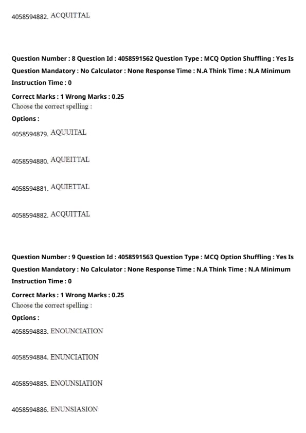 Option (1) "Enounciation" is incorrect because it introduces an unnecessary "o" after "en."