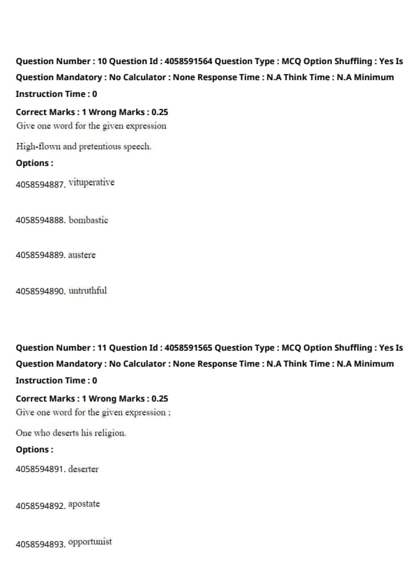 Option (3) "Austere" means severe or strict in manner, attitude, or appearance, which is the opposite of bombastic, as it implies simplicity or plainness rather than exaggerated speech.