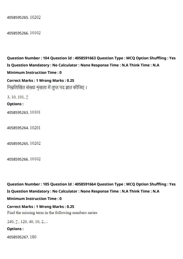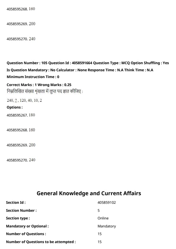 Thus, the missing term must be \( 240 \div 2 = 120 \), which follows the consistent pattern of division by increasing factors. Therefore, the missing term is 240. Quick Tip: When identifying number series patterns, check for division or multiplication by constants between terms.