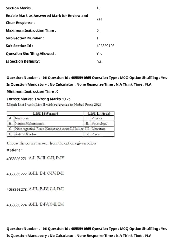 Match List I with List II with reference to Nobel Prize 2023: