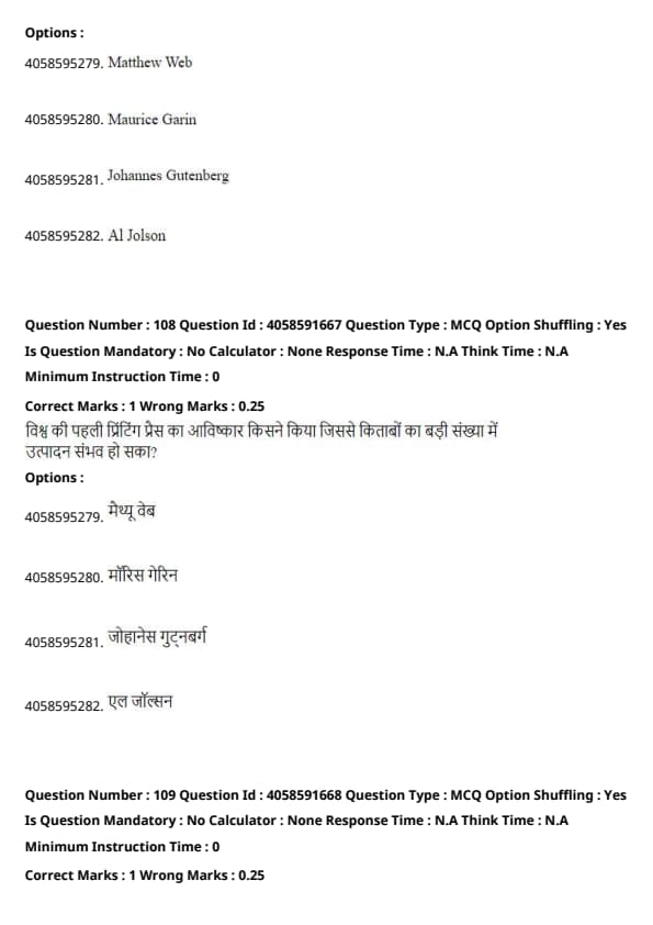 The world's first printing press, which enabled mass production of books, was invented by Johannes Gutenberg in the 15th century. His invention revolutionized the printing industry. Quick Tip: When asked about historical inventions, focus on the inventors who introduced major technological breakthroughs that impacted society, such as Gutenberg for printing.