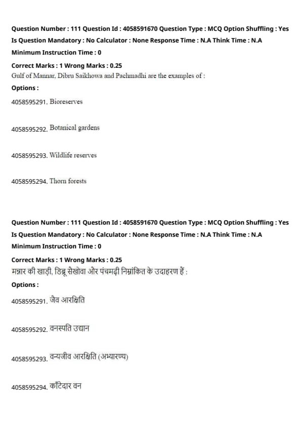 The Gulf of Mannar, Dibru Saikhowa, and Pachmadhi are all recognized as biosphere reserves, which are areas that promote sustainable development and conserve the biological diversity of the region. They are not botanical gardens or wildlife reserves specifically. Quick Tip: Biosphere reserves are a type of protected area meant to conserve both biodiversity and cultural diversity.