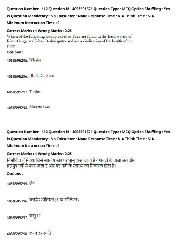 The "Susu" refers to the Gangetic Dolphin, a freshwater species found in the River Ganga and River Brahmaputra. These dolphins are an important indicator of the health of the river, as their presence signifies good water quality and a healthy ecosystem. Quick Tip: Freshwater dolphins are often used as indicators of water quality, as they are sensitive to pollution.