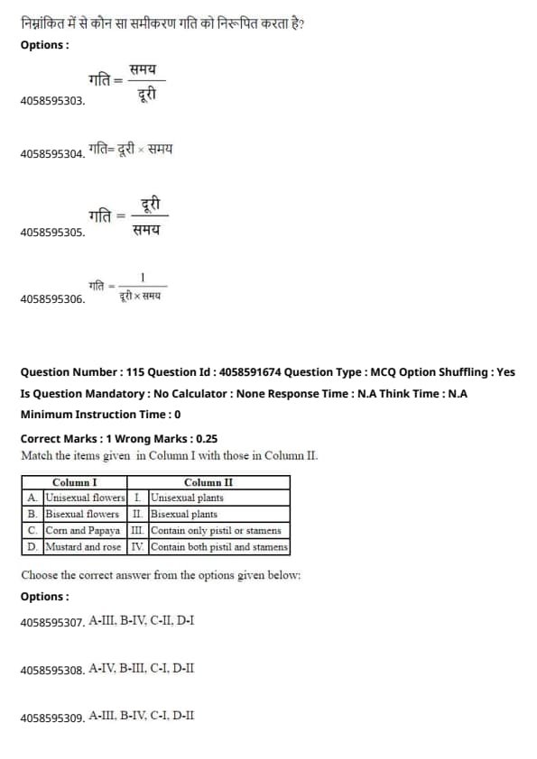 C. Corn and Papaya are examples of plants with unisexual flowers, meaning they should match with I (Unisexual plants).