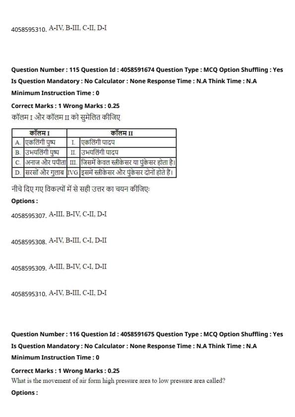 (C) A-II. B-III, C-I, D-IV