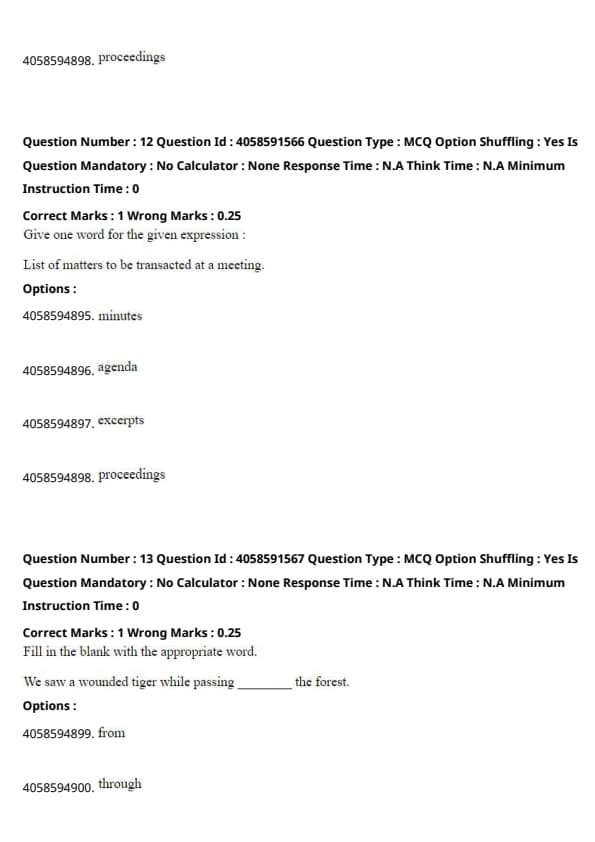 "Proceedings" (4) refers to the actual events or actions that take place during a meeting, not the planned list of items.