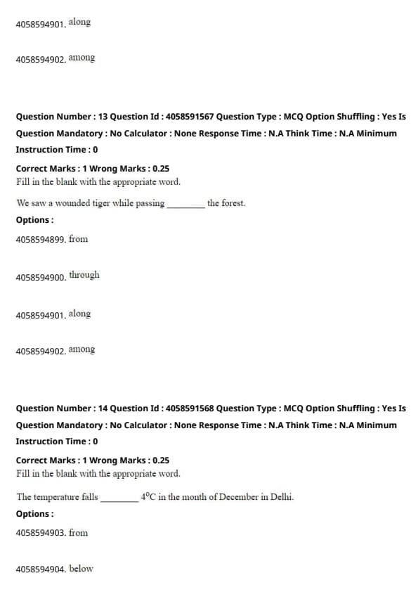 "Along" (3) suggests moving in a line or direction parallel to something, which doesn't fit the description of the action. "Among" (4) refers to being surrounded by something, but it doesn't make sense for describing movement by a forest.