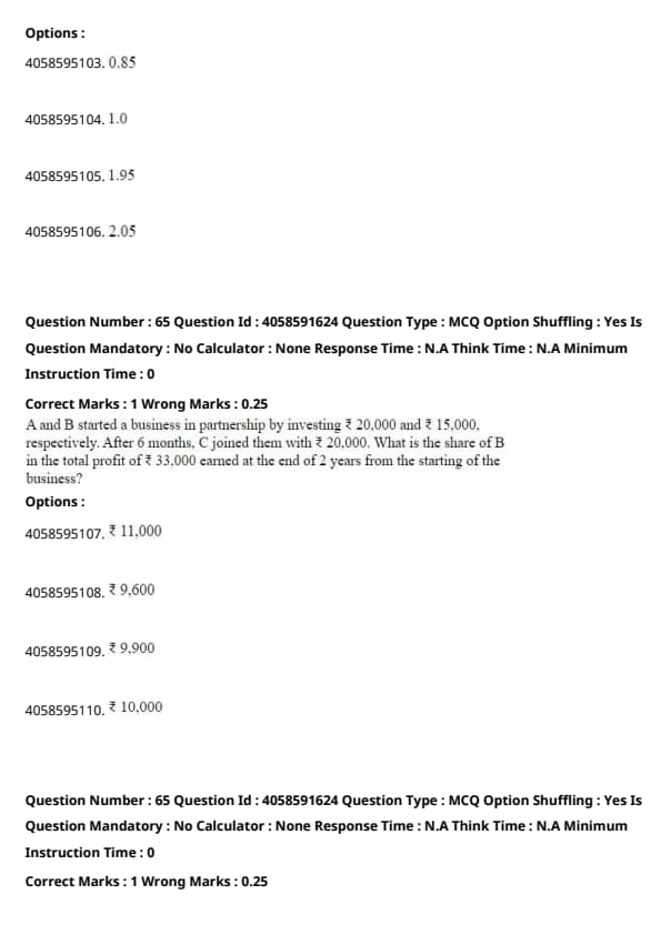 **Verify the pattern:** \( 3 \times 3 + 1 = 10 \) \( 10 \times 10 + 1 = 101 \) \( 101 \times 101 + 1 = 10202 \) **Determine the missing term:** \[ 101 \times 101 + 1 = 10202 \] **Final Answer:** \[ \boxed{10202} \] Therefore, the correct option is C) 10202. Quick Tip: Look for patterns in the sequence, such as multiplication or addition with increasing terms.