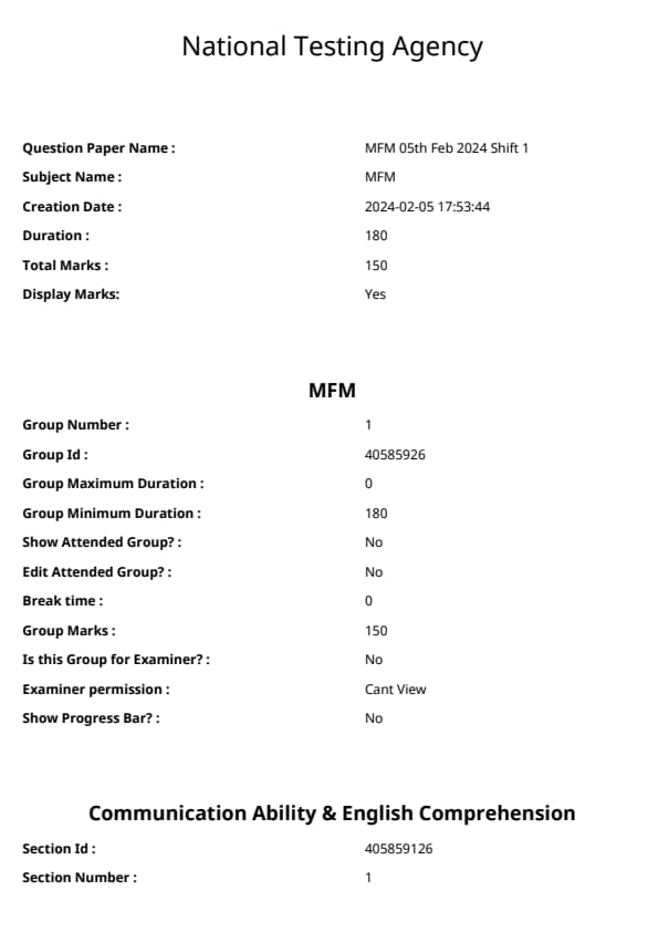 The NIFT 2024 Master of Fashion Management (MFM) Entrance Exam is a national-level test conducted by the National Institute of Fashion Technology (NIFT) for admission to its postgraduate design program. The exam assesses candidates on their creativity, analytical thinking, problem-solving ability, and knowledge of design trends.The NIFT 2024 Master of Fashion Management (MFM) Entrance Exam has a total of 150 marks and a duration of 3 hours. NIFT Master of Fashion Management (MFM) Question Paper With Solution PDF is available here.