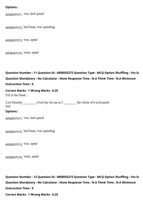 - "was, had spend" is incorrect because "had spend" is not grammatically valid; it should be "had spent" if past perfect were needed, which it is not in this context.