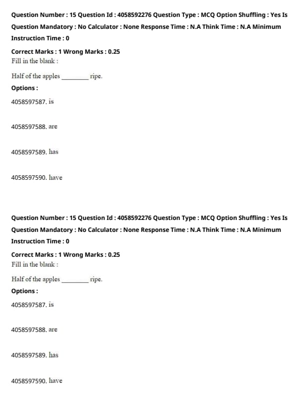 The correct choice is "are," which is used here because "half of the apples" refers to a plural subject, indicating a portion of a group of apples. The verb must agree with the plural noun "apples."