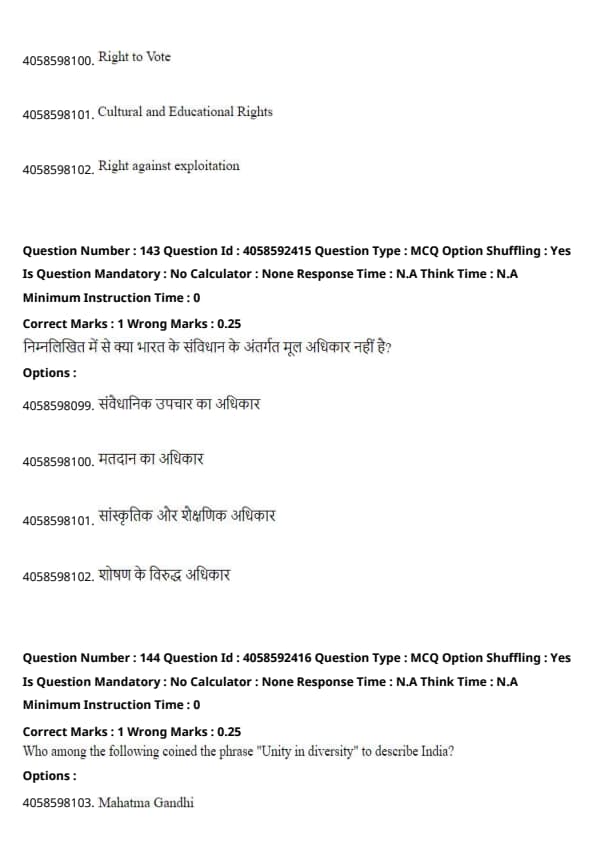 % Adds space above the quicktip box Quick Tip: Fundamental Rights are enshrined in Part III of the Indian Constitution, whereas the Right to Vote is granted under the Representation of the People Act, 1951.