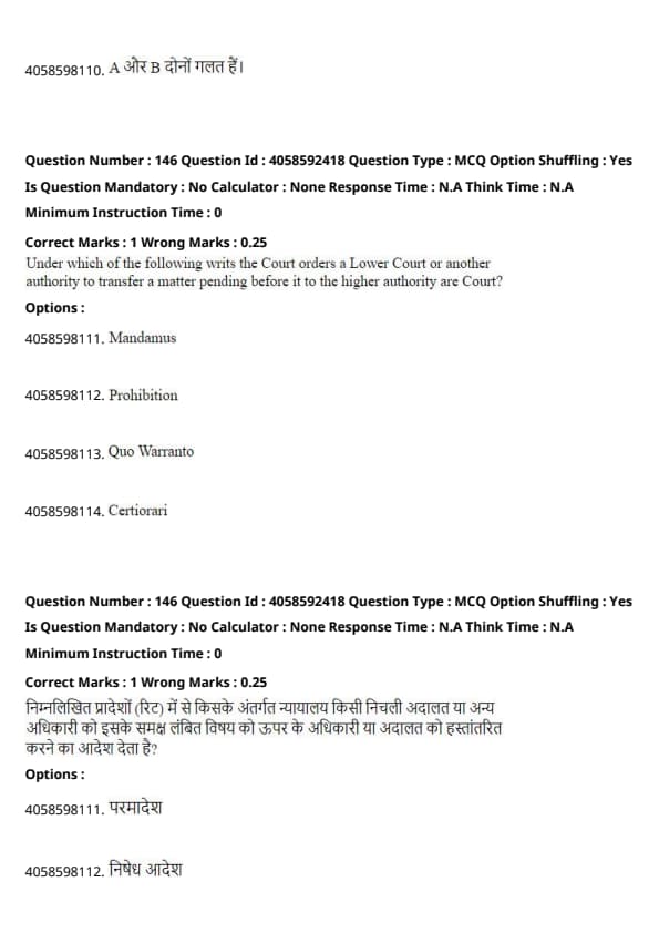 % Adds space above the quicktip box Quick Tip: The five types of writs in India are Habeas Corpus, Mandamus, Prohibition, Certiorari, and Quo Warranto. Certiorari is the only writ used to transfer cases from a lower court to a higher court.