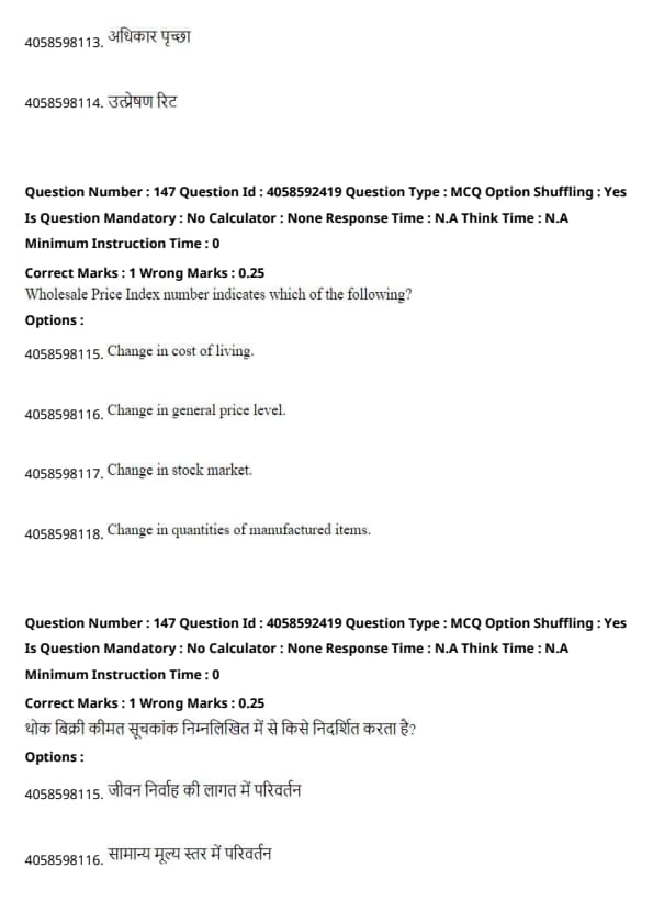 - Change in stock market (Option C) is related to market indices like Sensex or Nifty, which track stock prices, not wholesale prices.