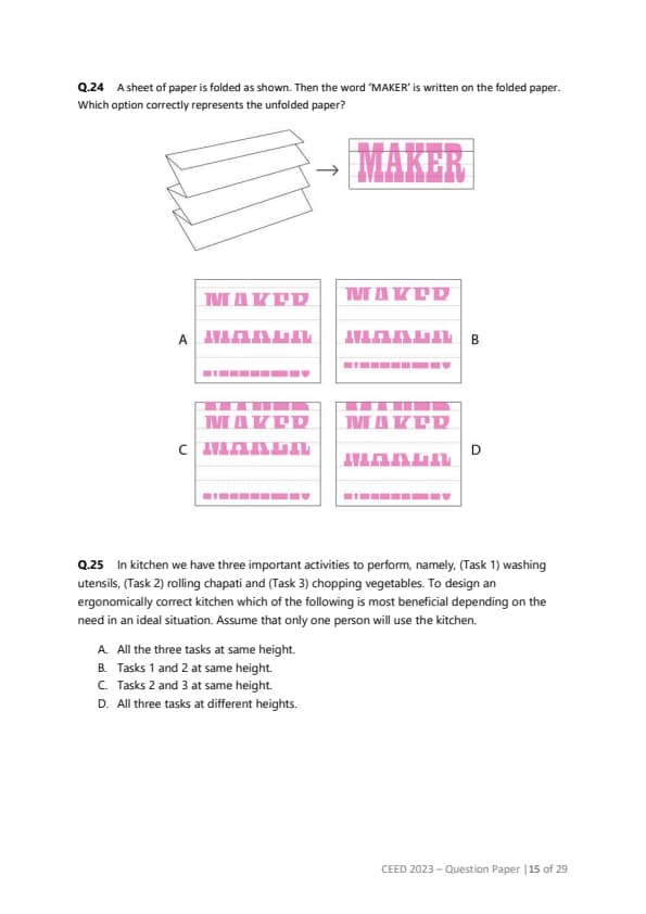 CEED 2023 Question paper with answer key pdf conducted on January 22, 2023 is available for download. The exam was successfully organized by IIT Bombay. In terms of difficulty level, CEED 2023 was of Moderate level. The question paper comprised a total of 46 questions divided among 4 sections.