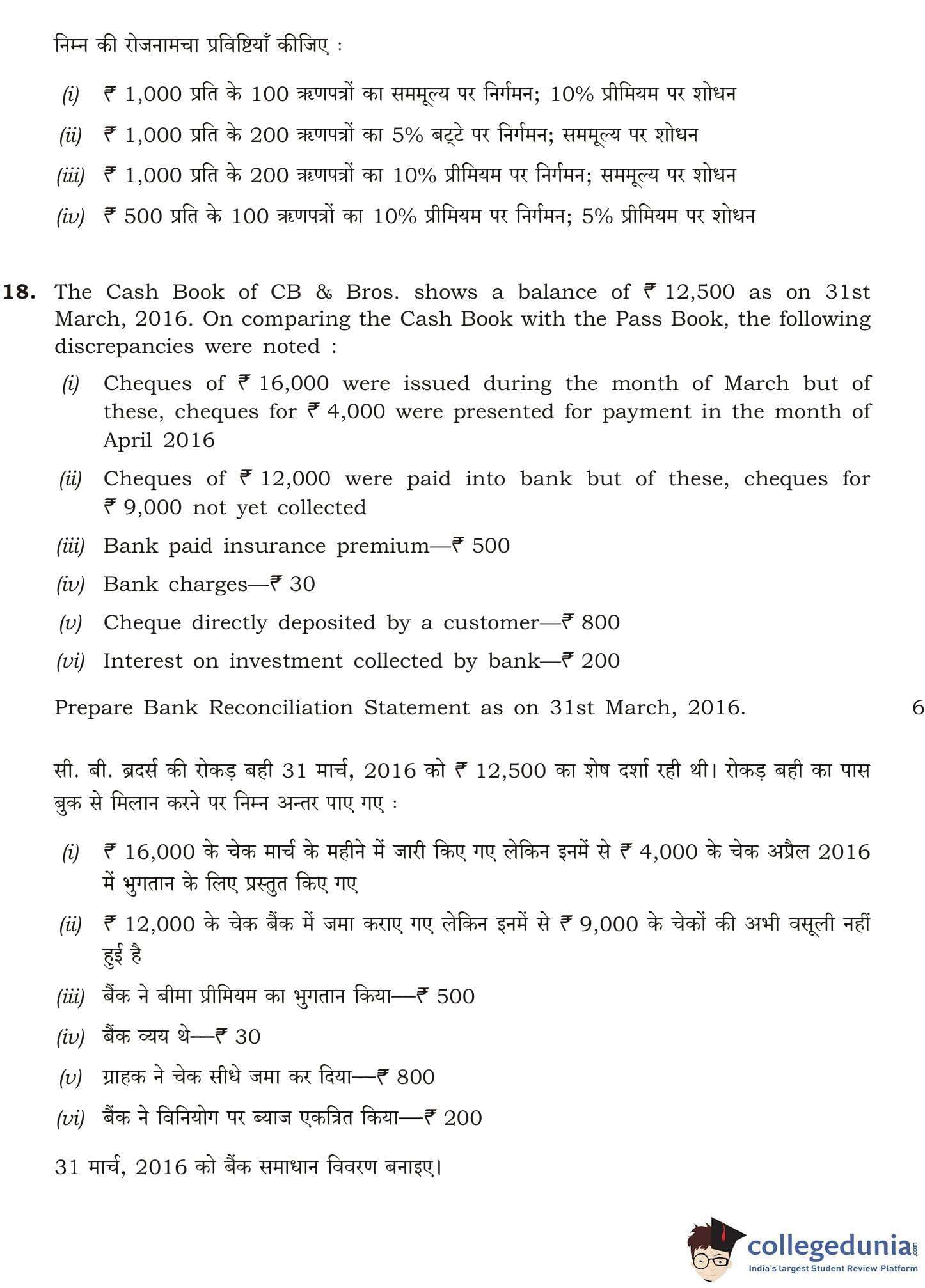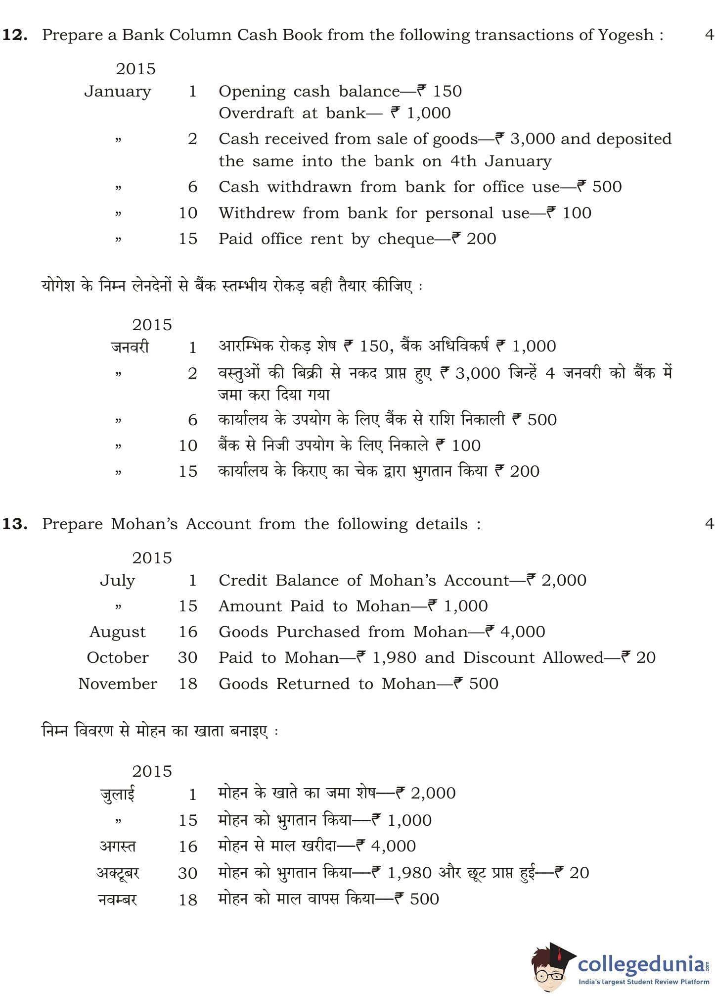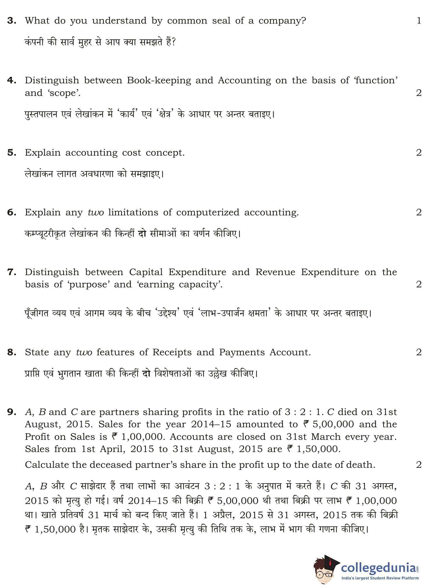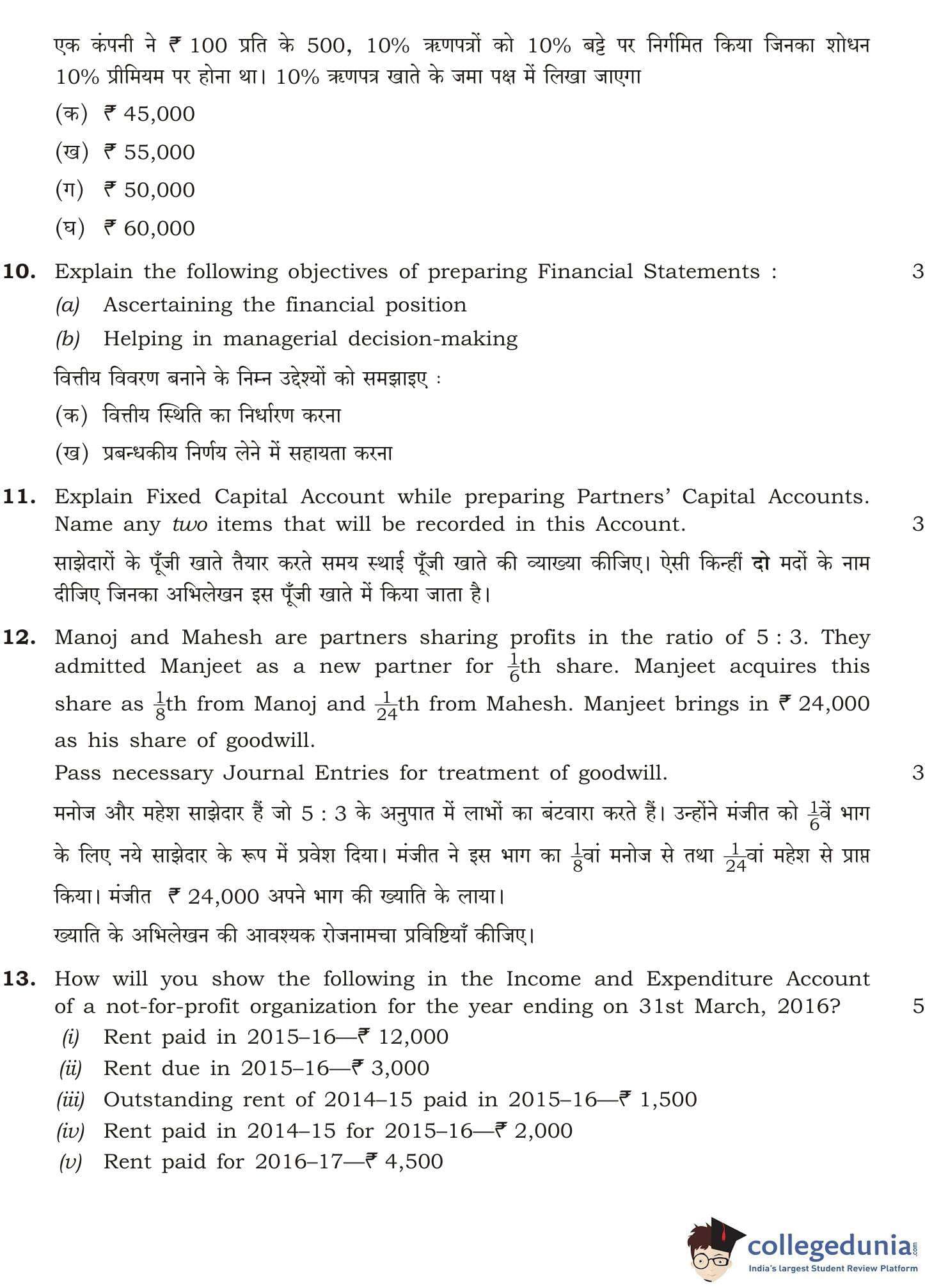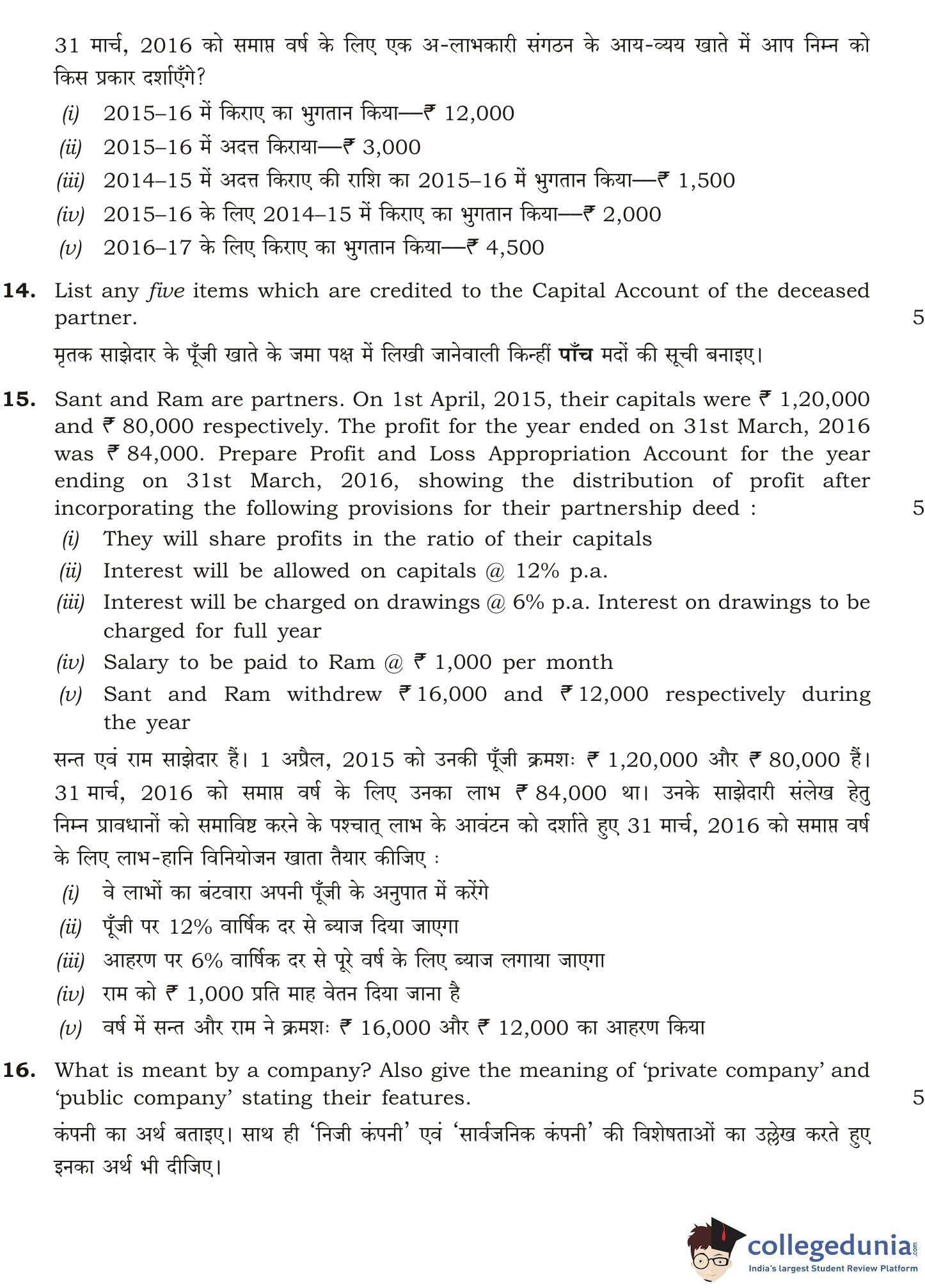 NIOS Class 12 Accountancy Compartment Question Paper 2016 with Answer Key