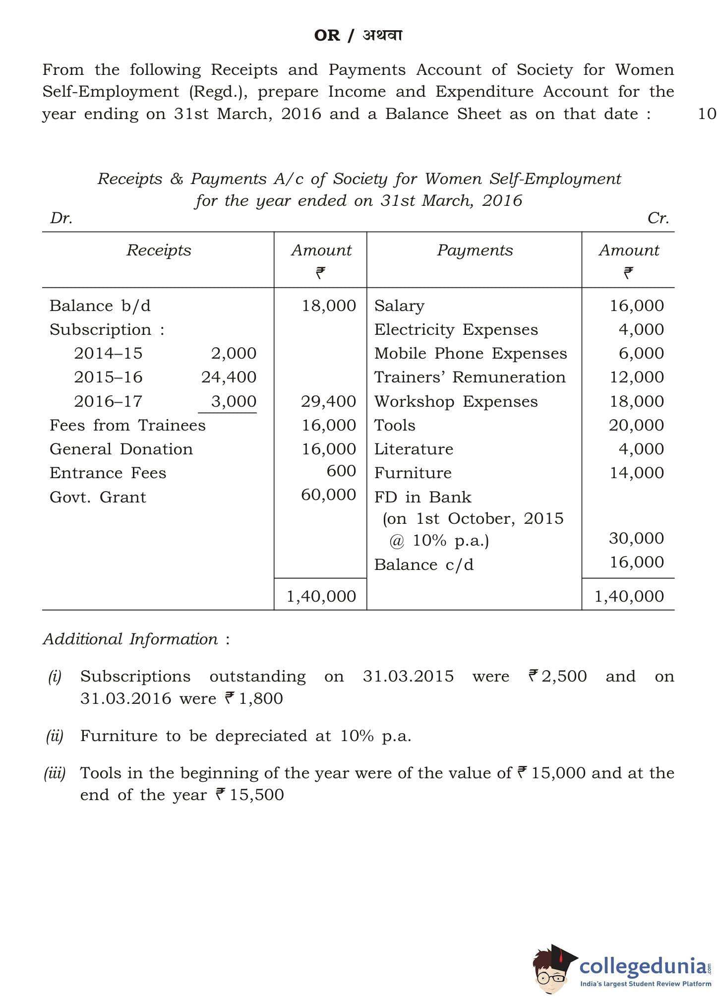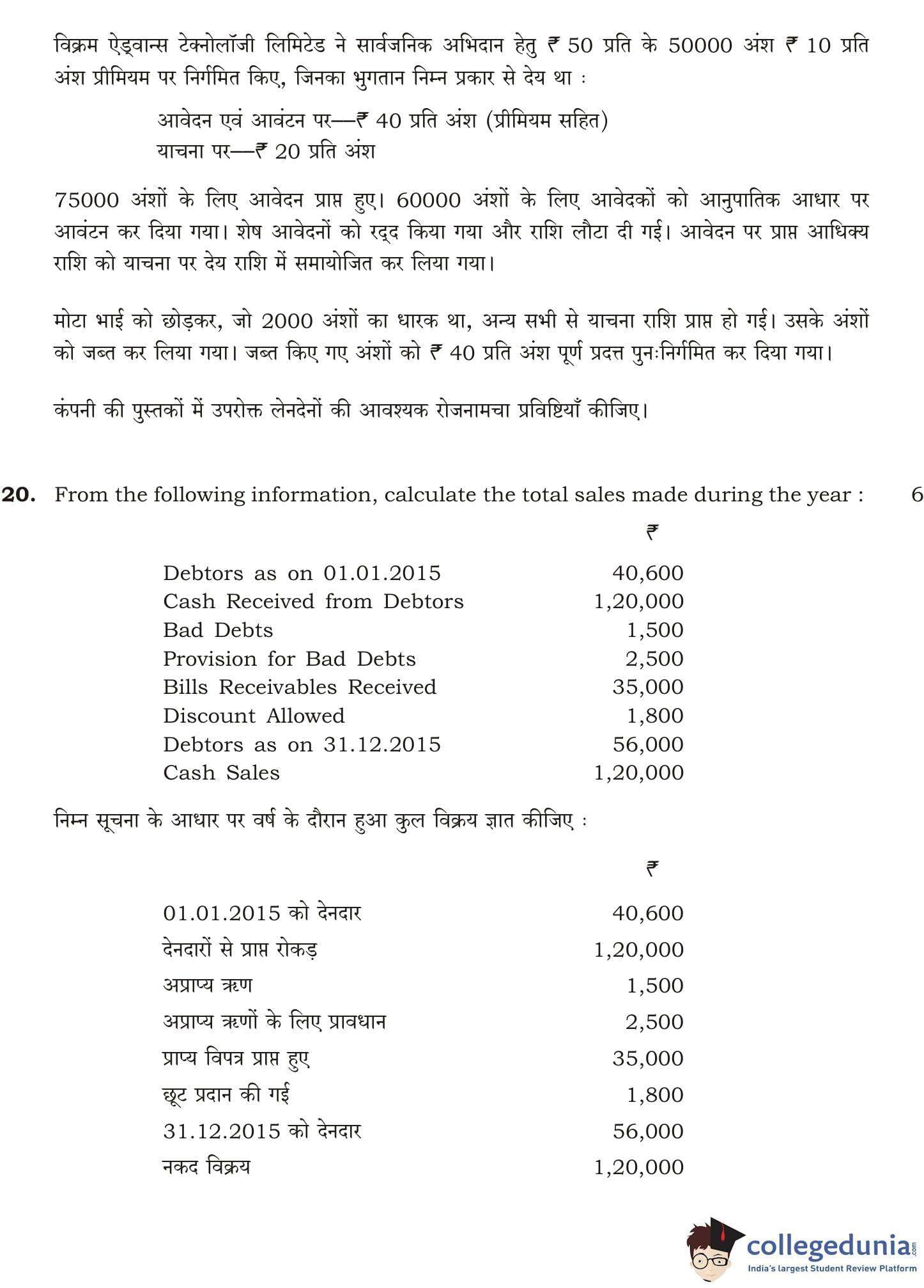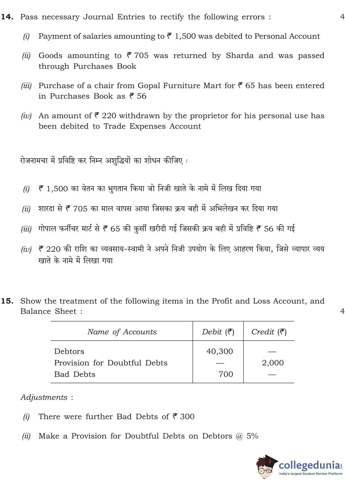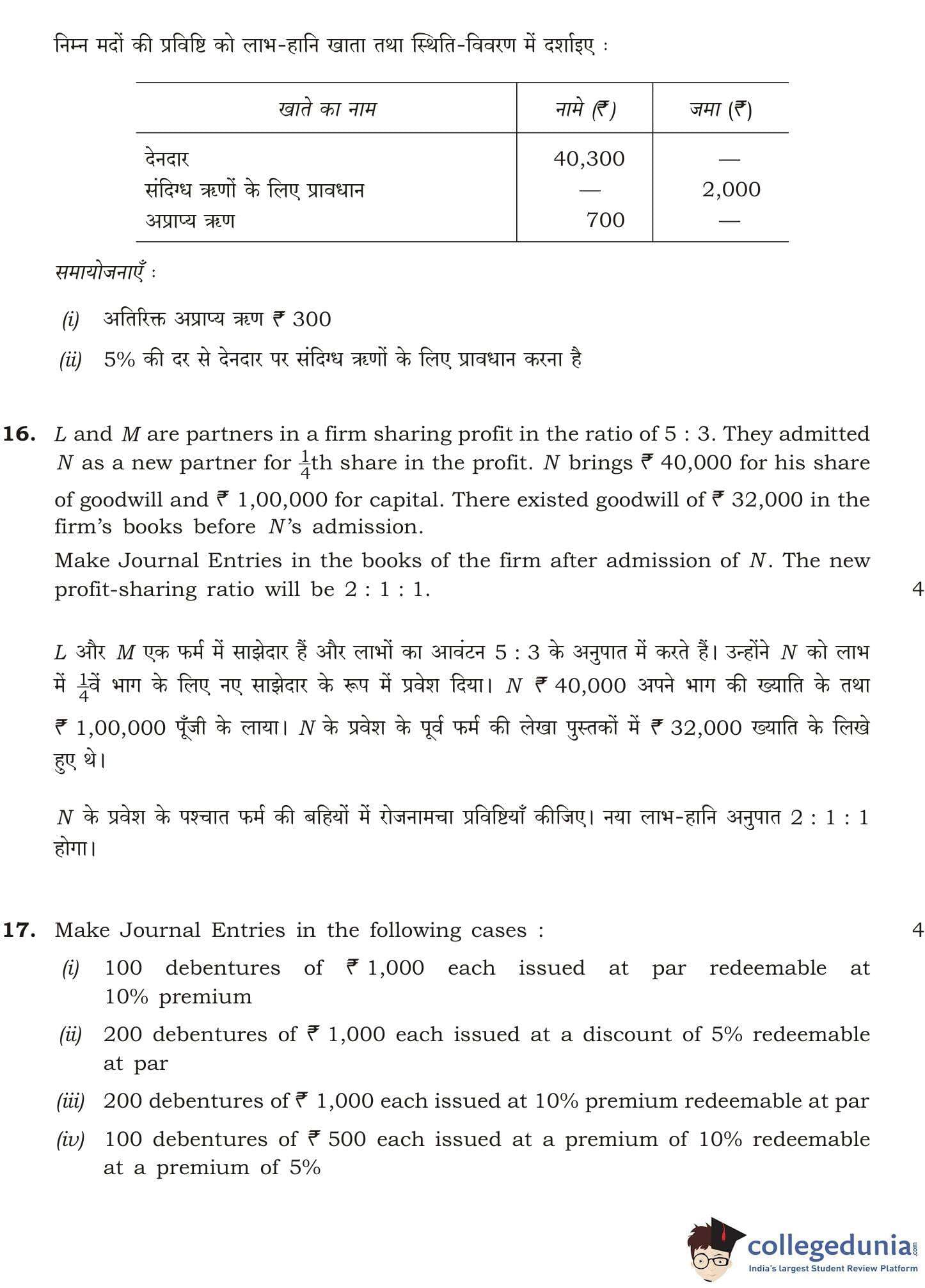 NIOS Class 12 Accountancy Compartment Question Paper 2016 with Answer Key