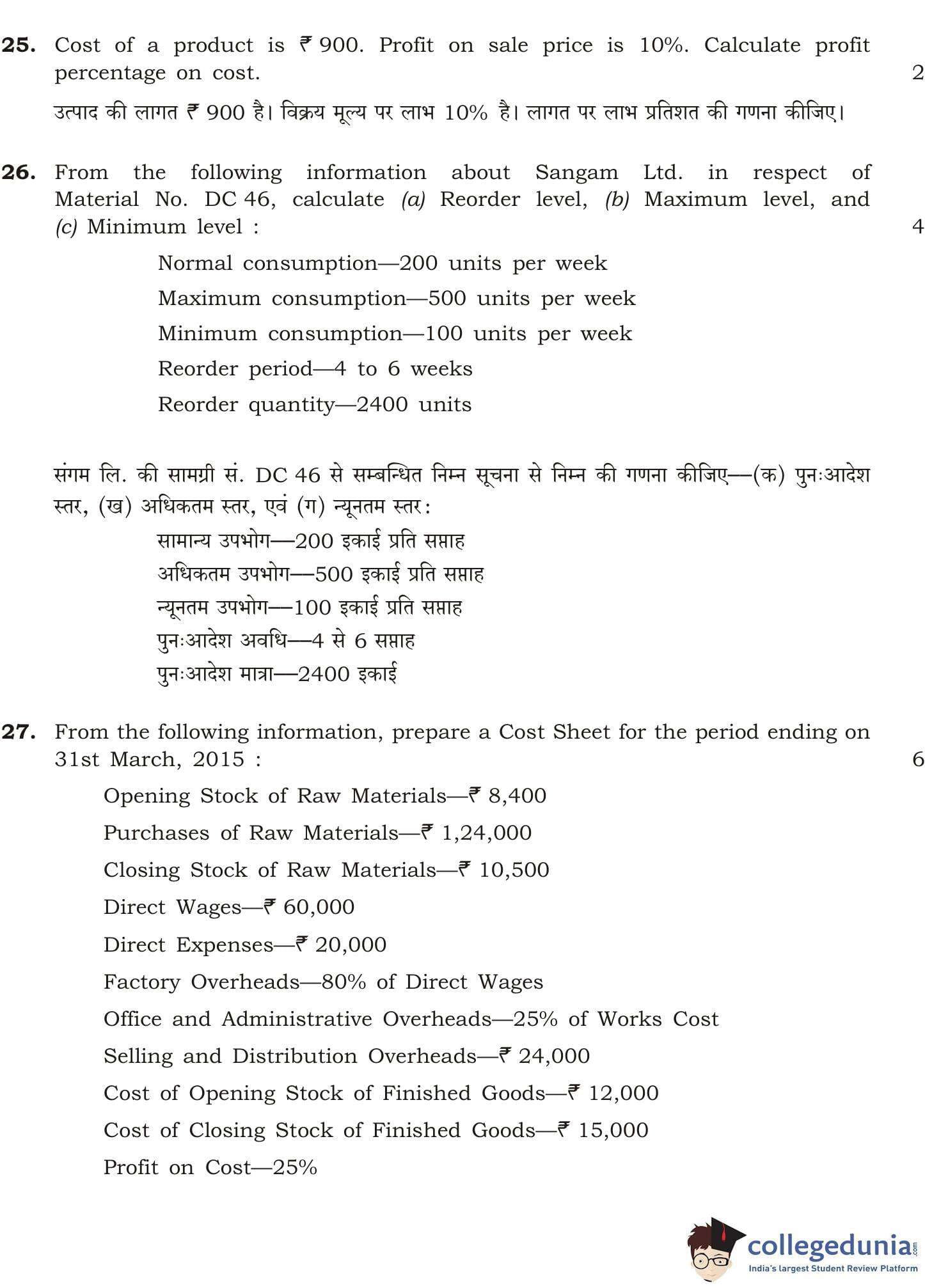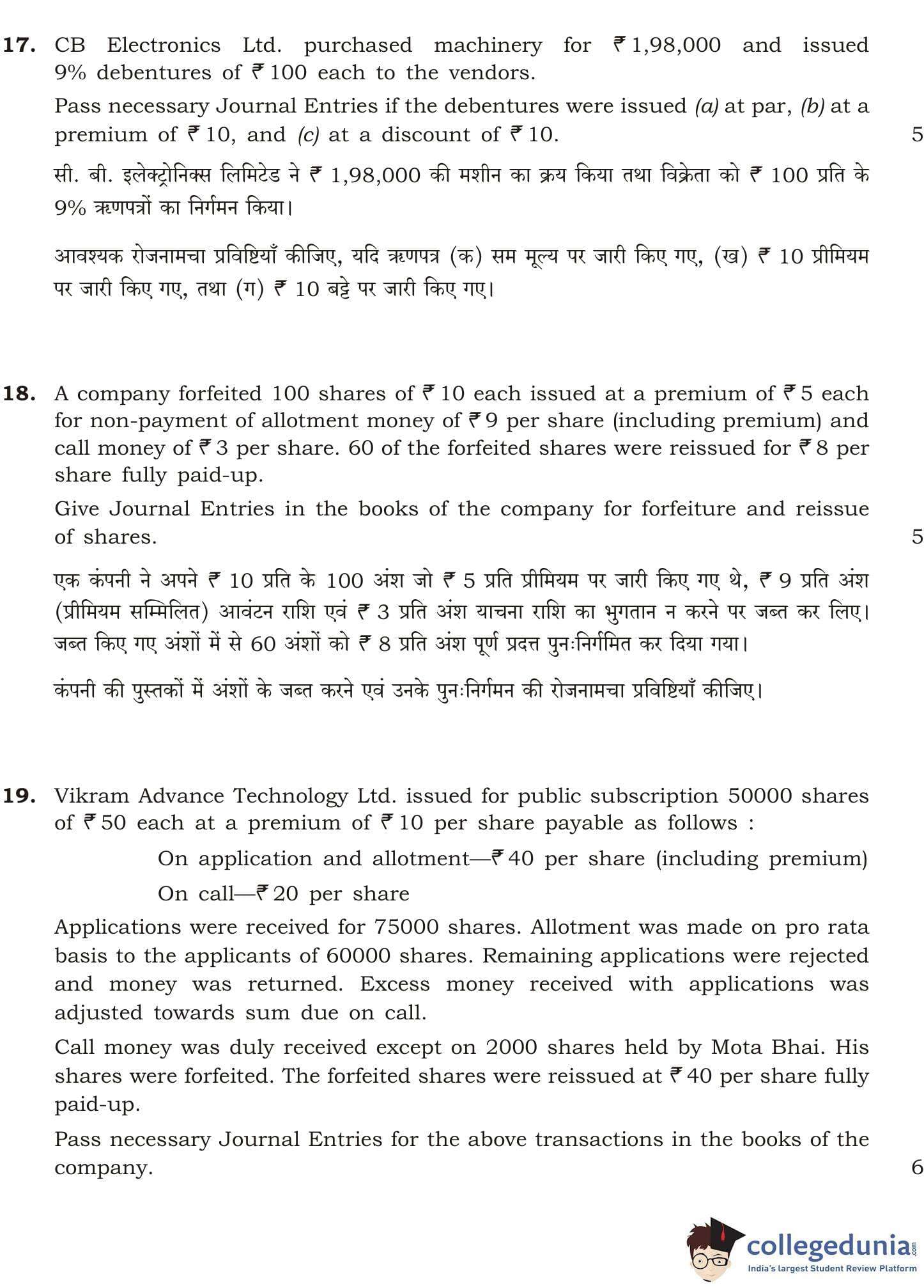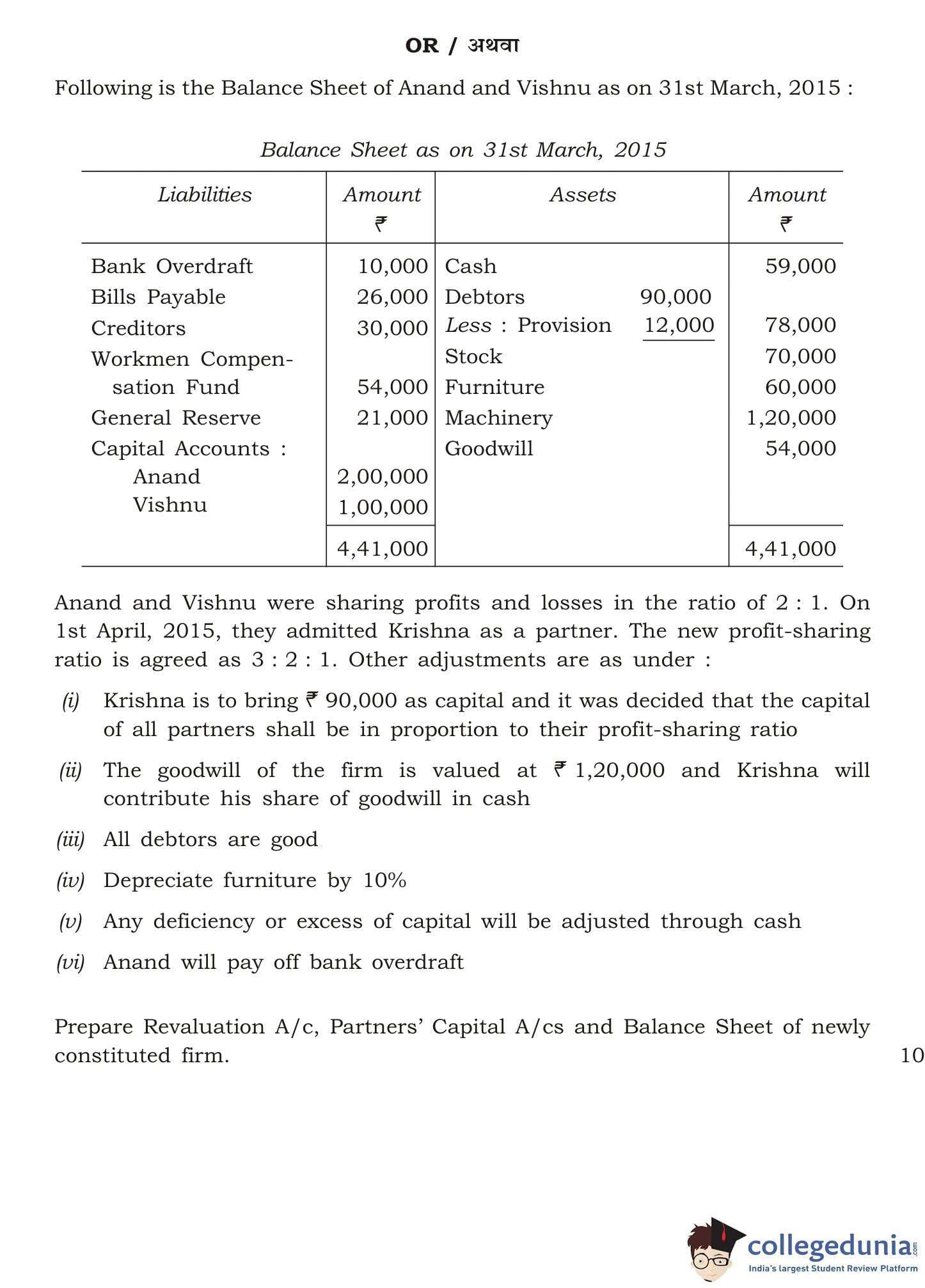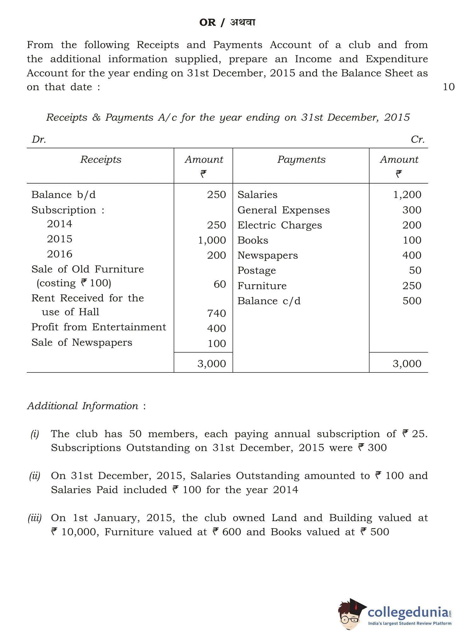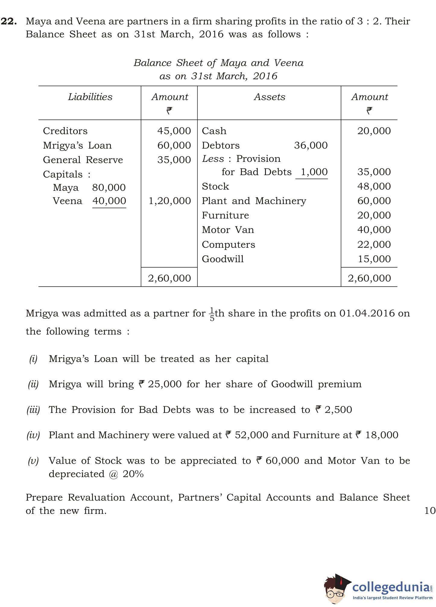 NIOS Class 12 Accountancy Compartment Question Paper 2016 with Answer Key