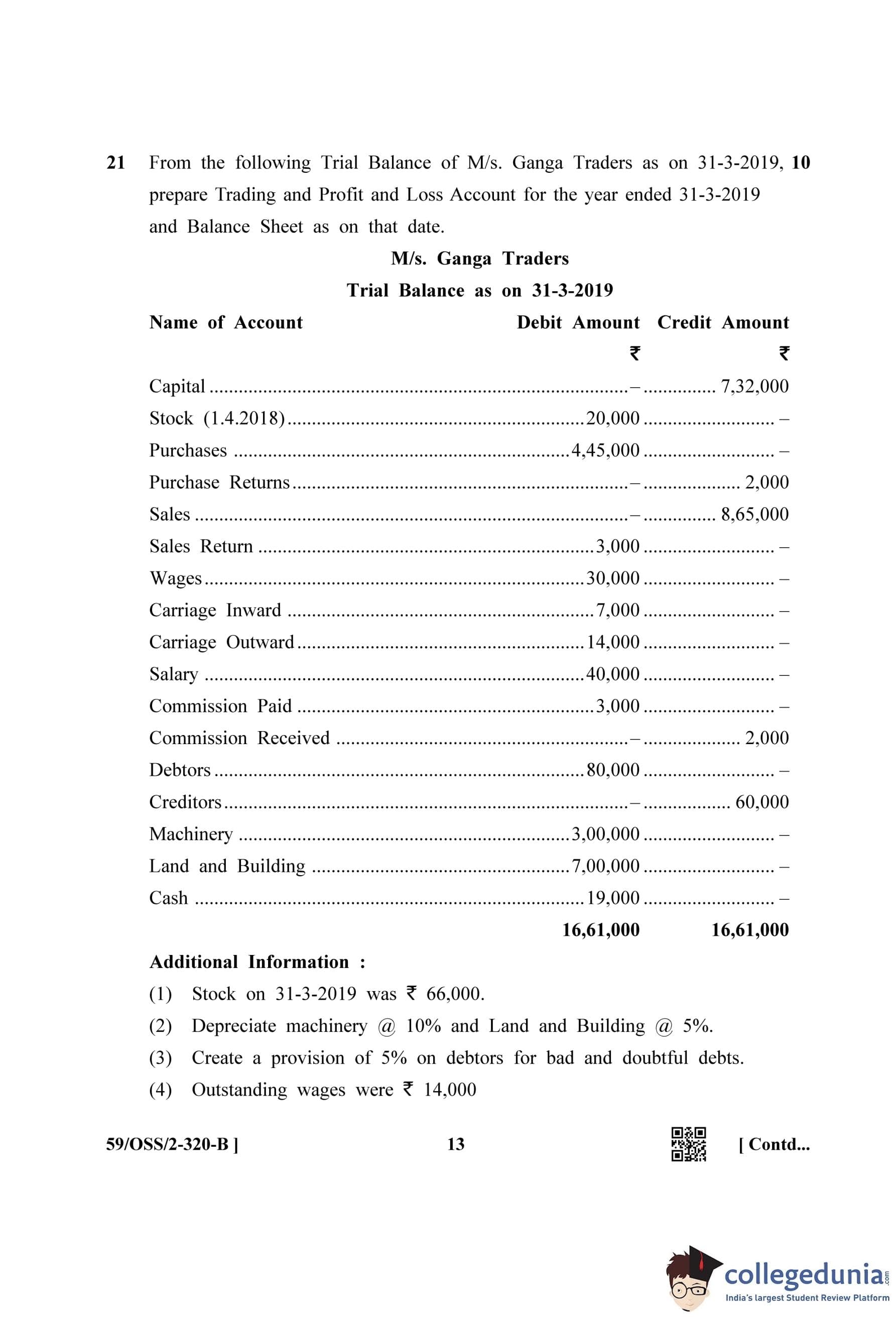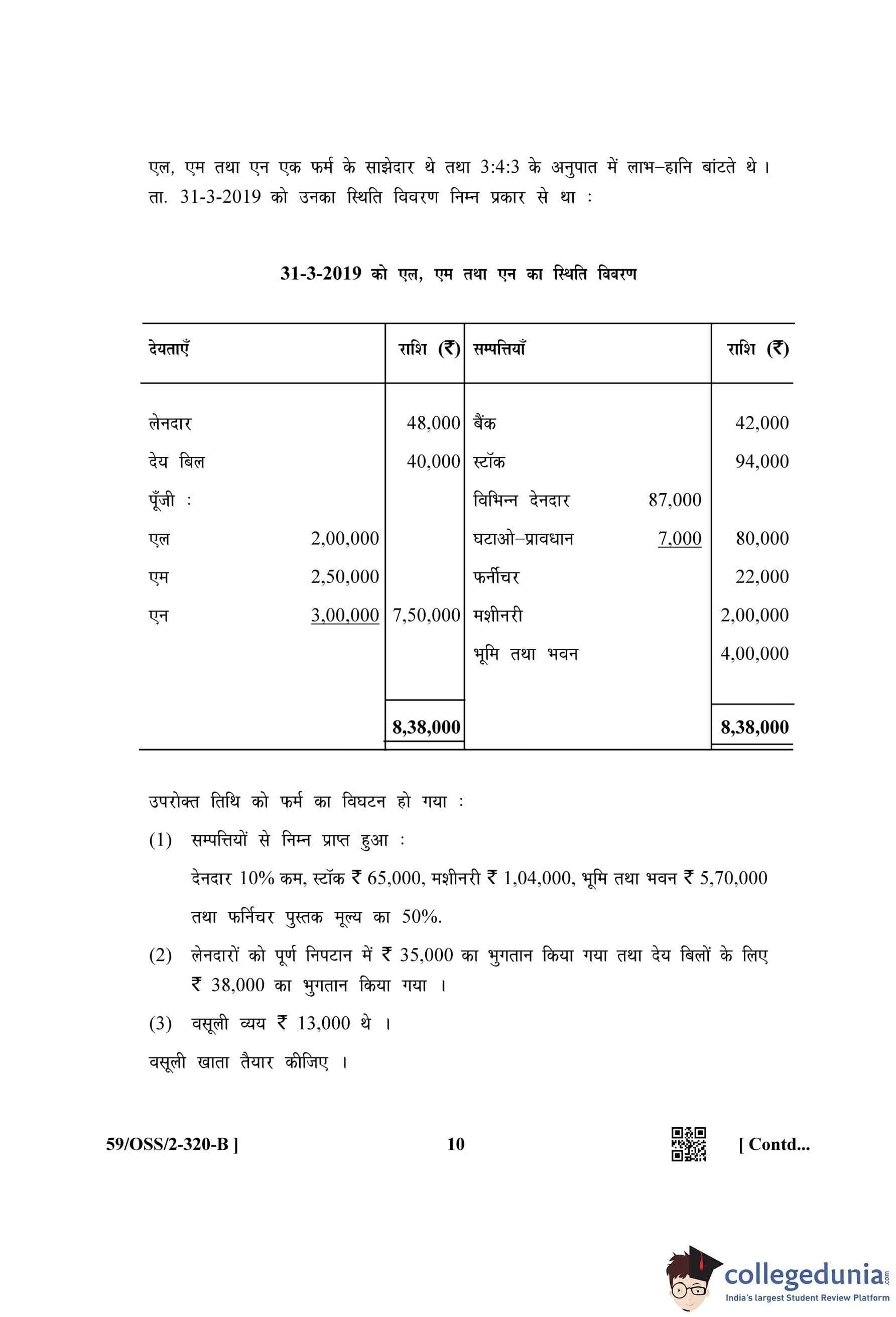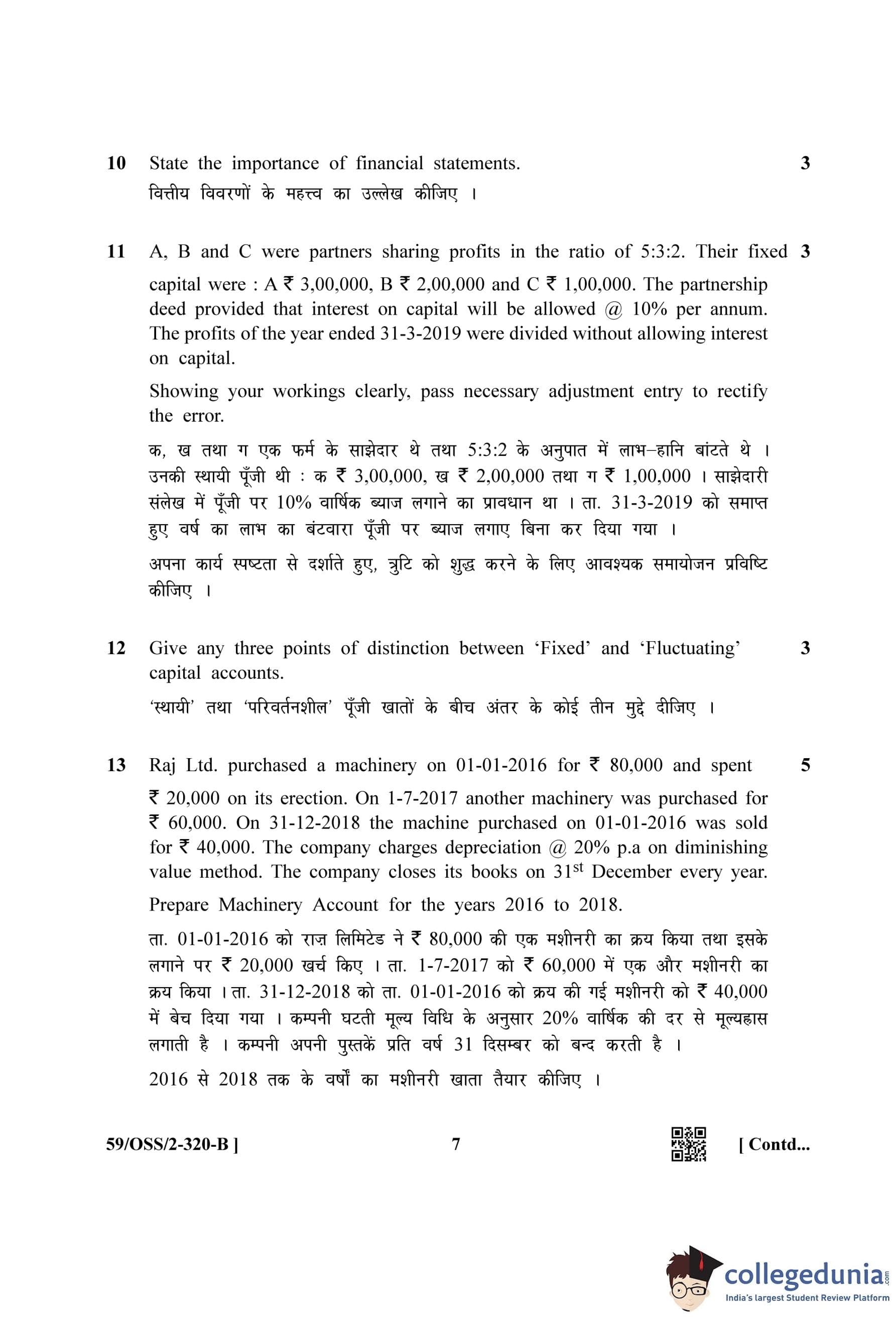 NIOS Class 12 Accountancy (Set B) Compartment Question Paper 2019 with Answer Key