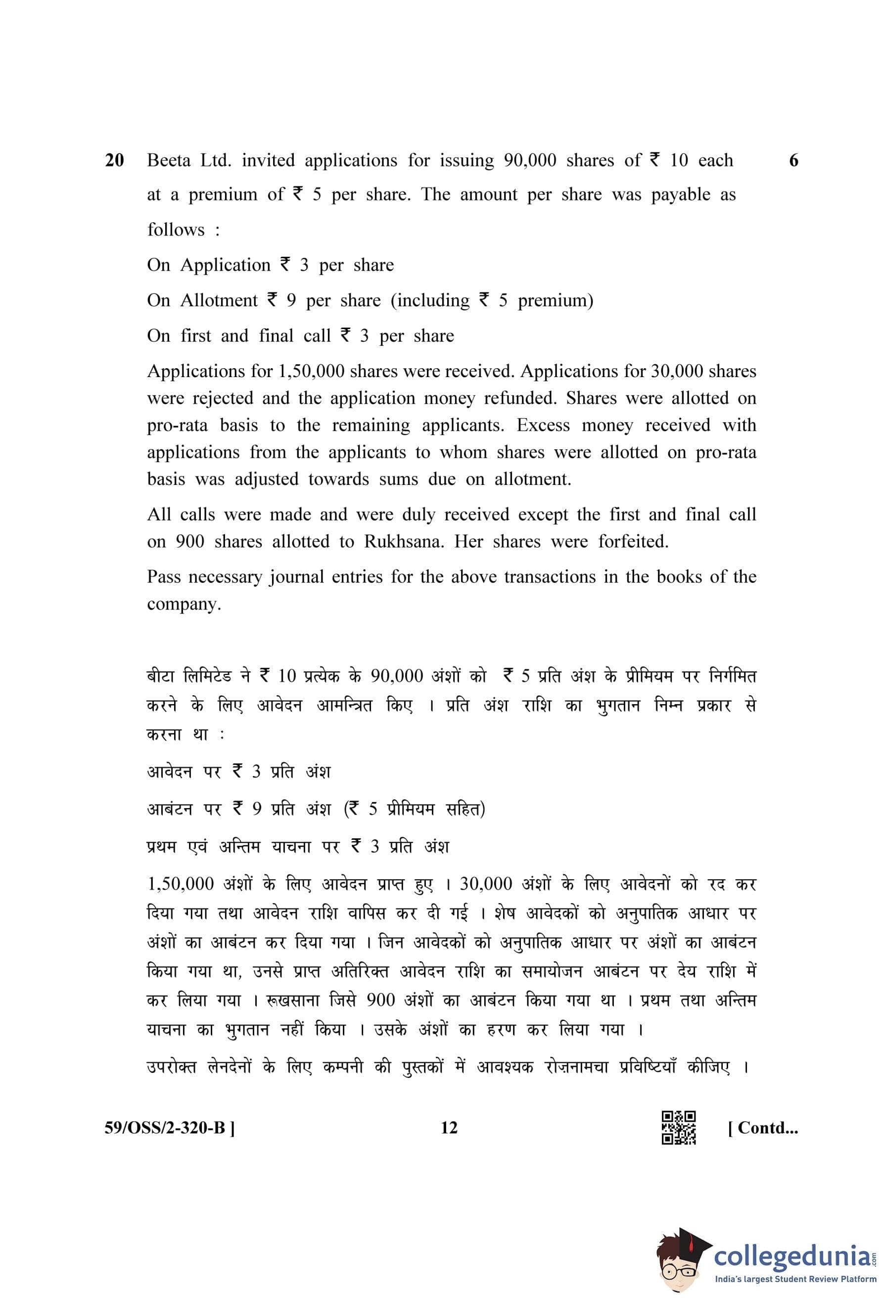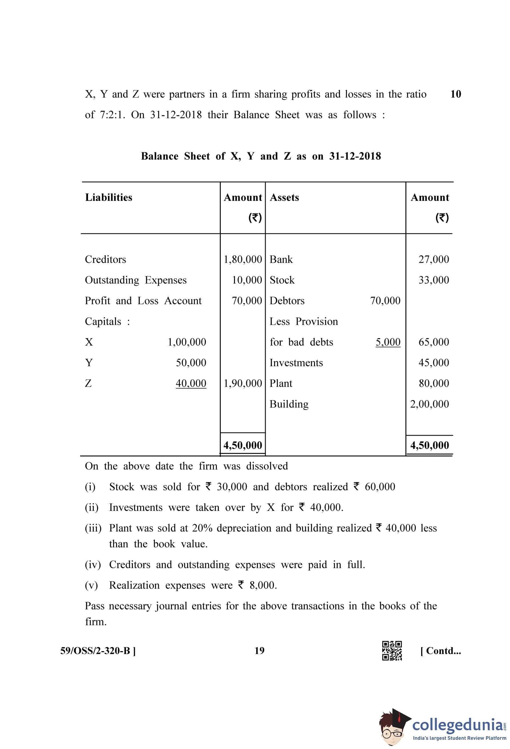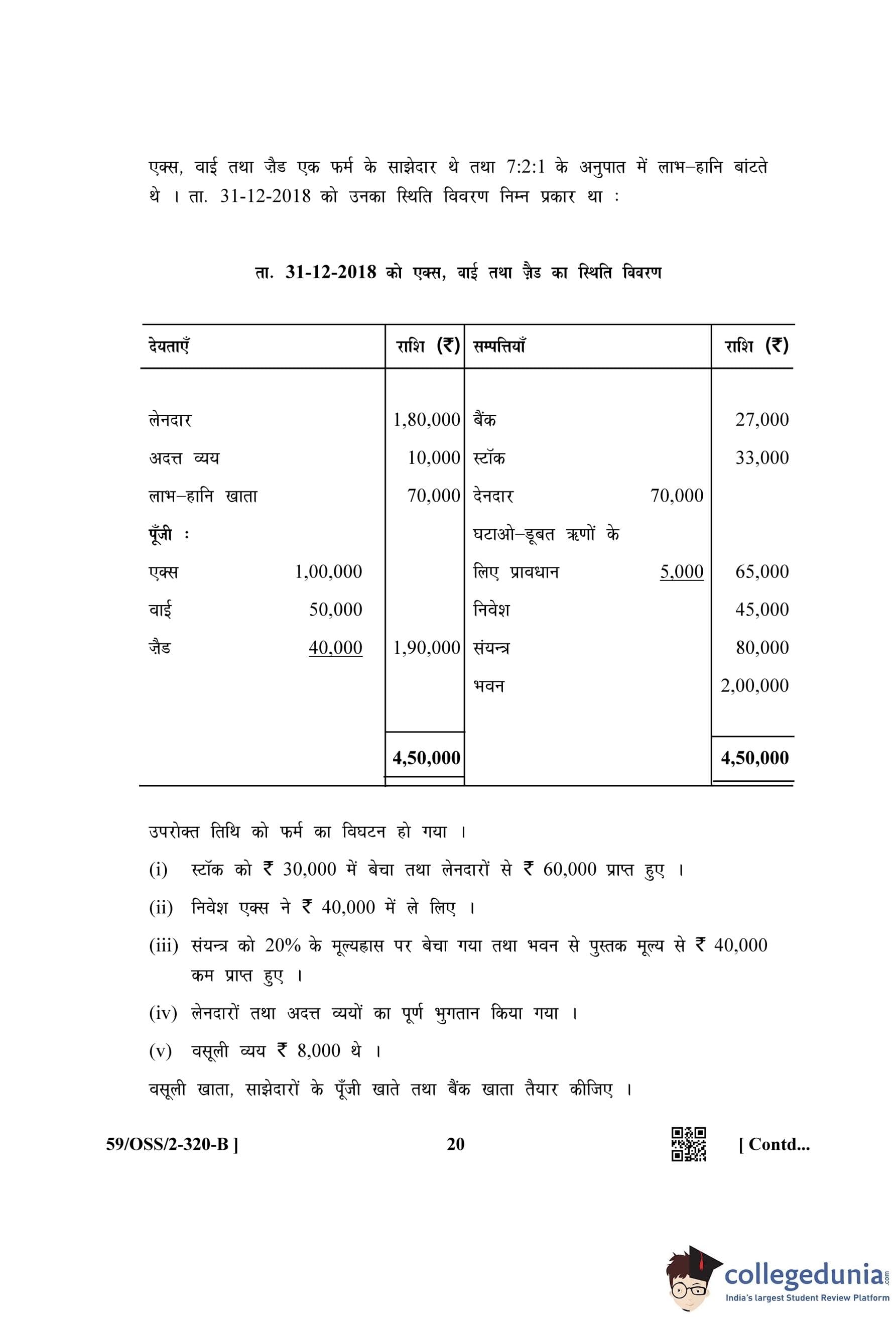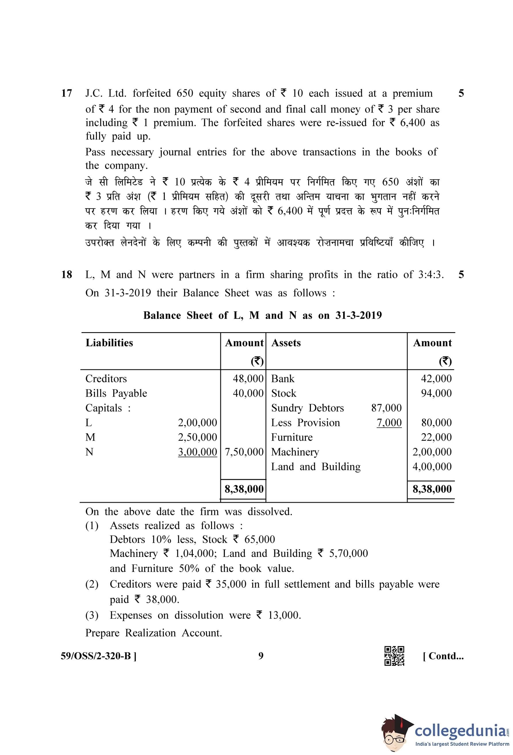 NIOS Class 12 Accountancy (Set B) Compartment Question Paper 2019 with Answer Key