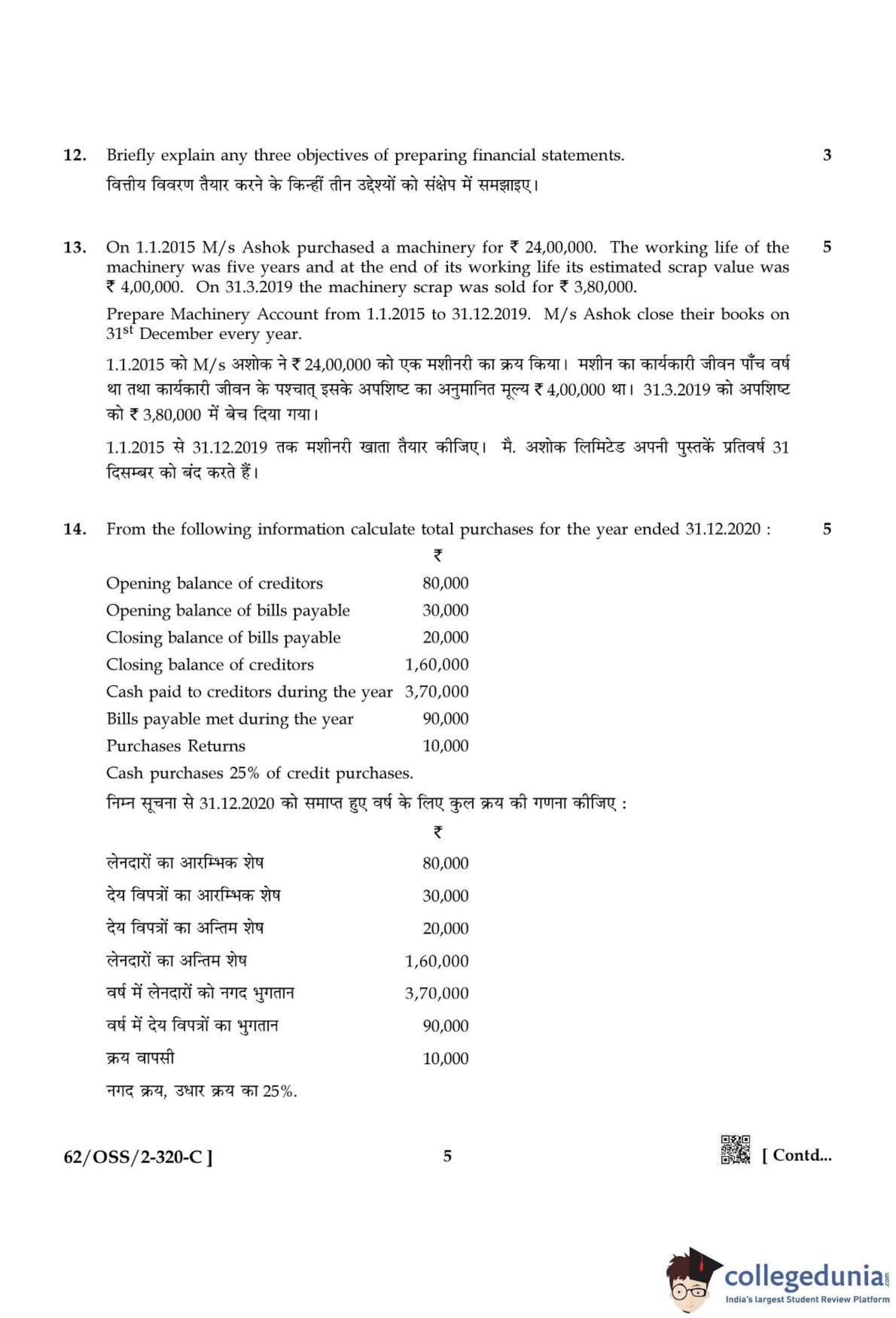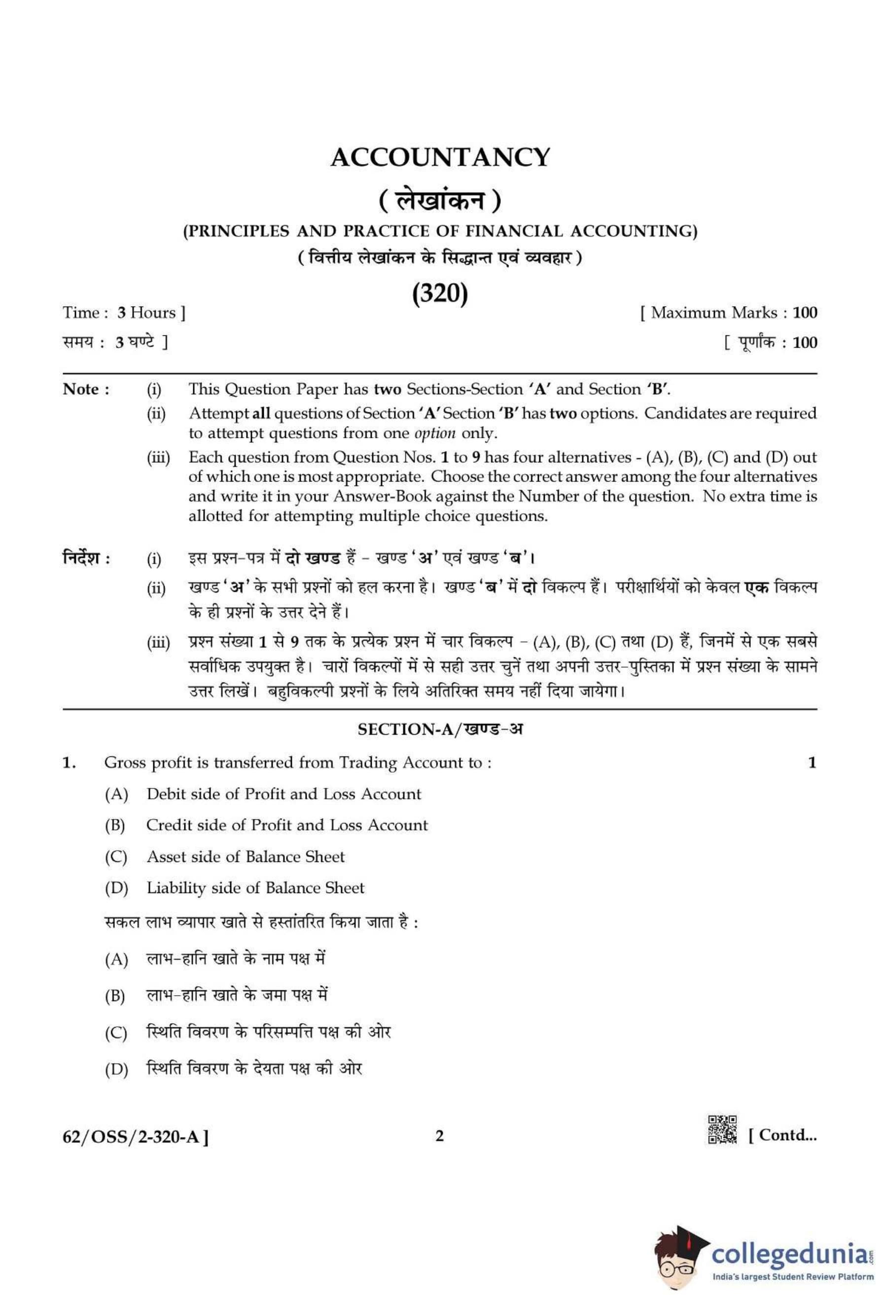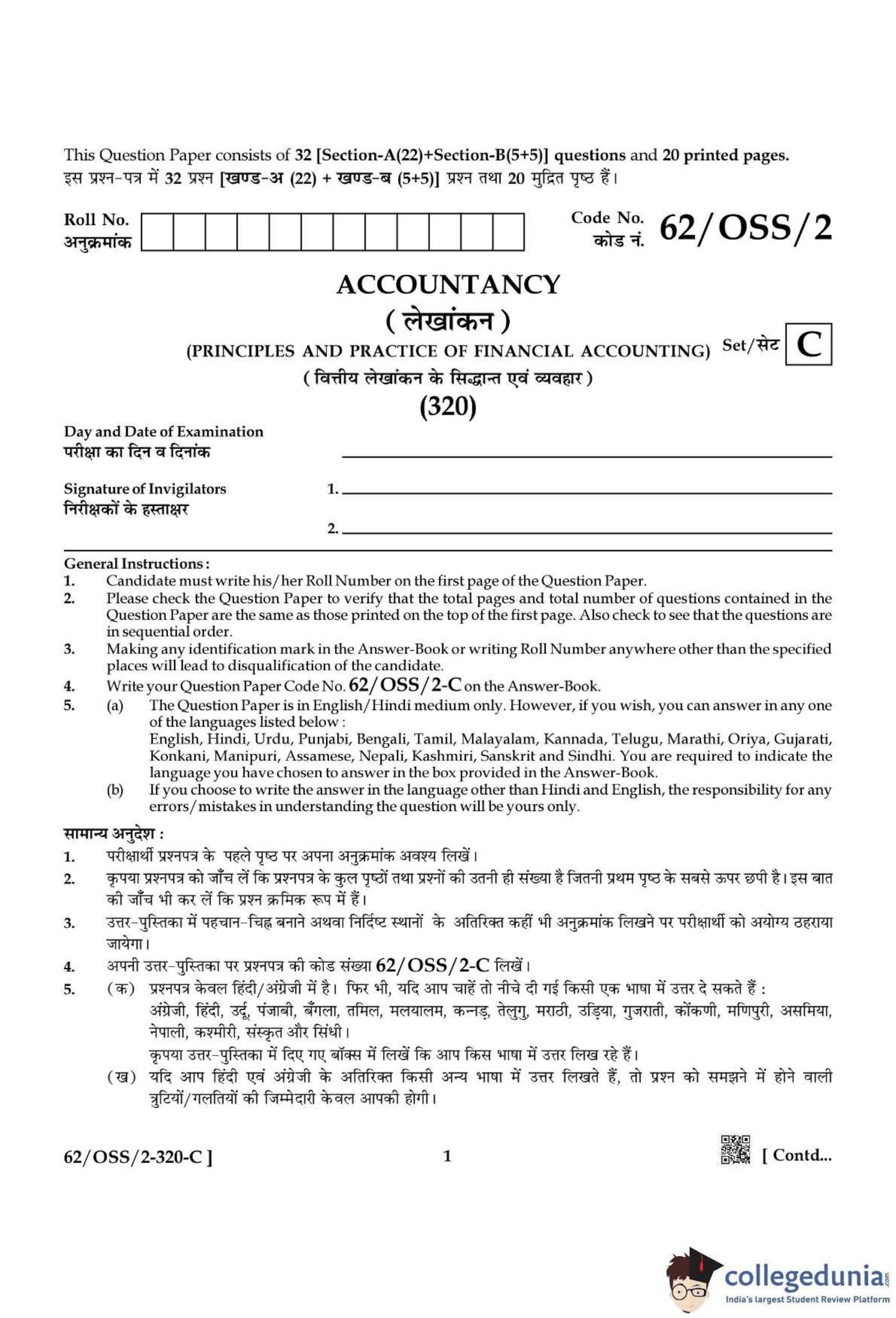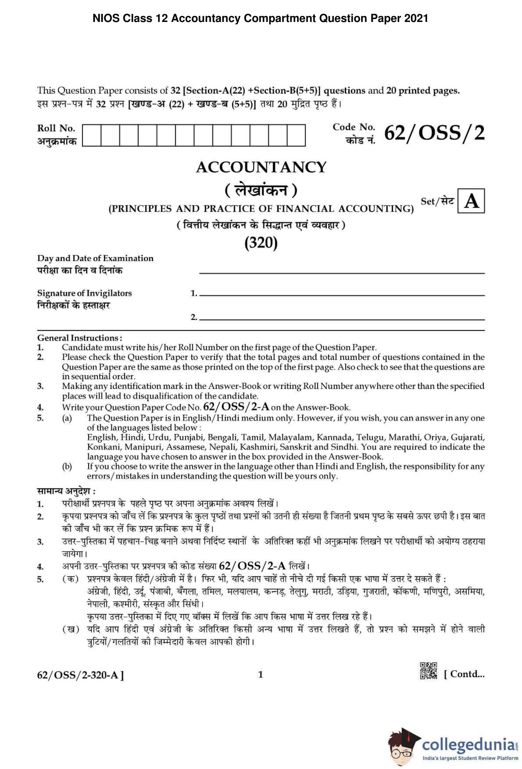 NIOS Class 12 Accountancy Compartment Question Paper 2021 with Answer Key pdf is available for download here. The exam was conducted by National Institute of Open Schooling on December 14, 2021 in the Afternoon Session 2:30 PM to 5:30 PM. The question paper comprised a total of 27 questions divided among 2 sections.