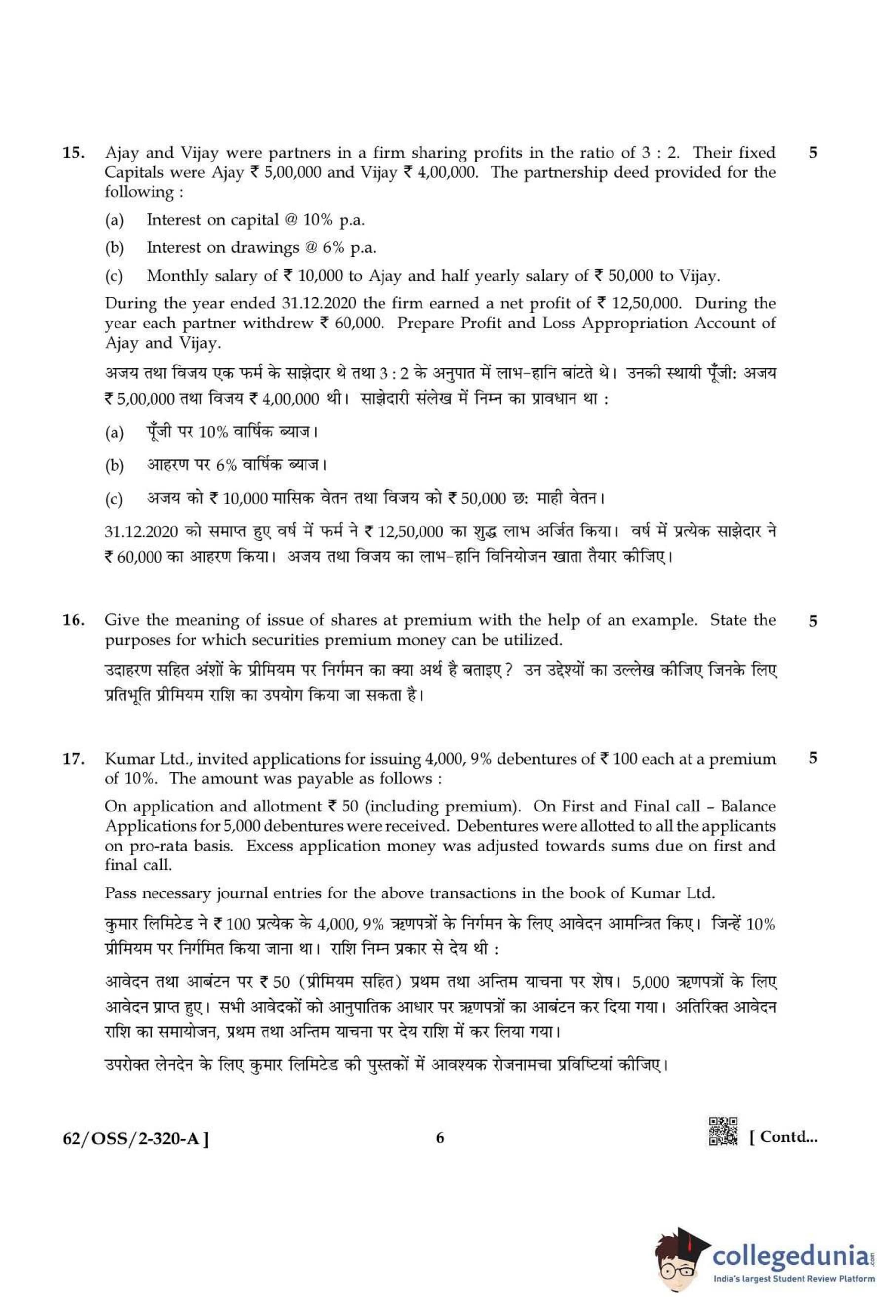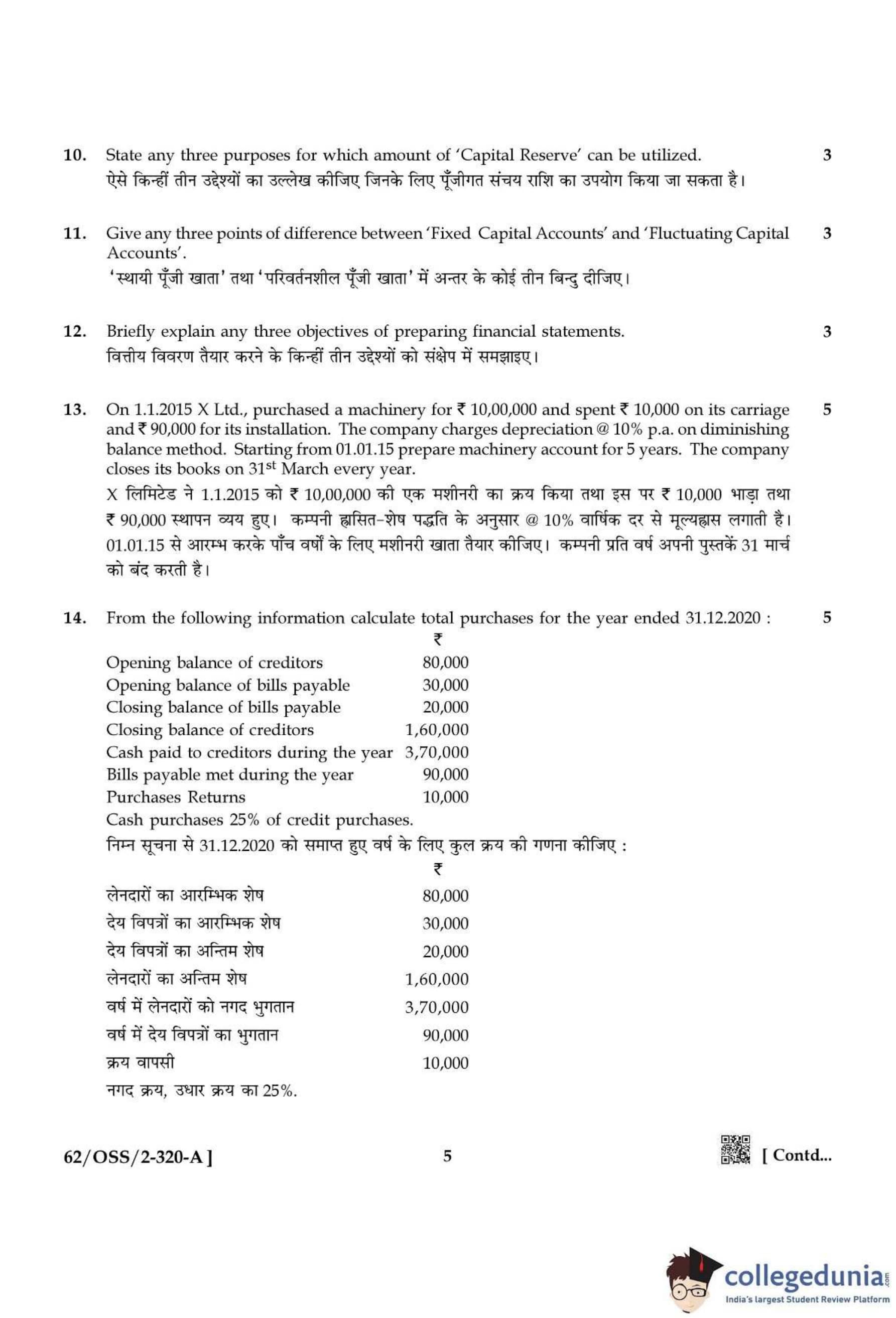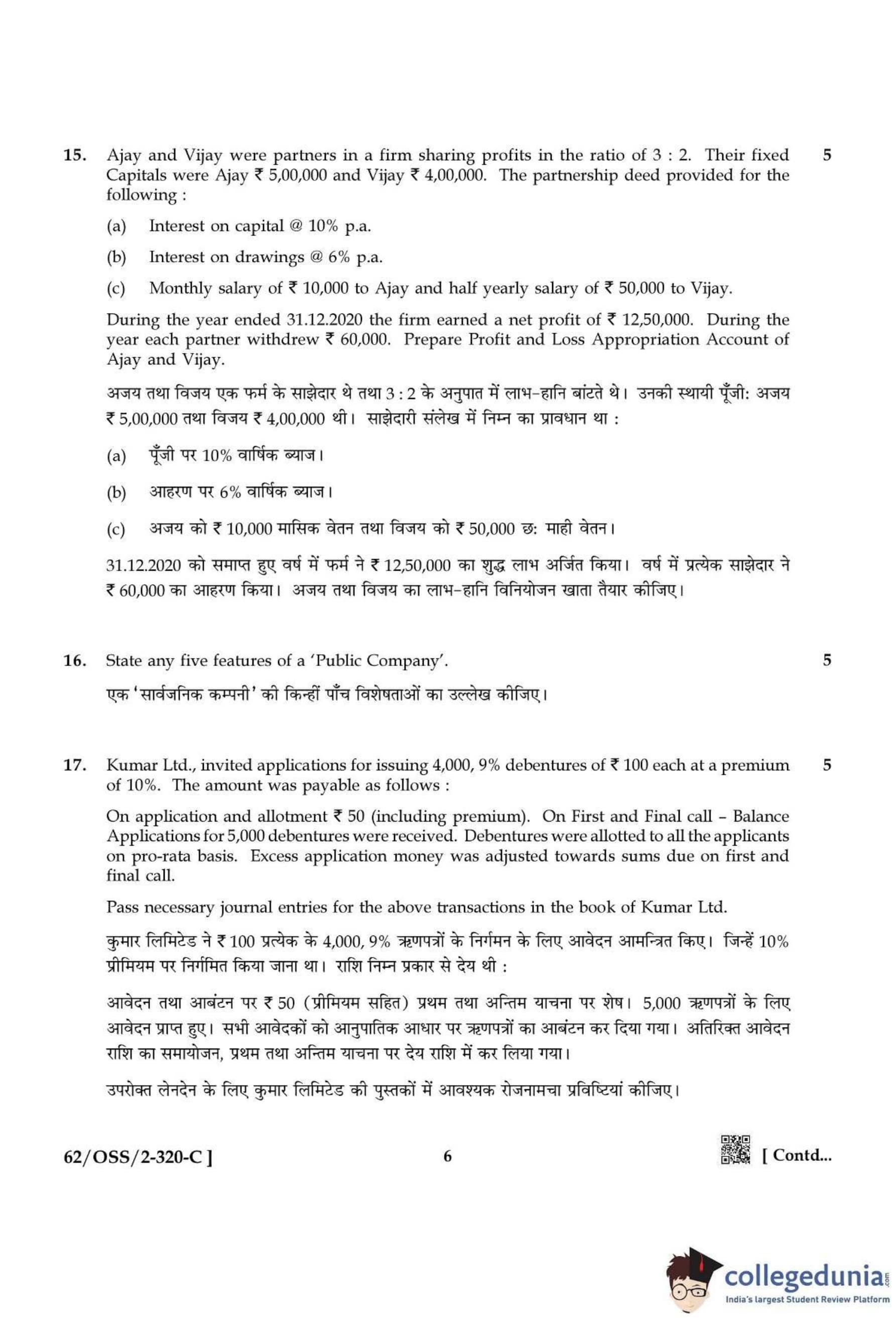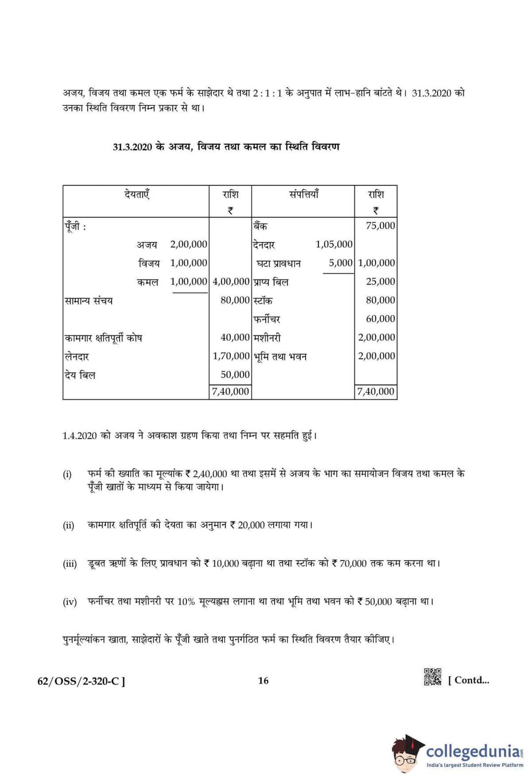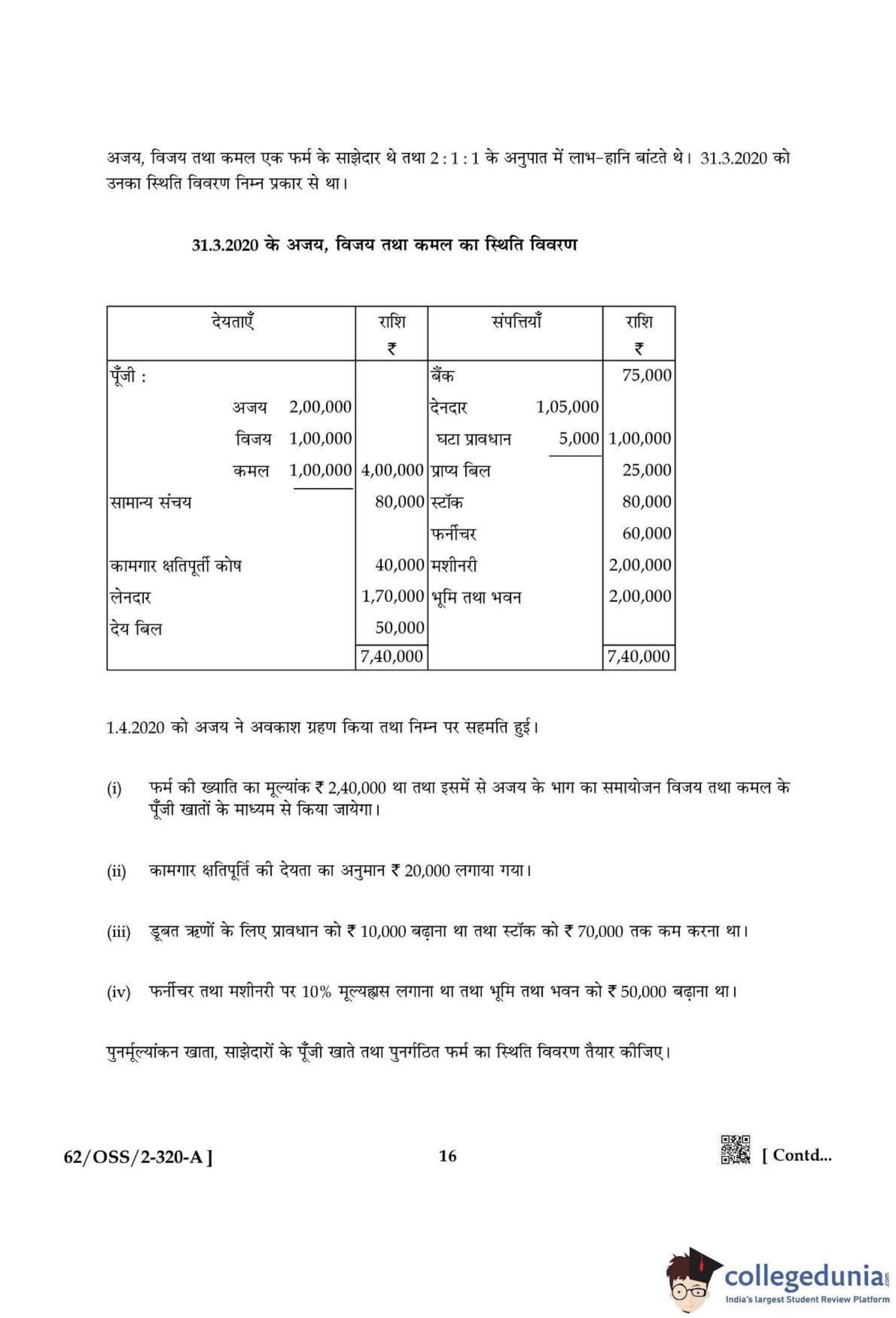 NIOS Class 12 Accountancy Compartment Question Paper 2021 with Answer Key