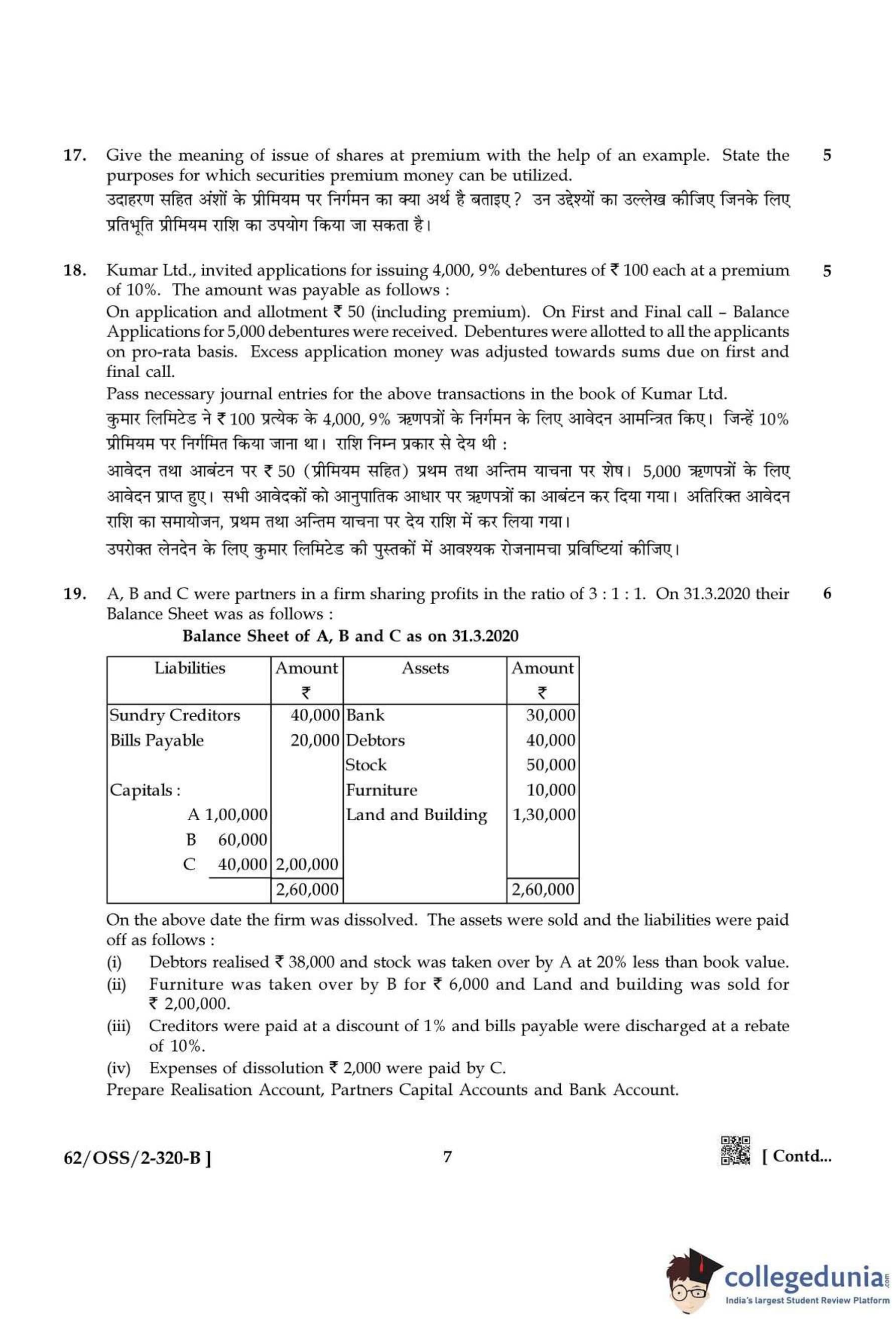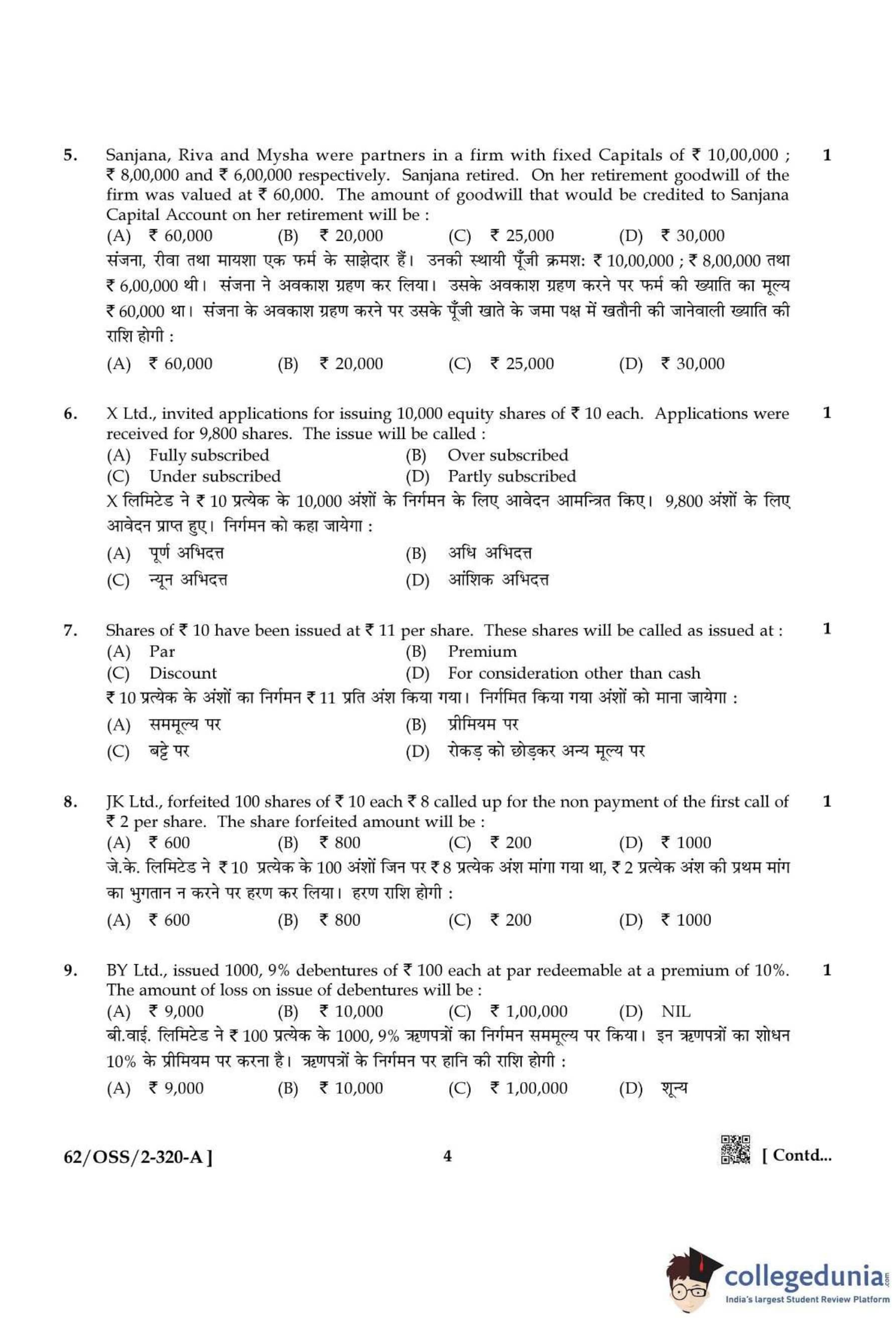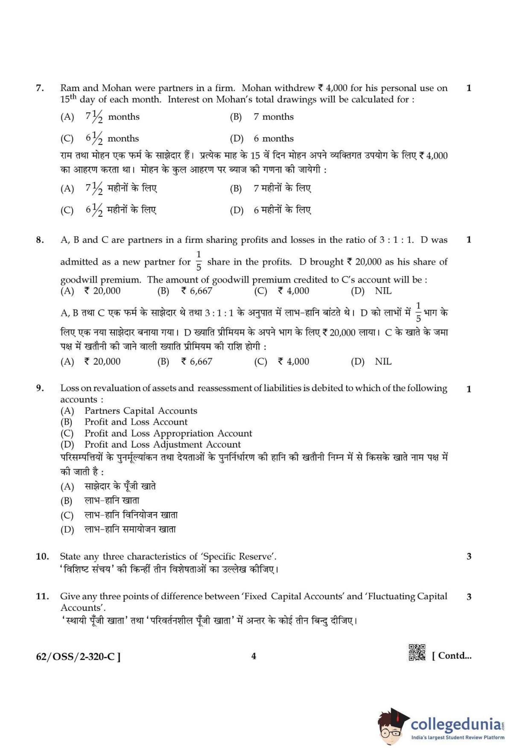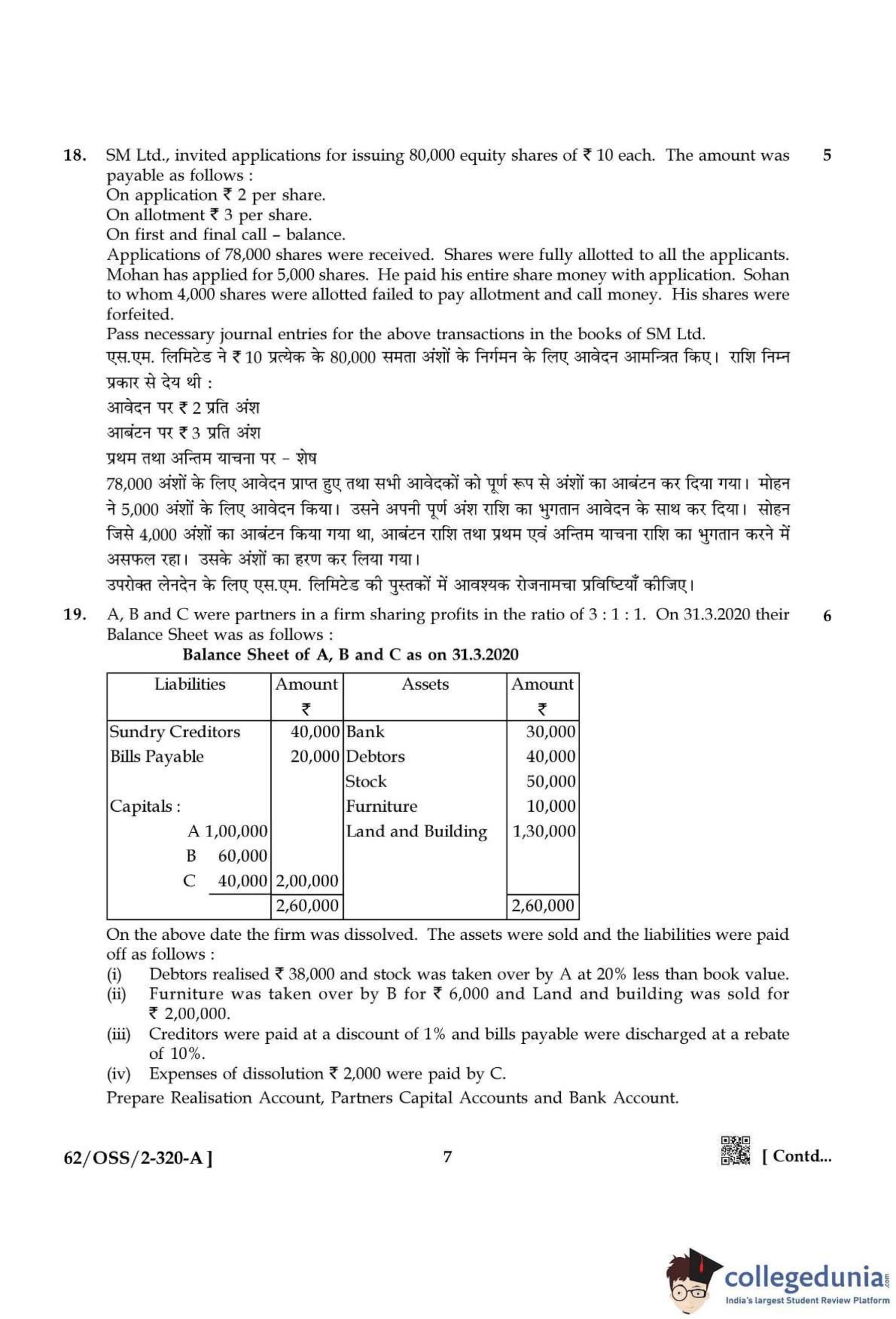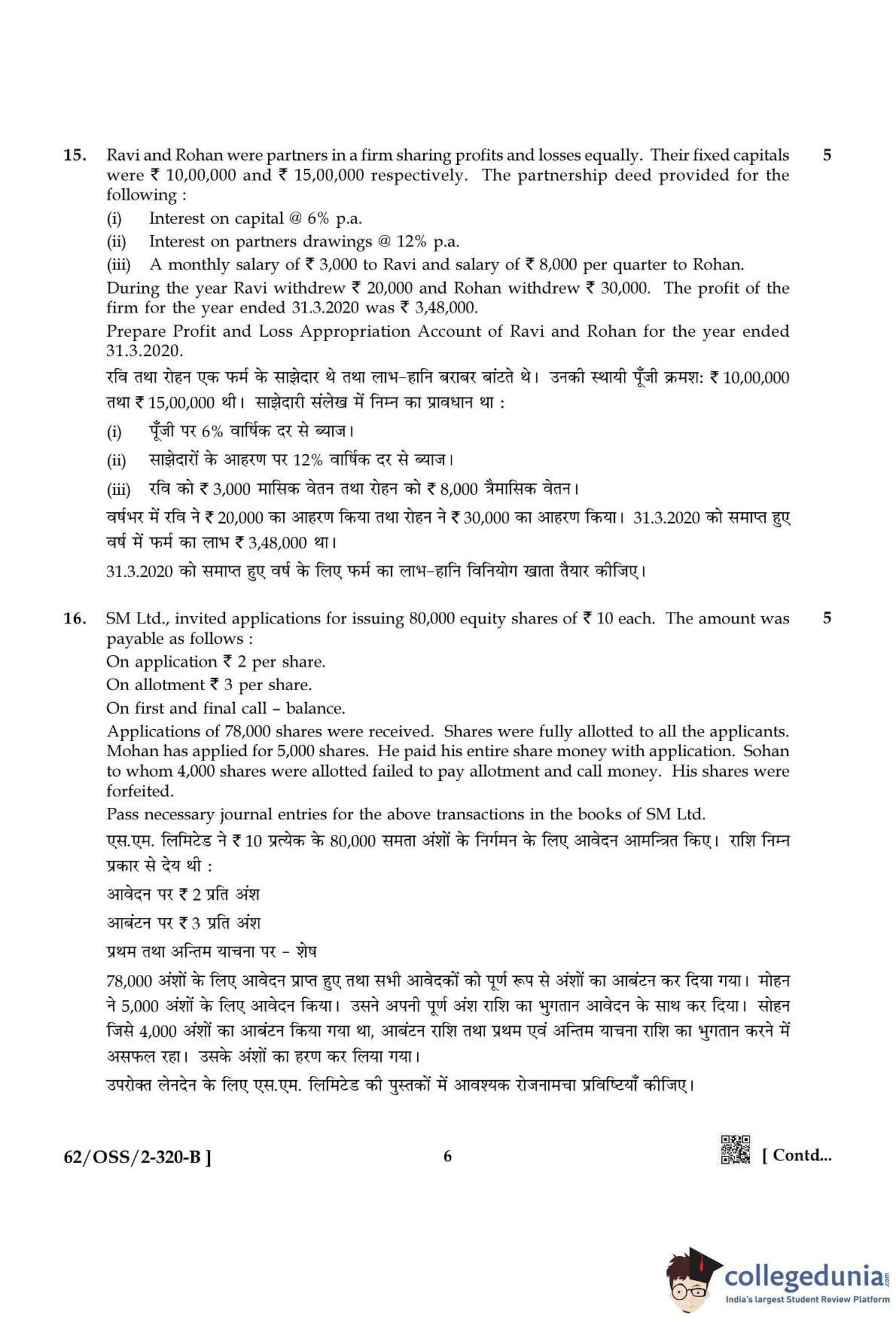 NIOS Class 12 Accountancy Compartment Question Paper 2021 with Answer Key