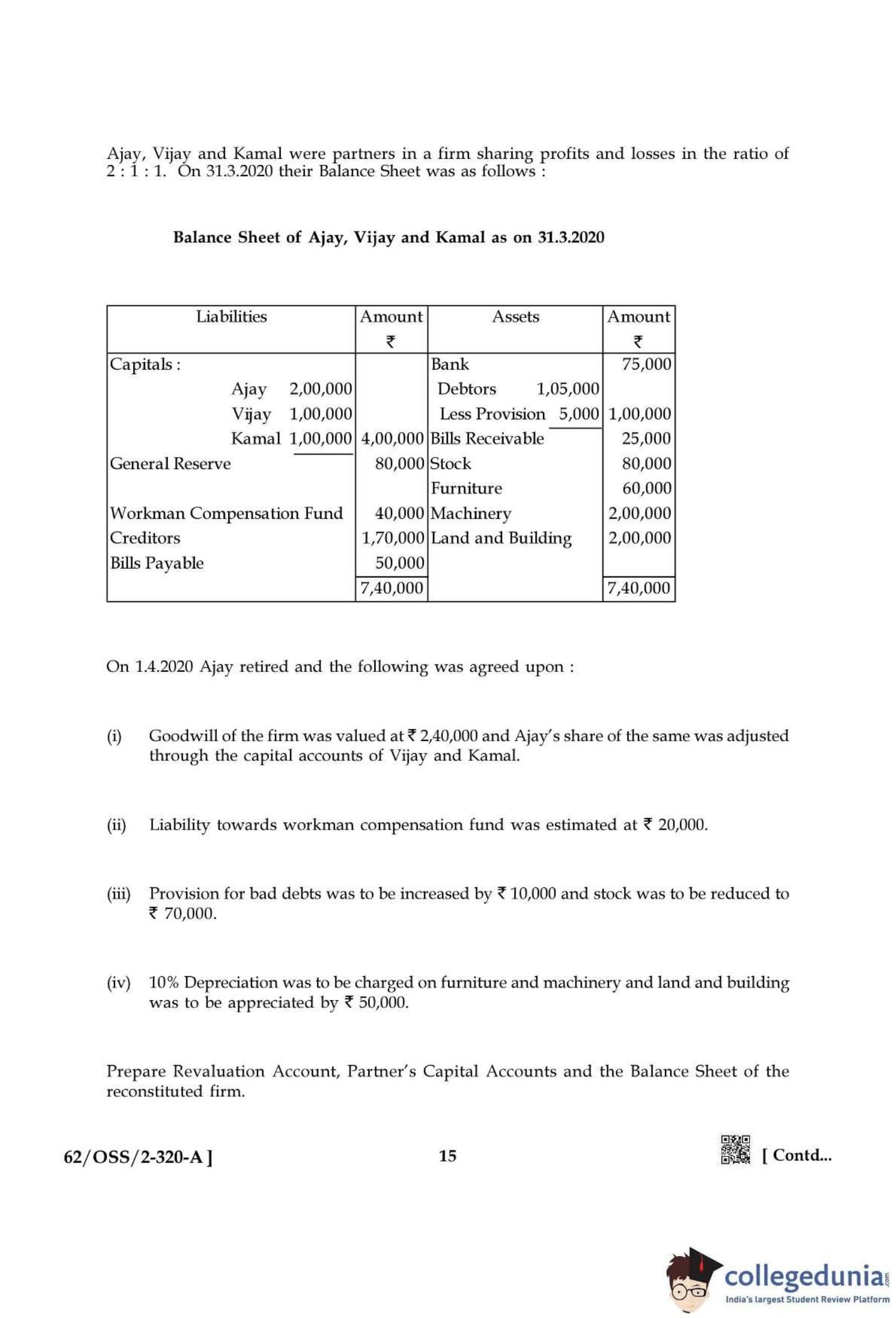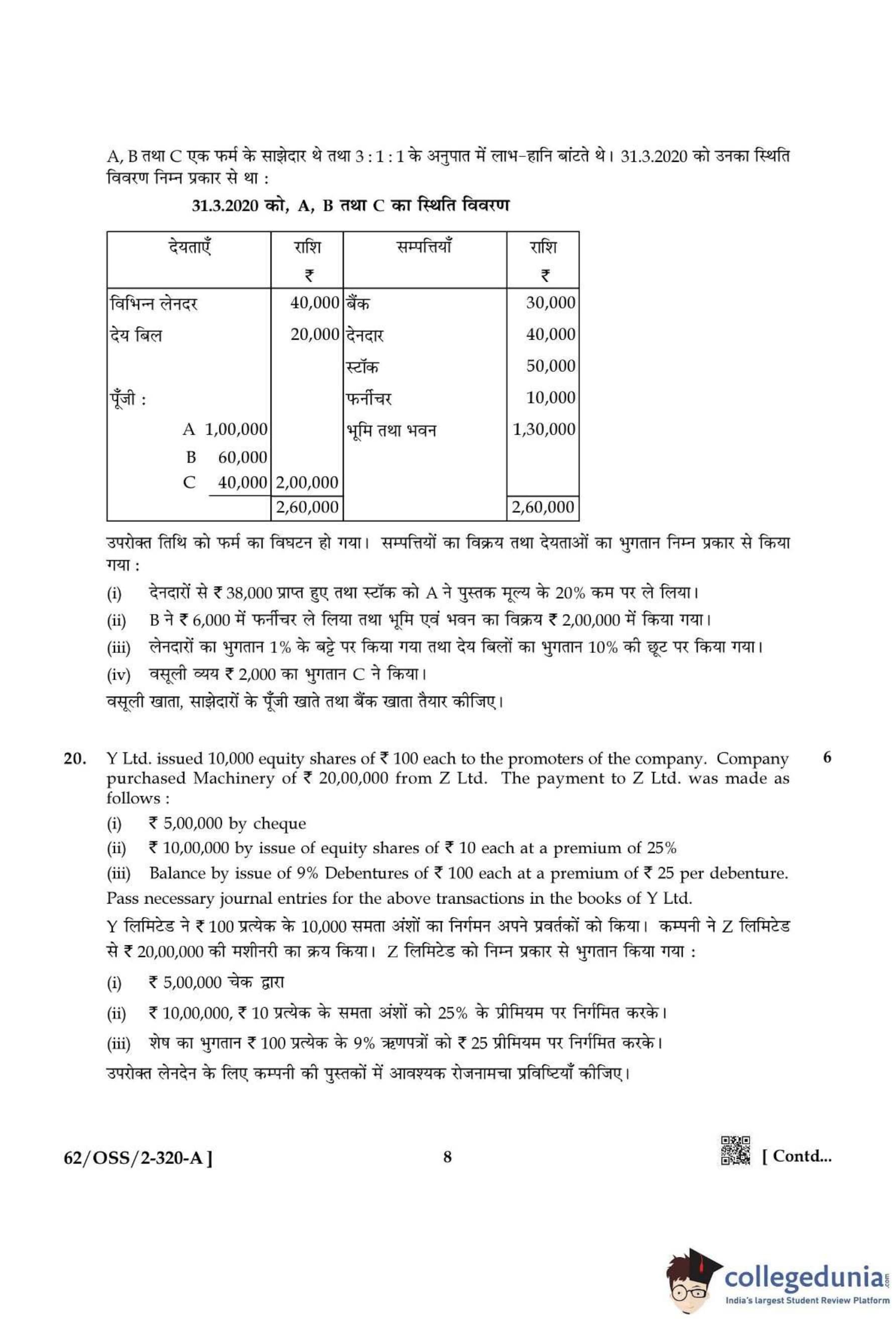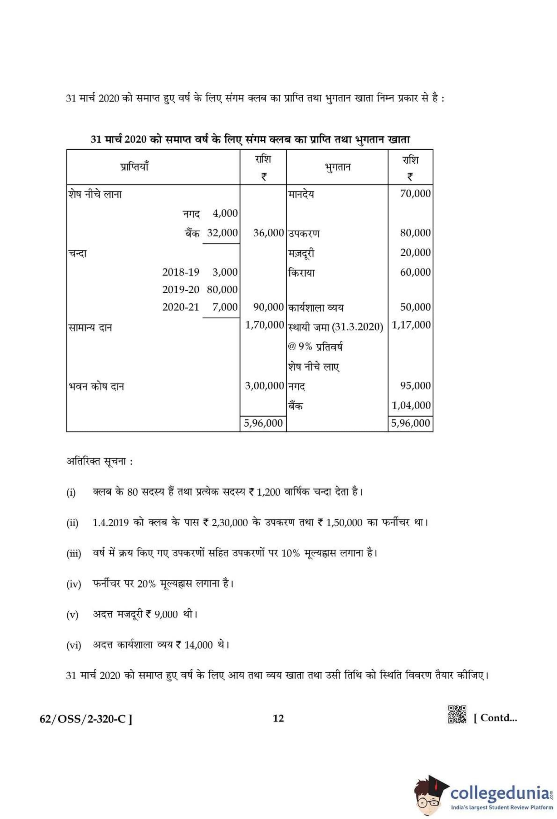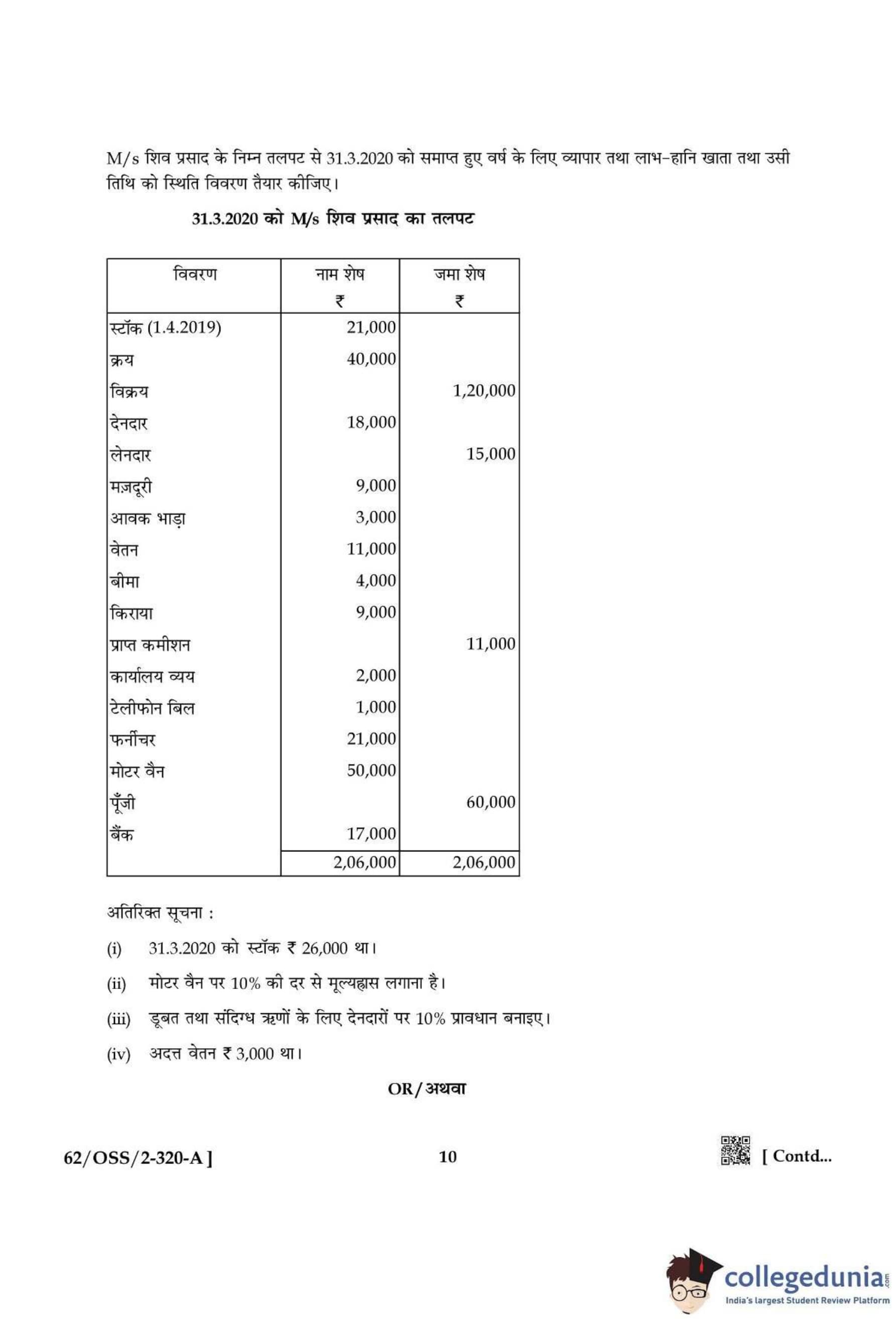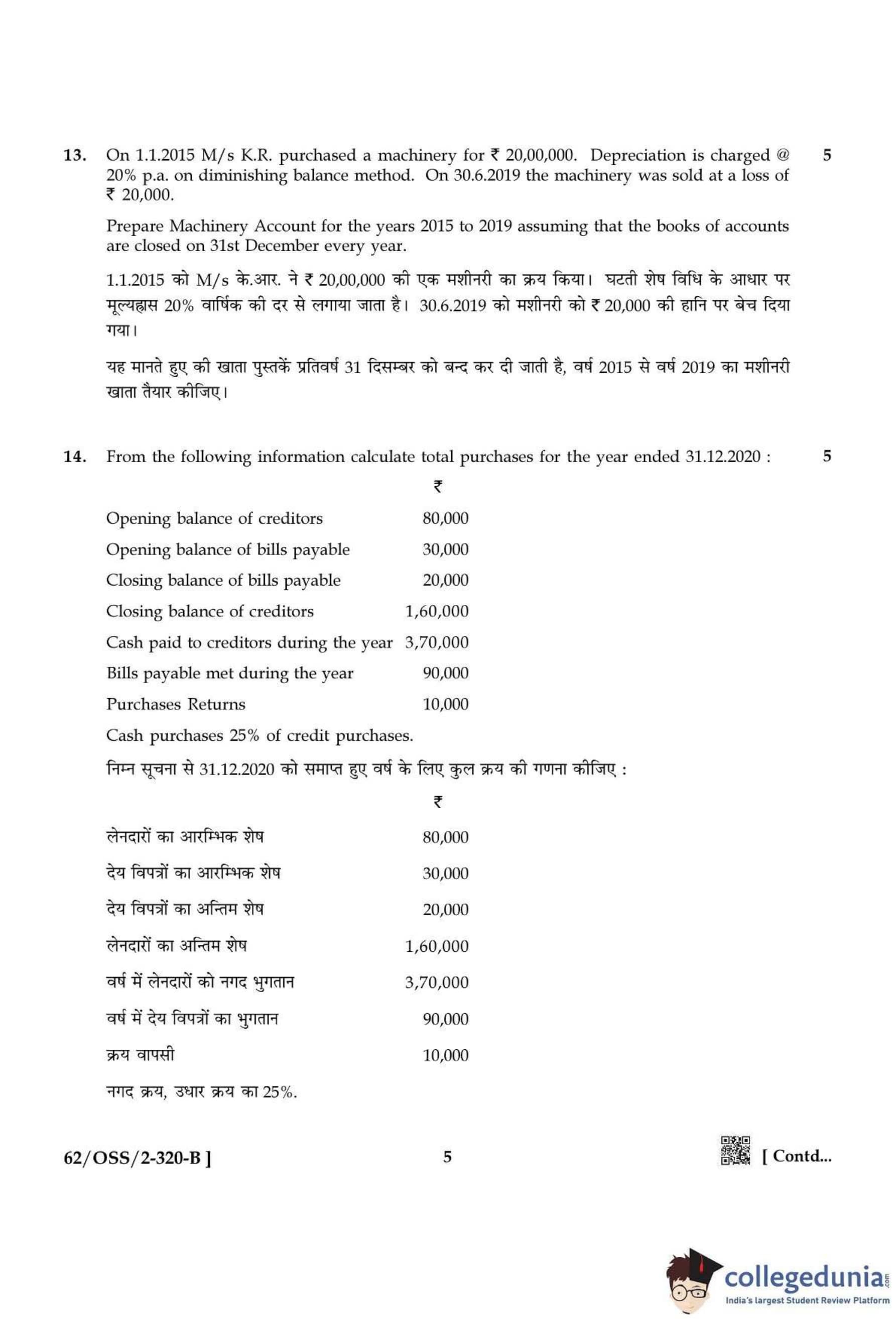NIOS Class 12 Accountancy Compartment Question Paper 2021 with Answer Key