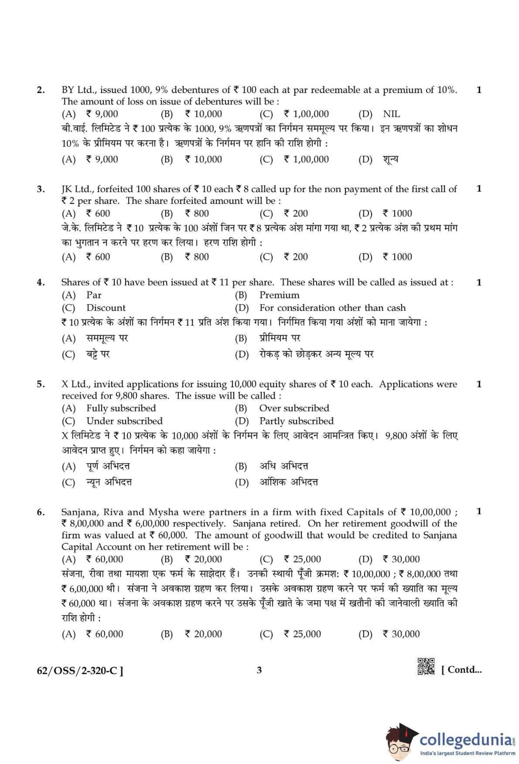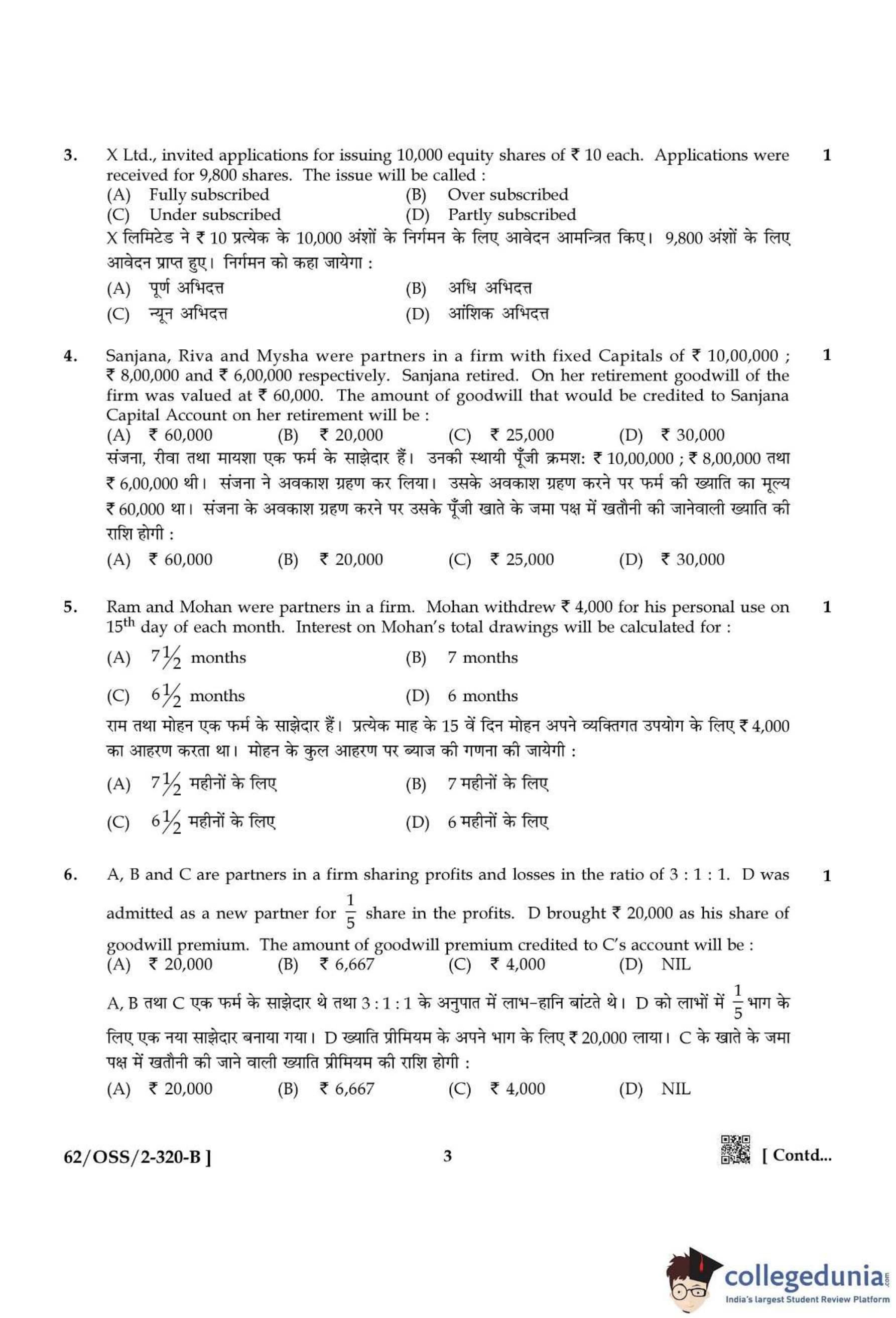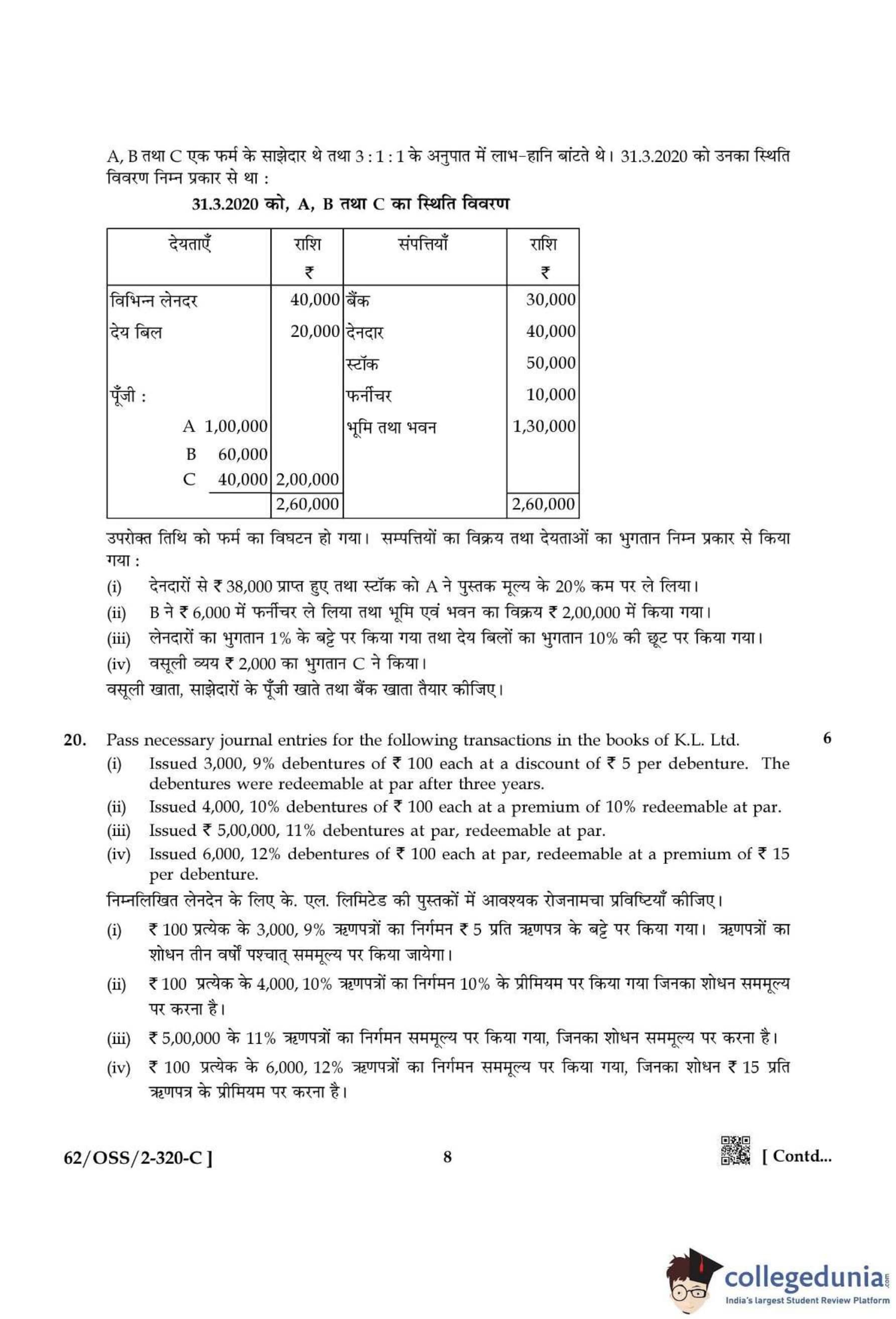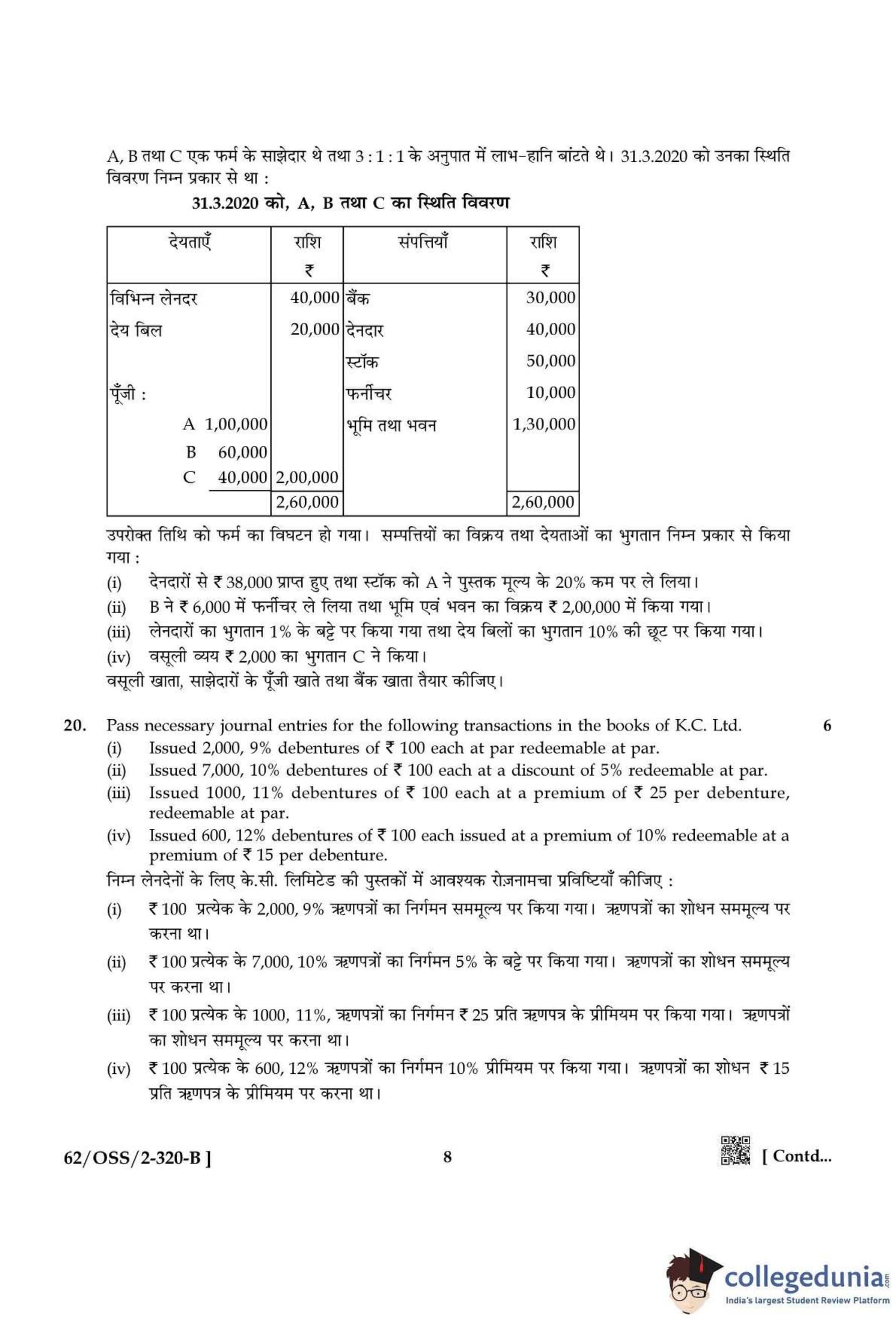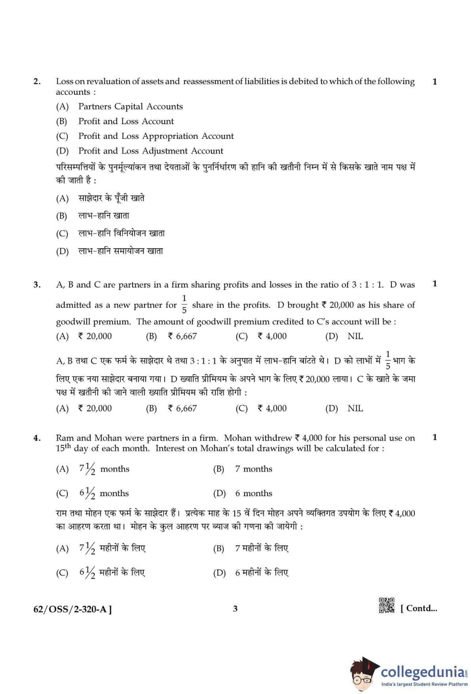 NIOS Class 12 Accountancy Compartment Question Paper 2021 with Answer Key