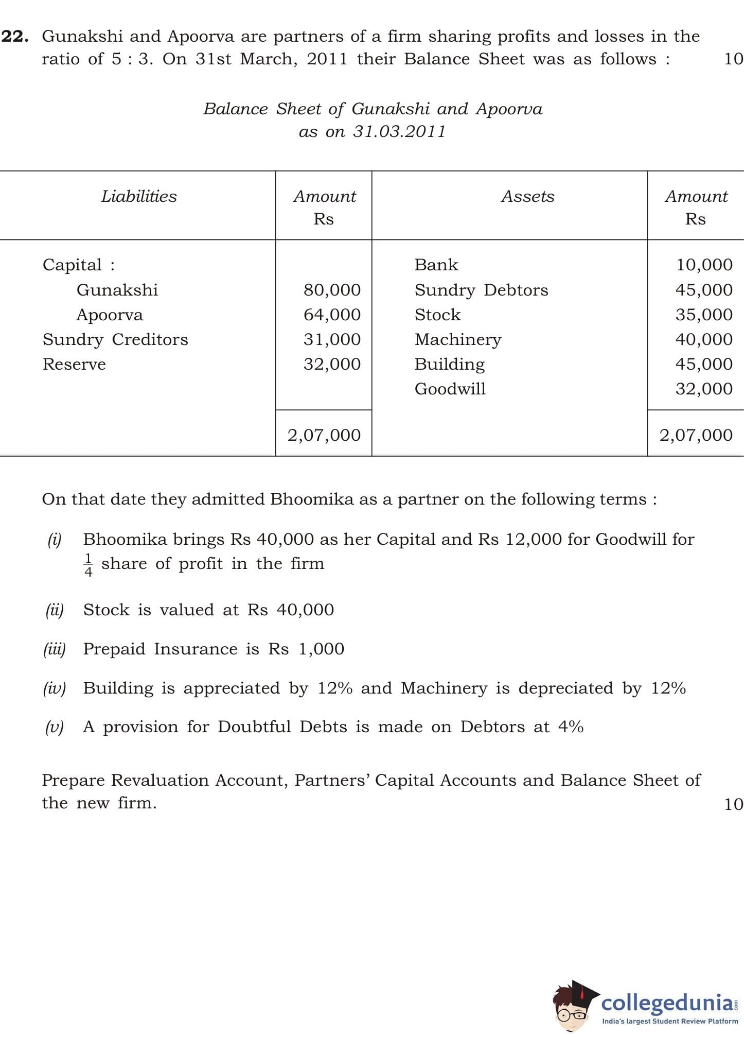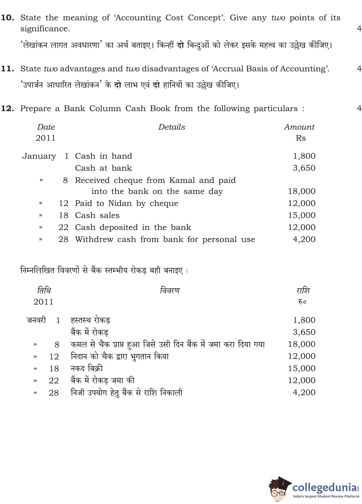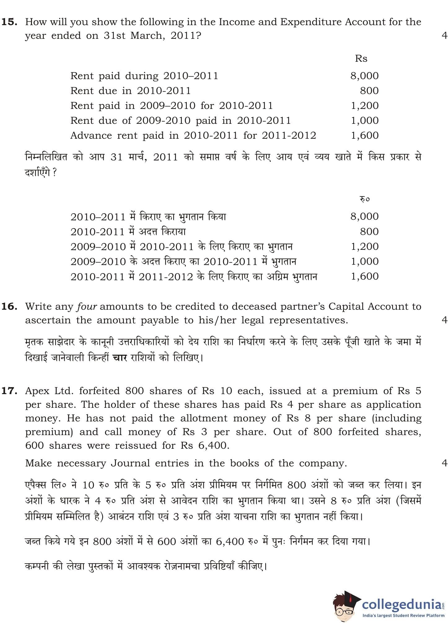 NIOS Class 12 Accountancy Question Paper 2011 with Answer Key
