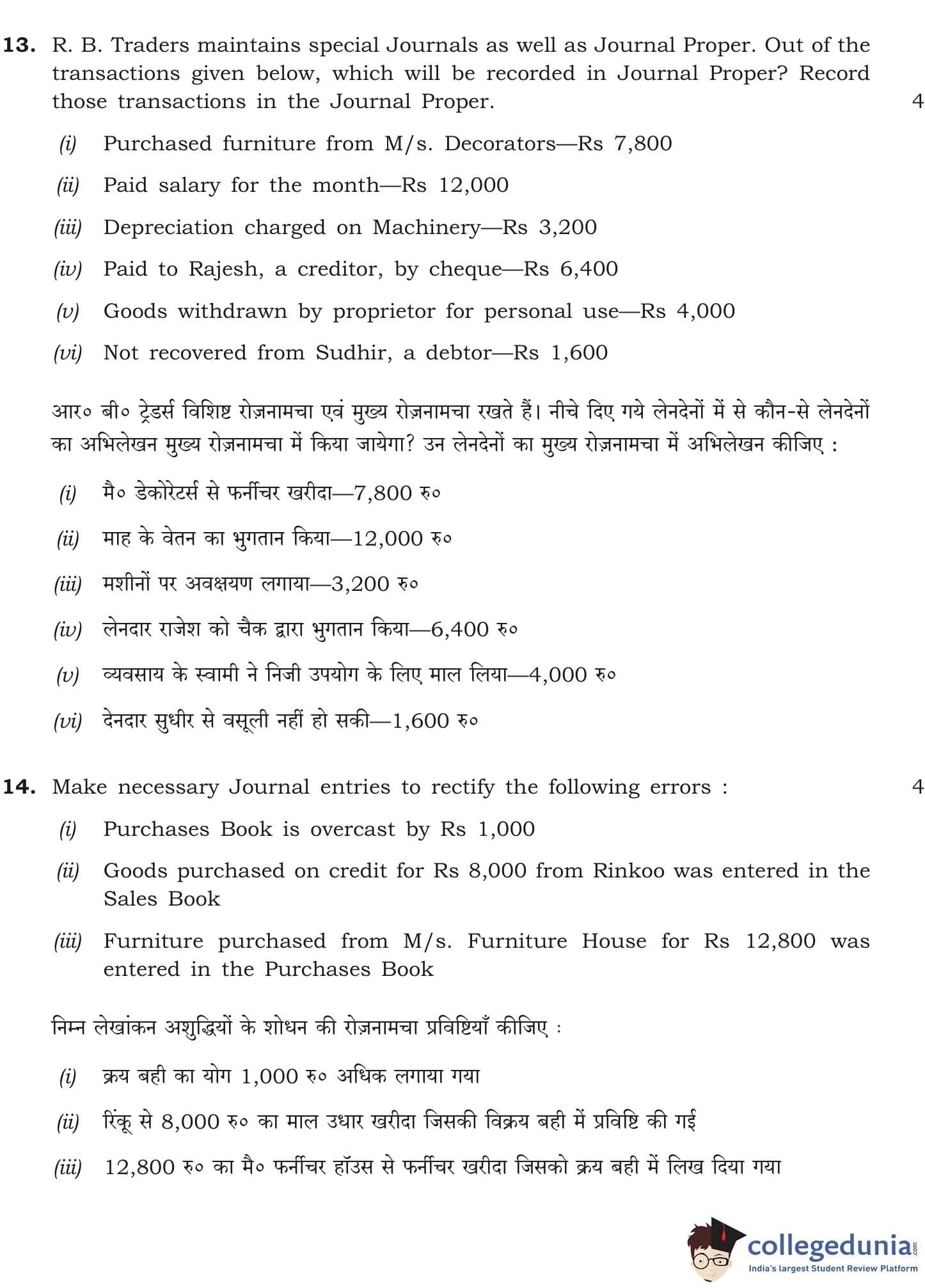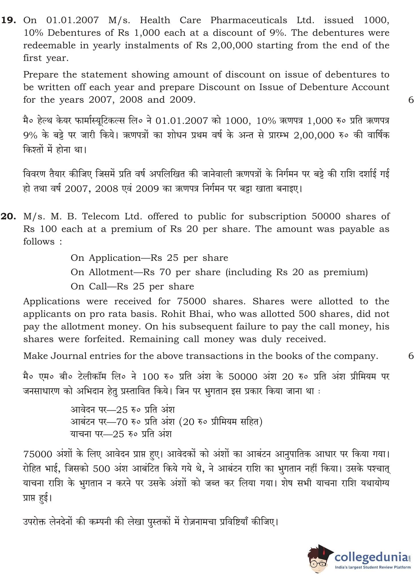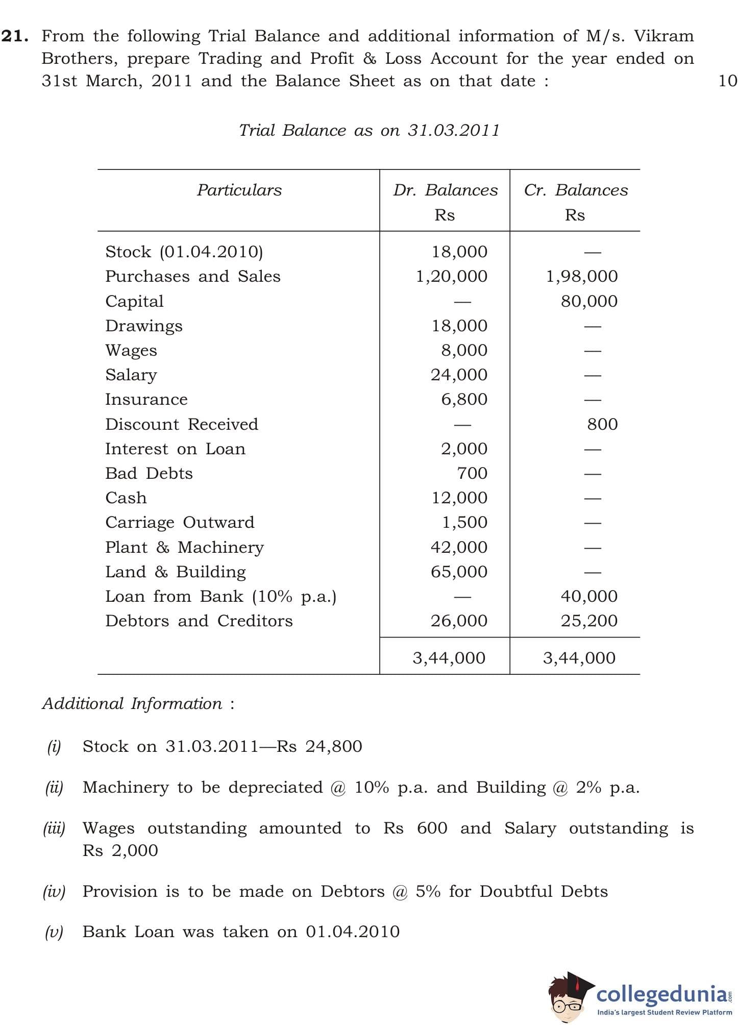 NIOS Class 12 Accountancy Question Paper 2011 with Answer Key