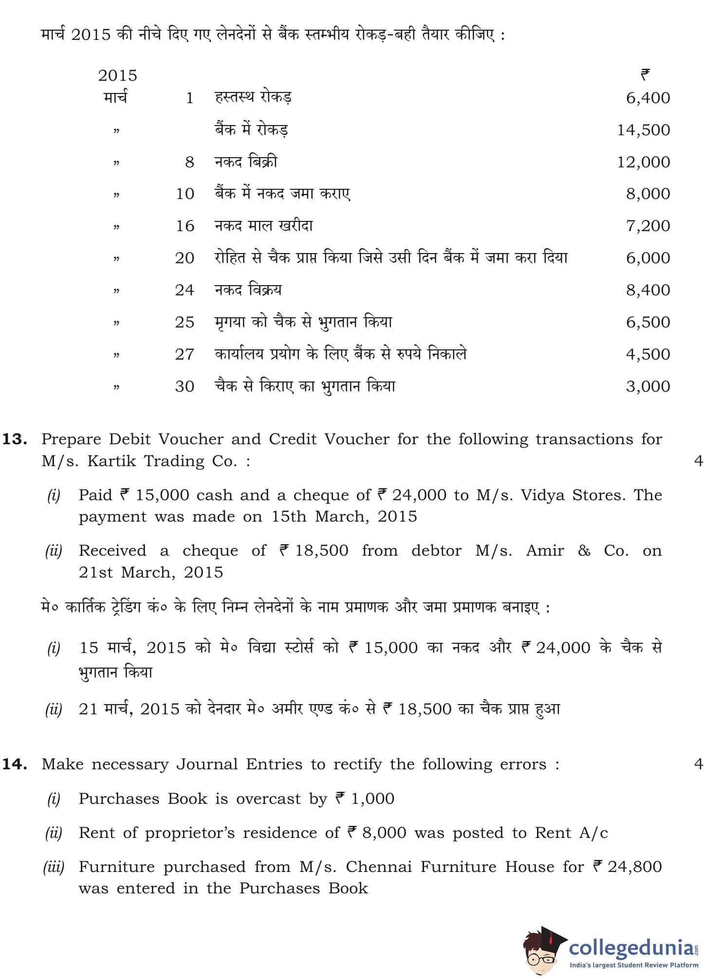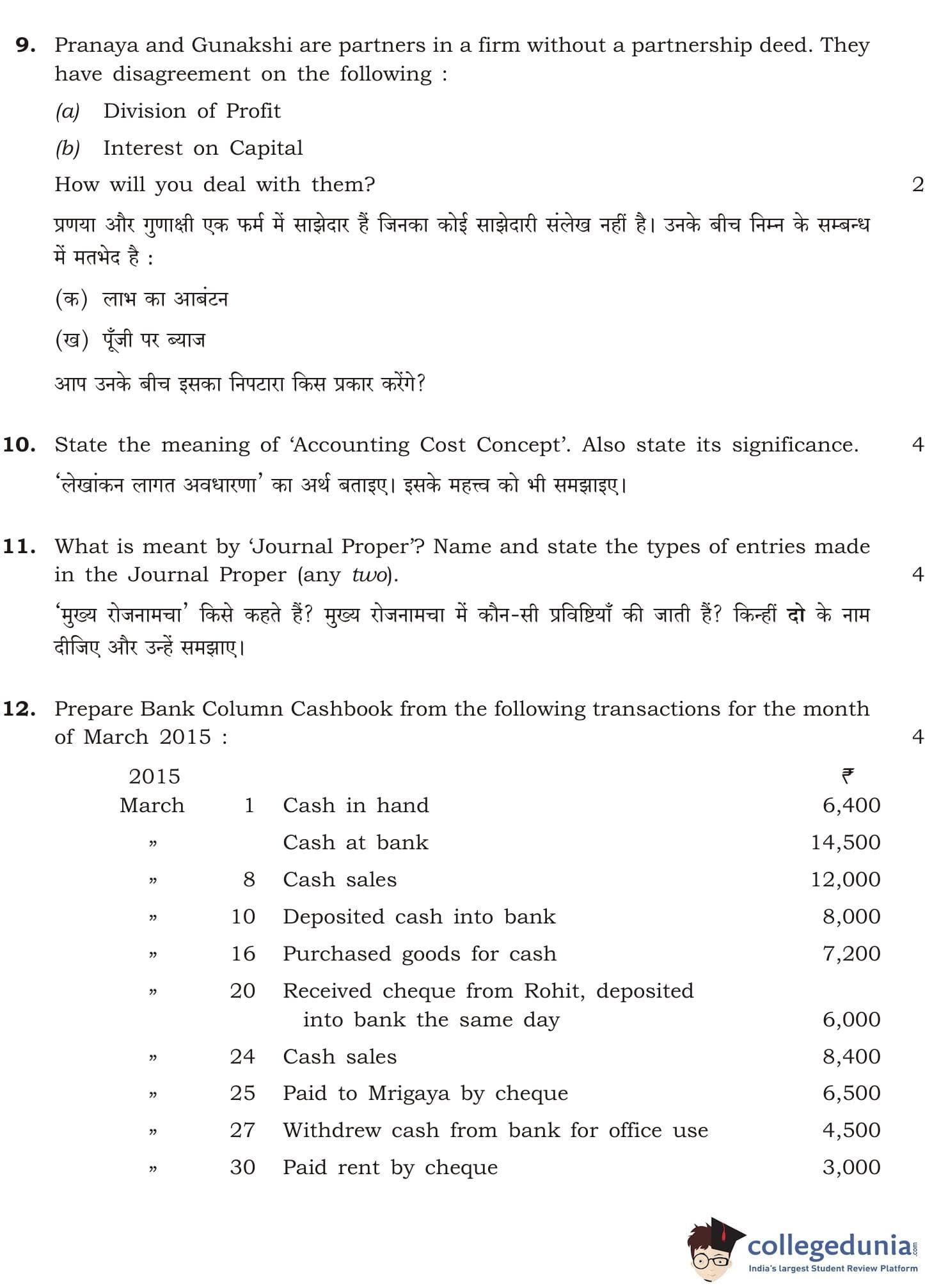NIOS Class 12 Accountancy Question Paper 2015 with Answer Key