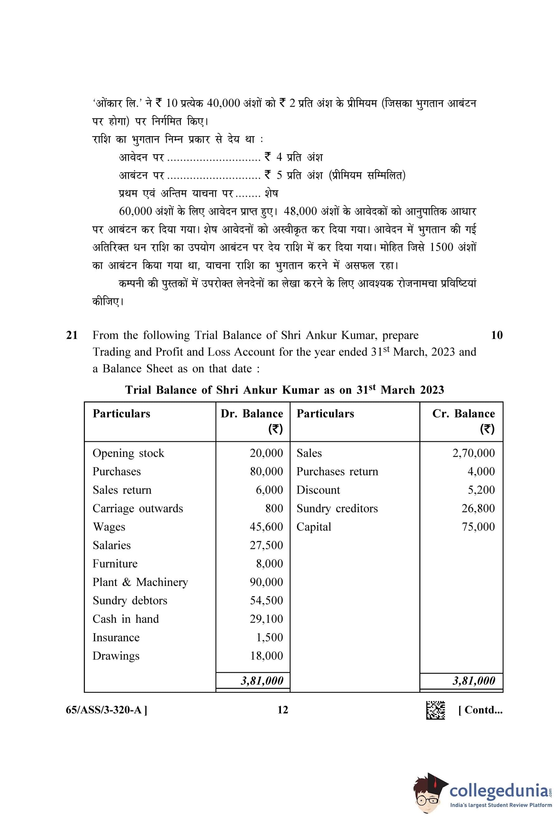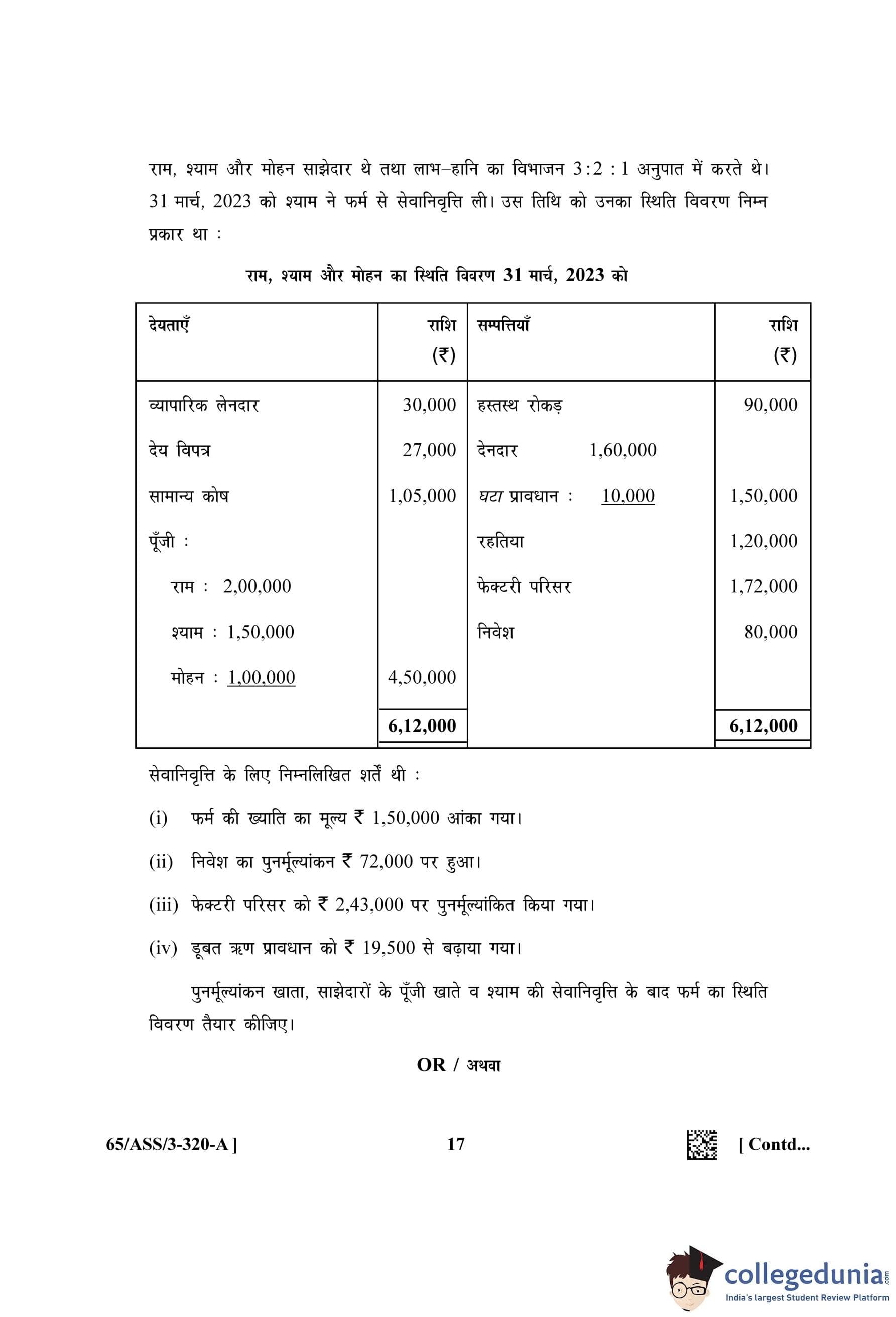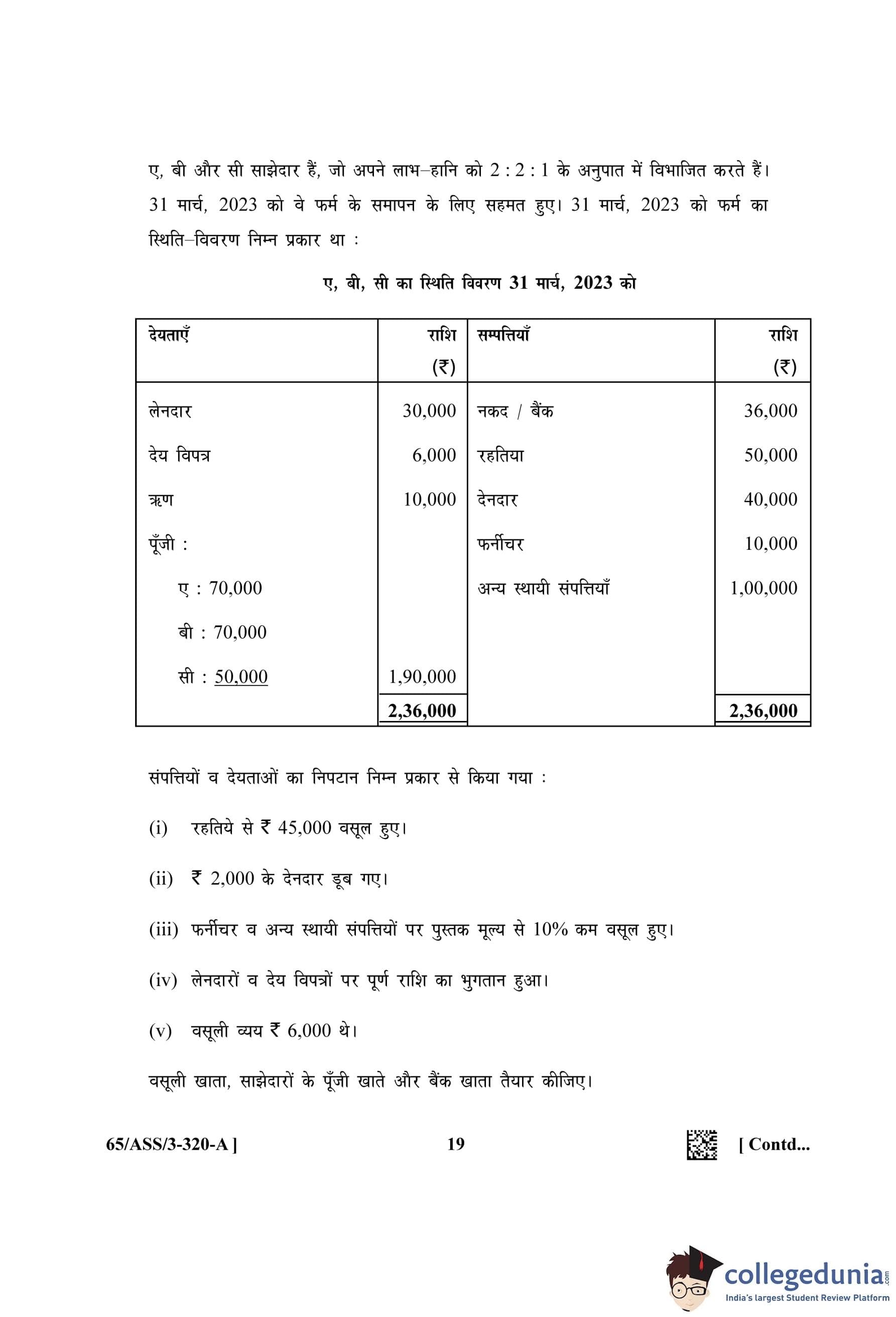 NIOS Class 12 Accountancy (Set A - ASS) Question Paper 2023 with Answer Key