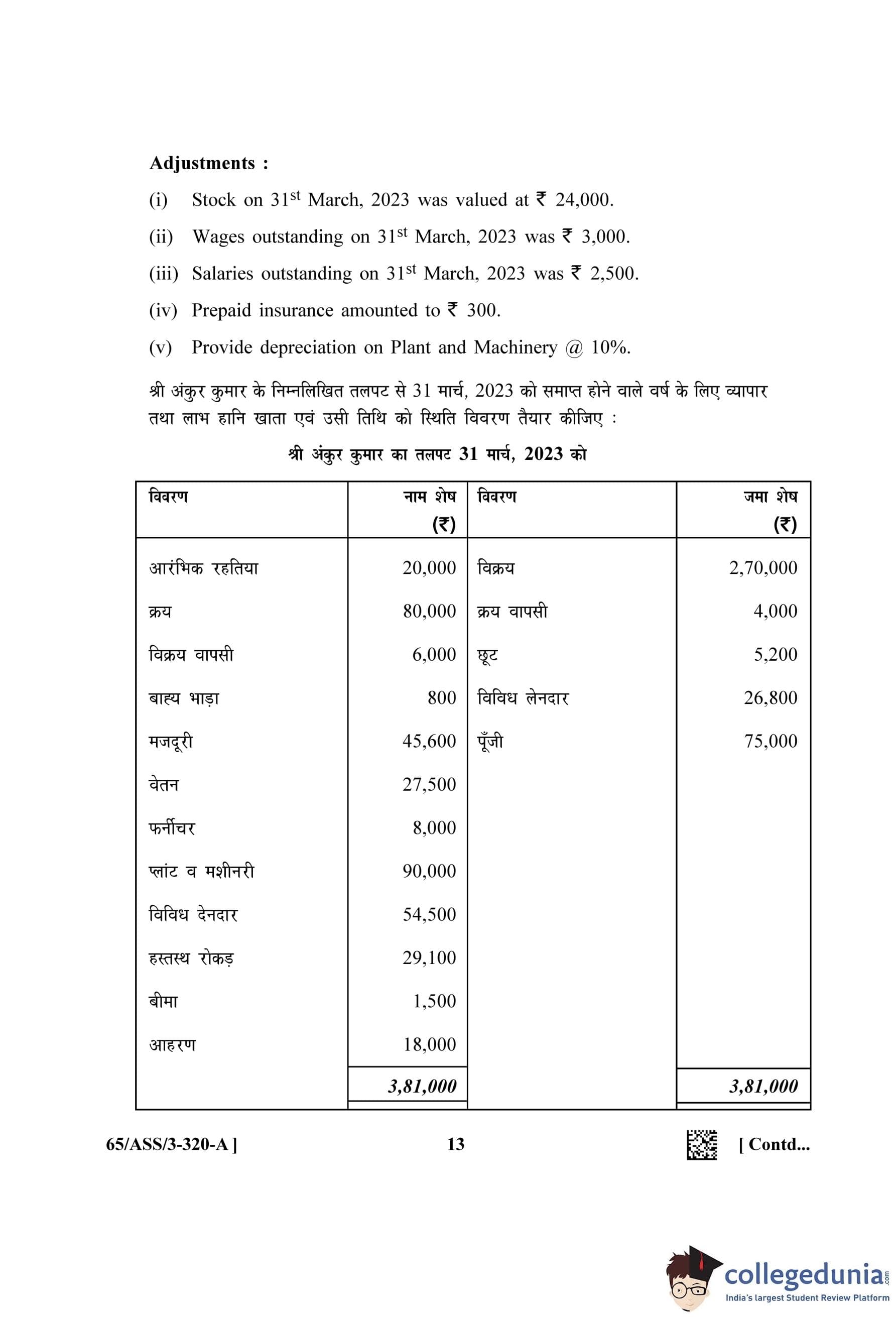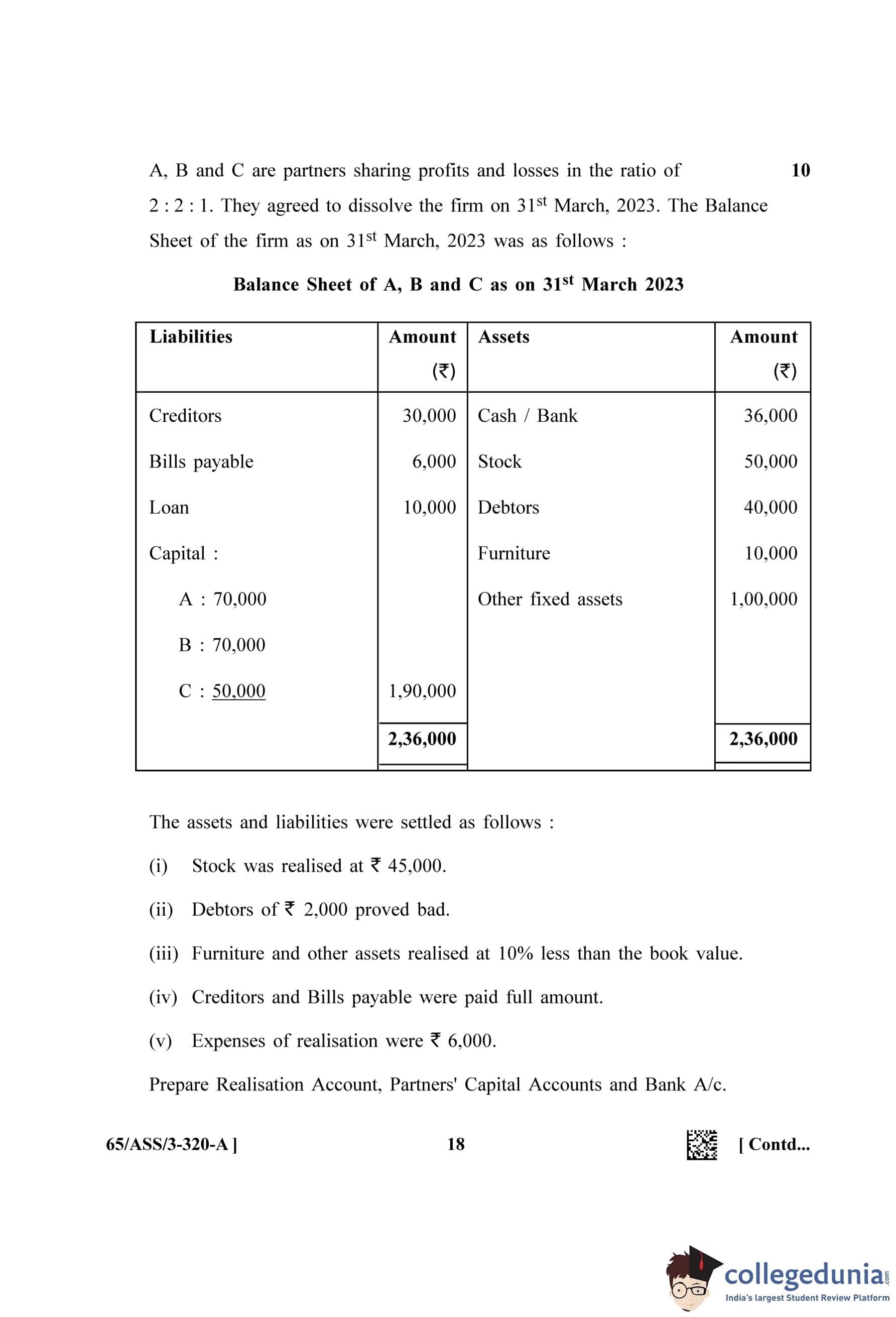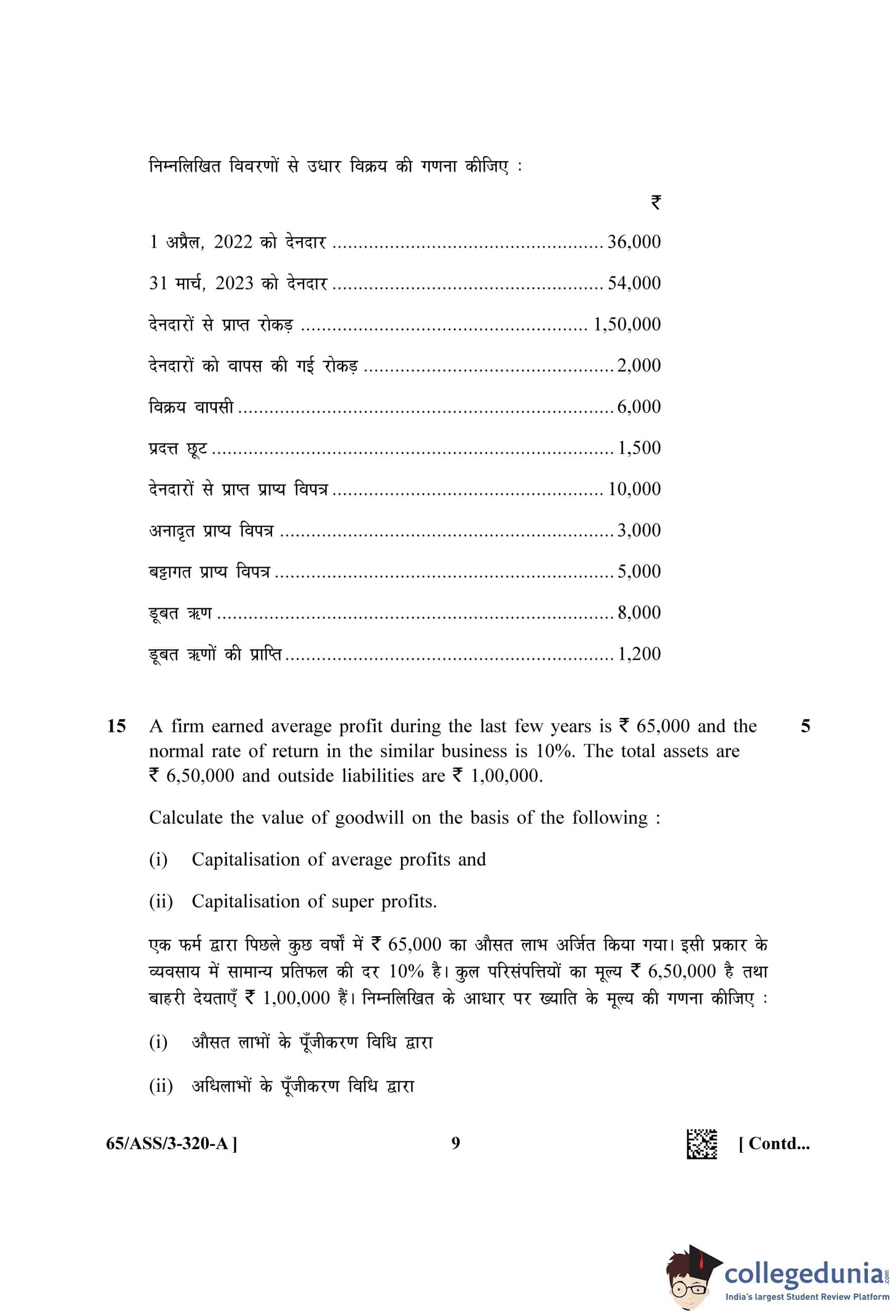 NIOS Class 12 Accountancy (Set A - ASS) Question Paper 2023 with Answer Key
