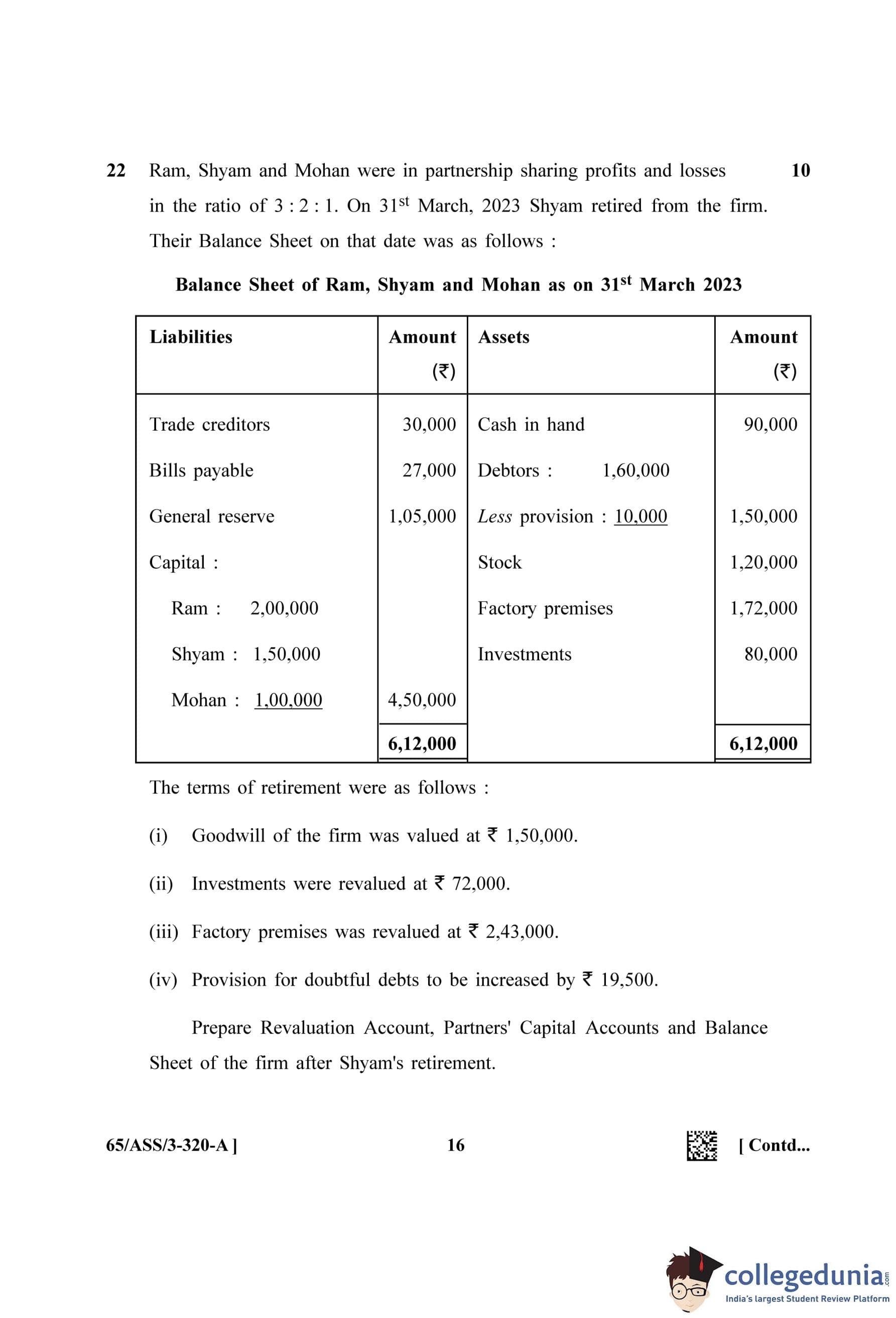 NIOS Class 12 Accountancy Question Paper 2023 with Answer Key pdf (Set A - ASS) is available for download here. The exam was conducted by National Institute of Open Schooling on April 26, 2023 in the Afternoon Session 2.30 PM to 5.30 PM. The question paper comprised a total of 32 questions divided among 2 sections.