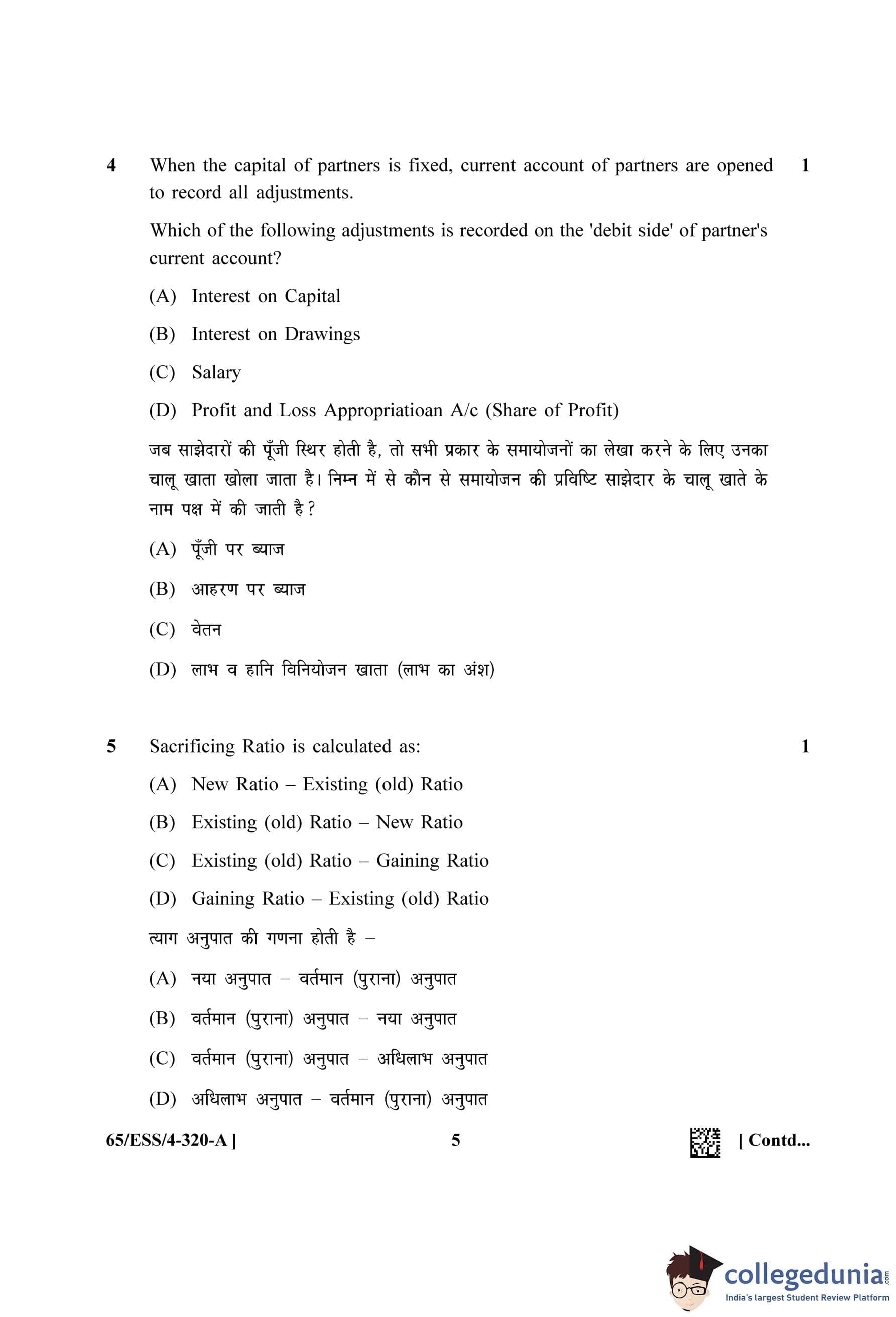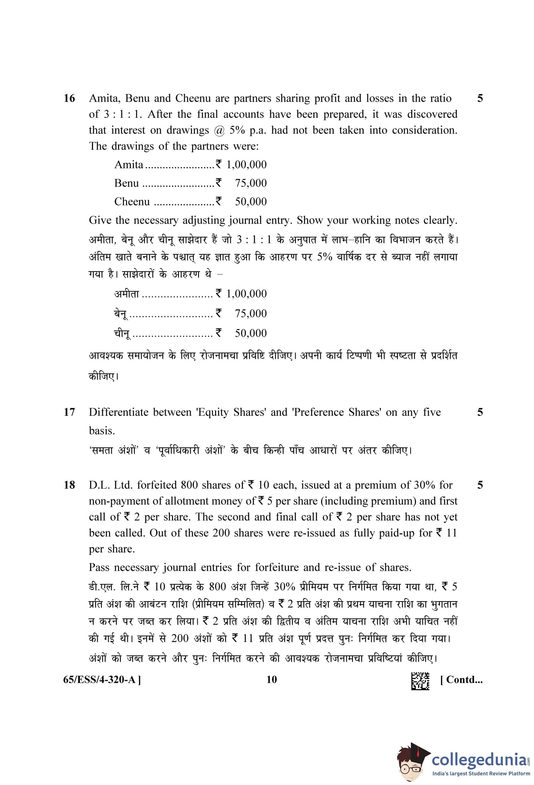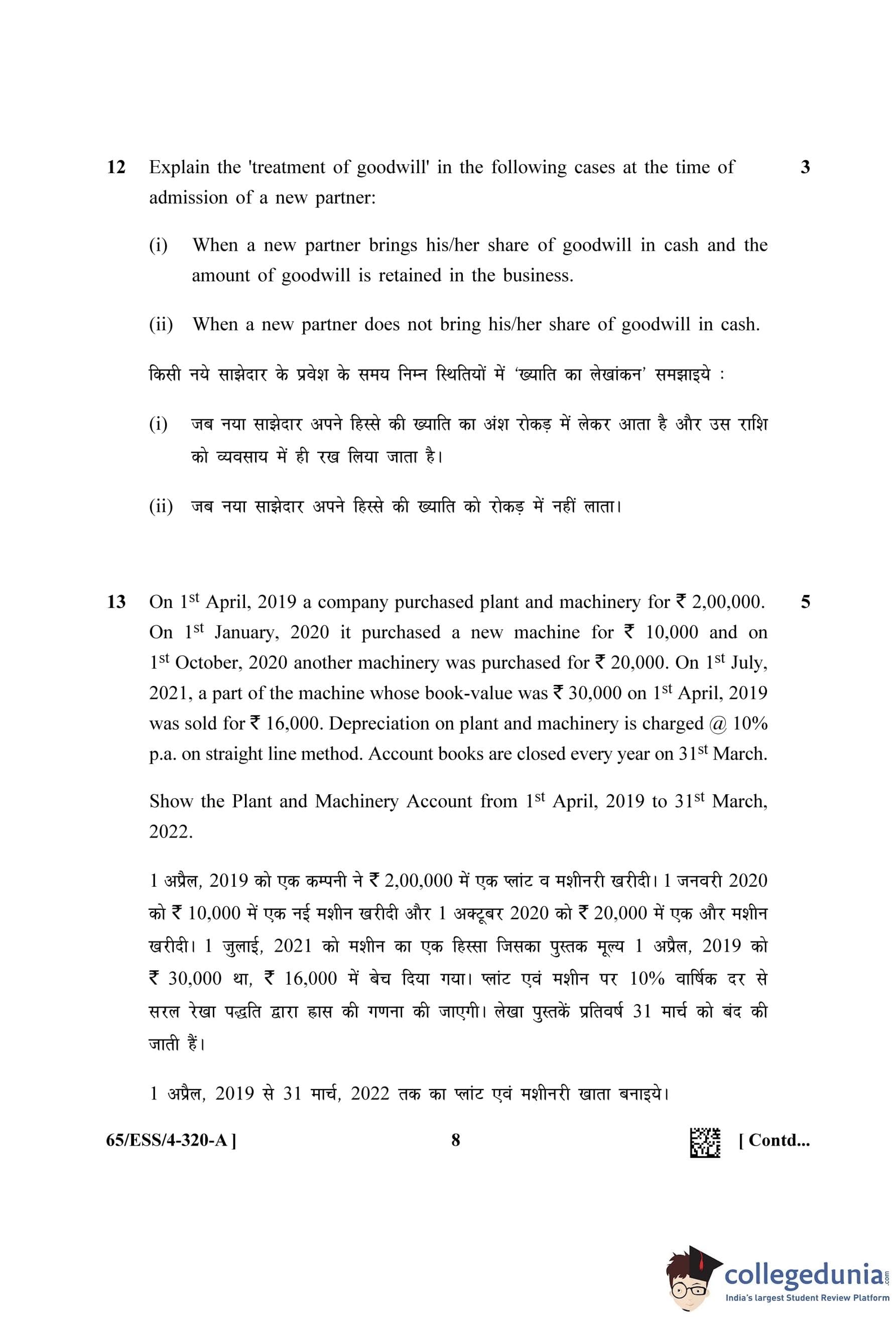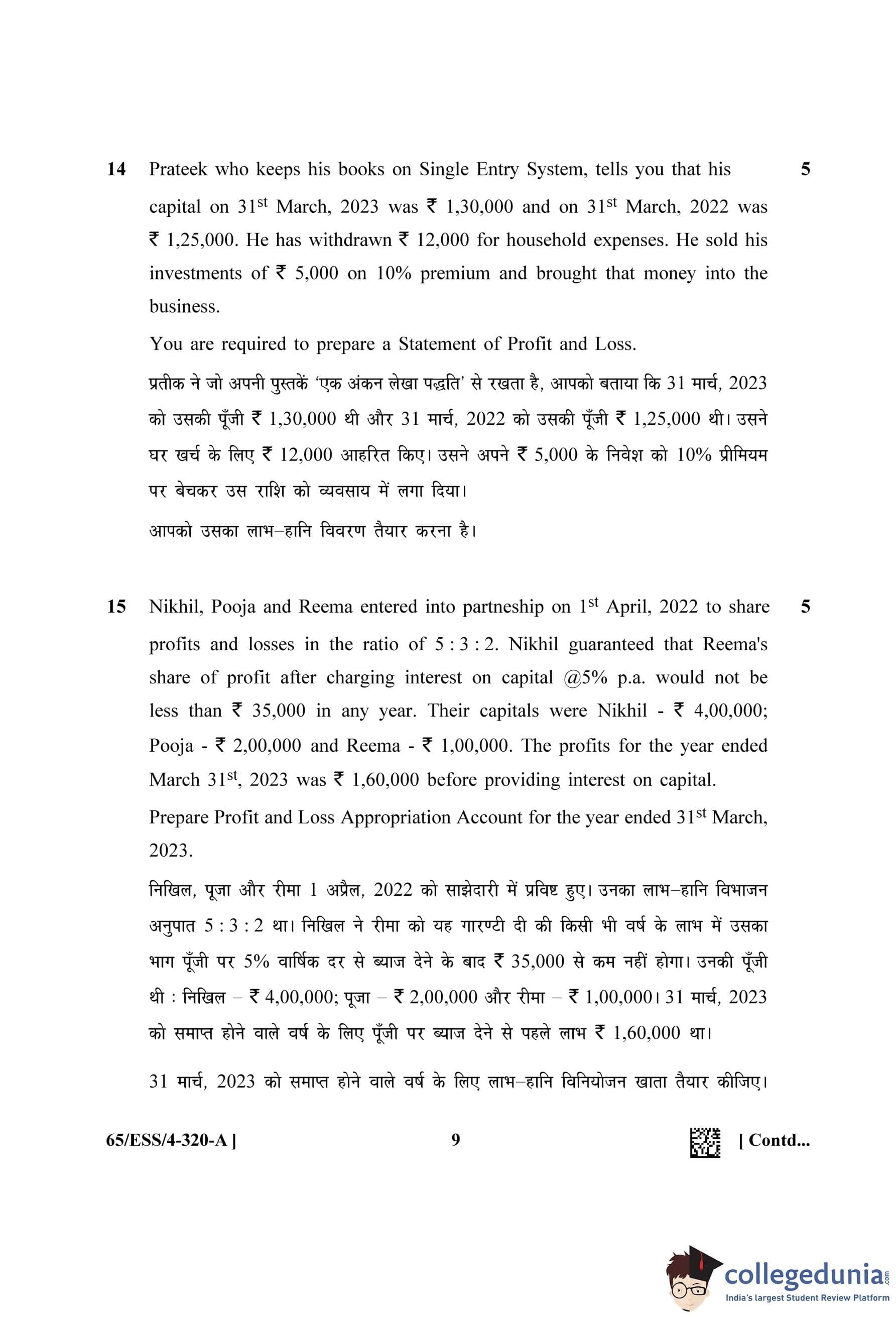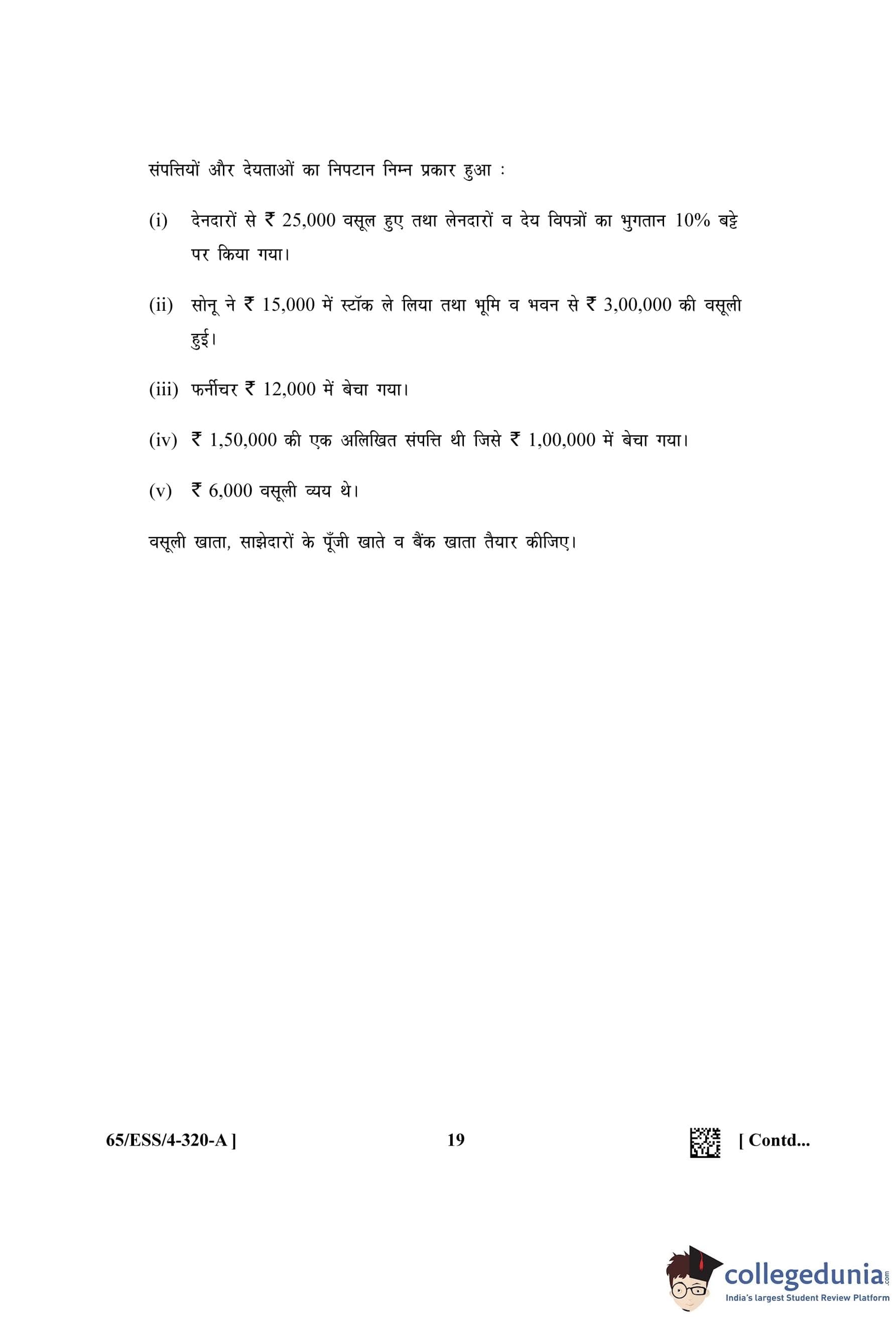 NIOS Class 12 Accountancy (Set A - ESS) Question Paper 2023 with Answer Key
