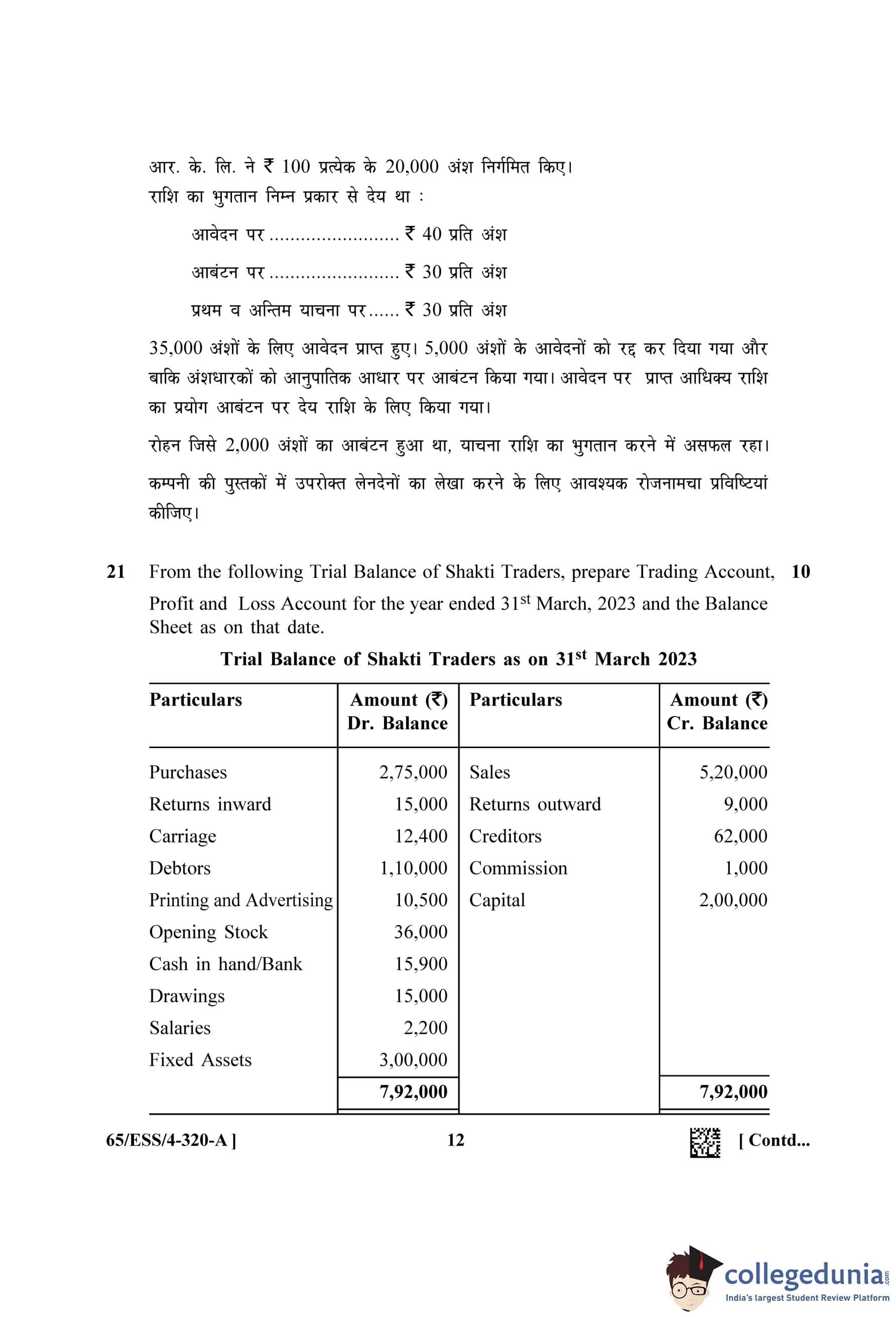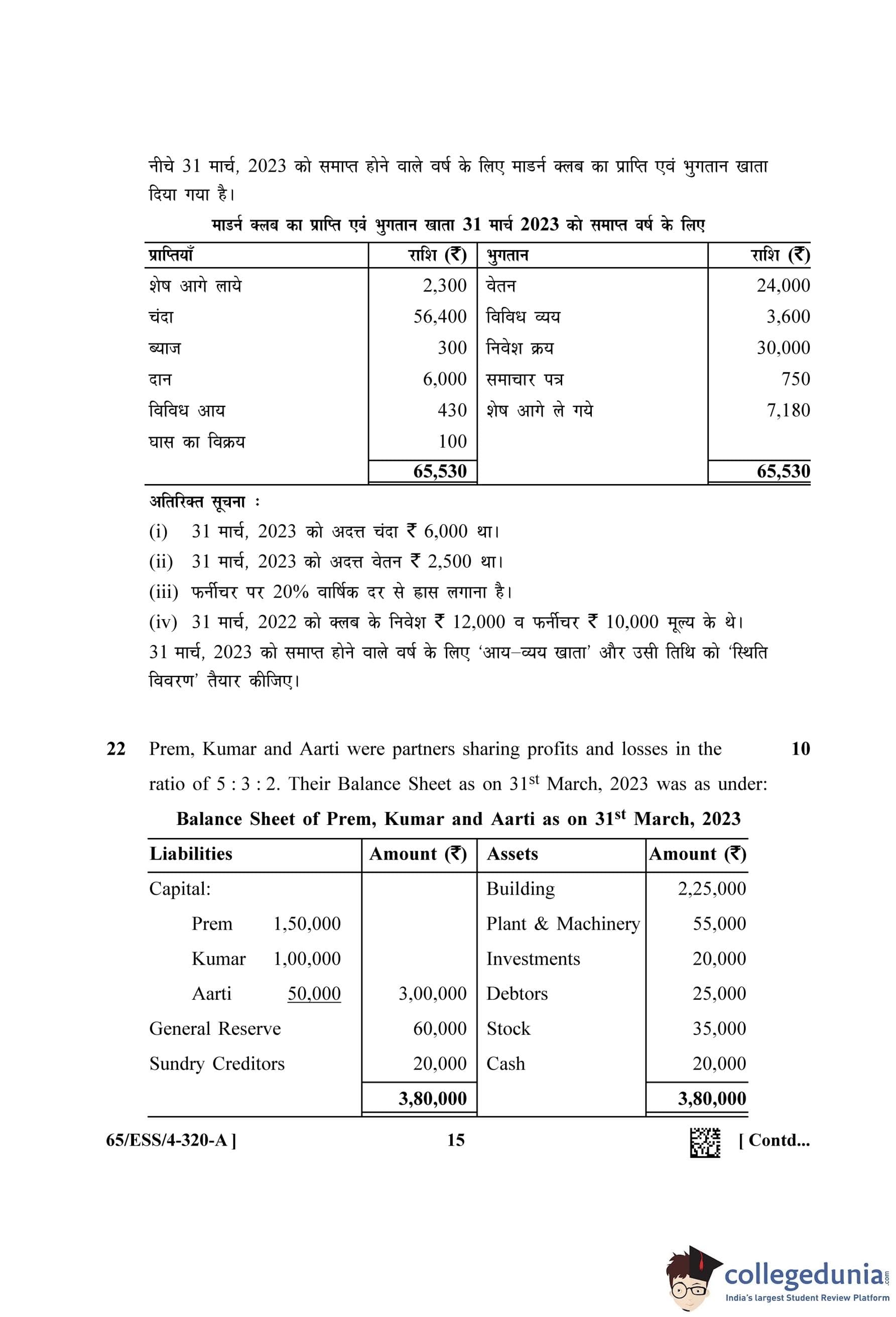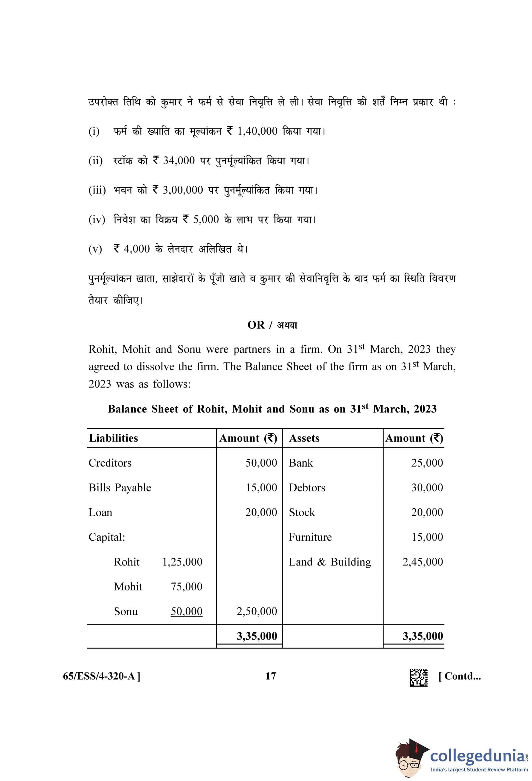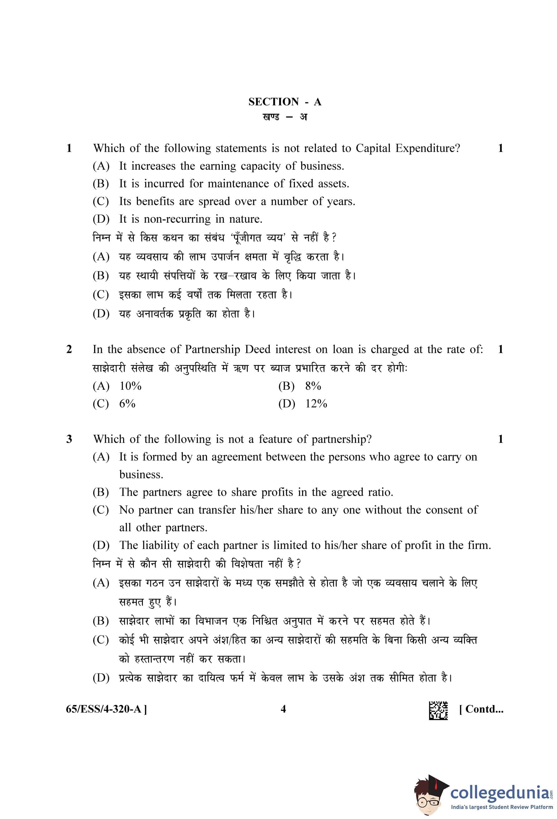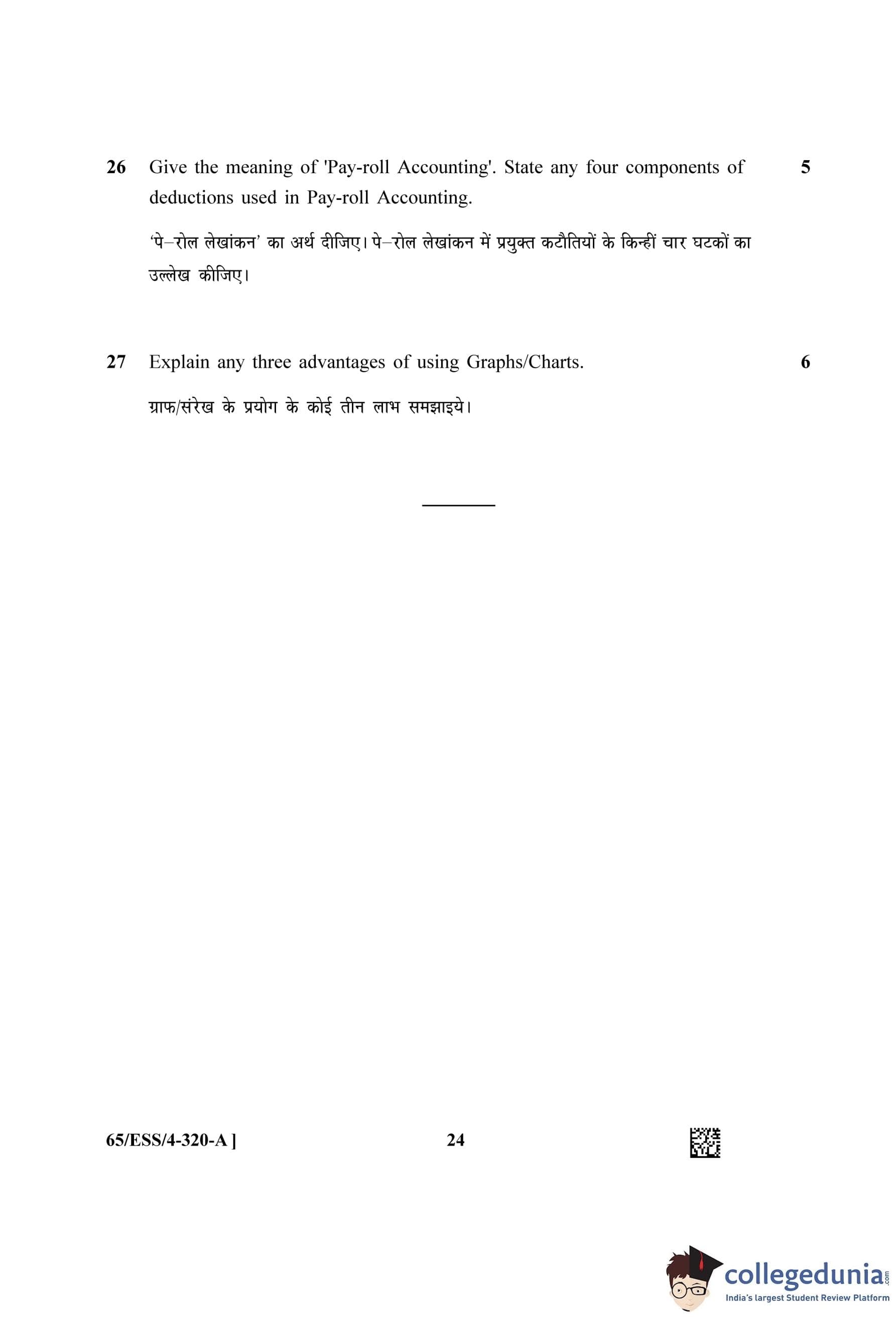 NIOS Class 12 Accountancy (Set A - ESS) Question Paper 2023 with Answer Key