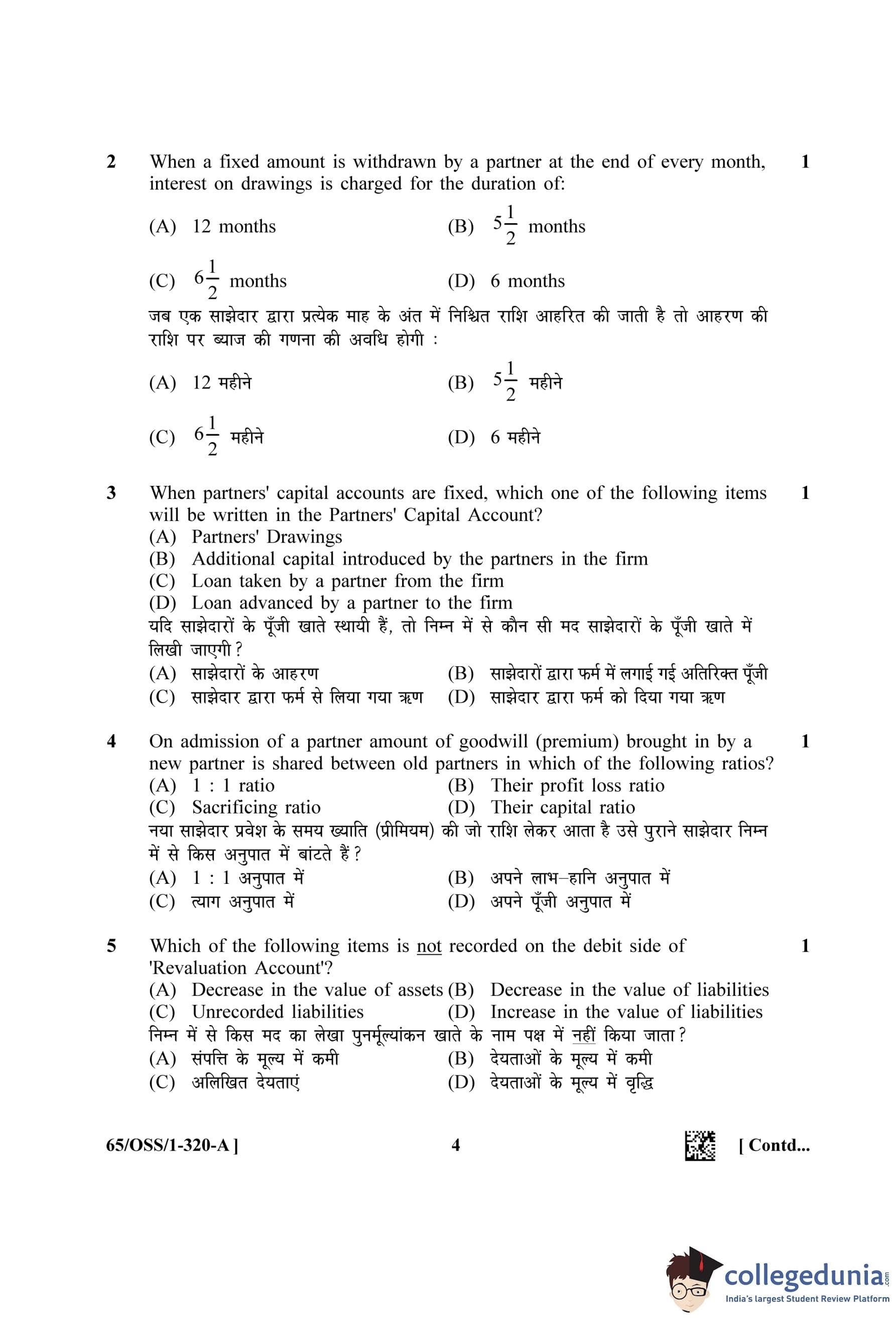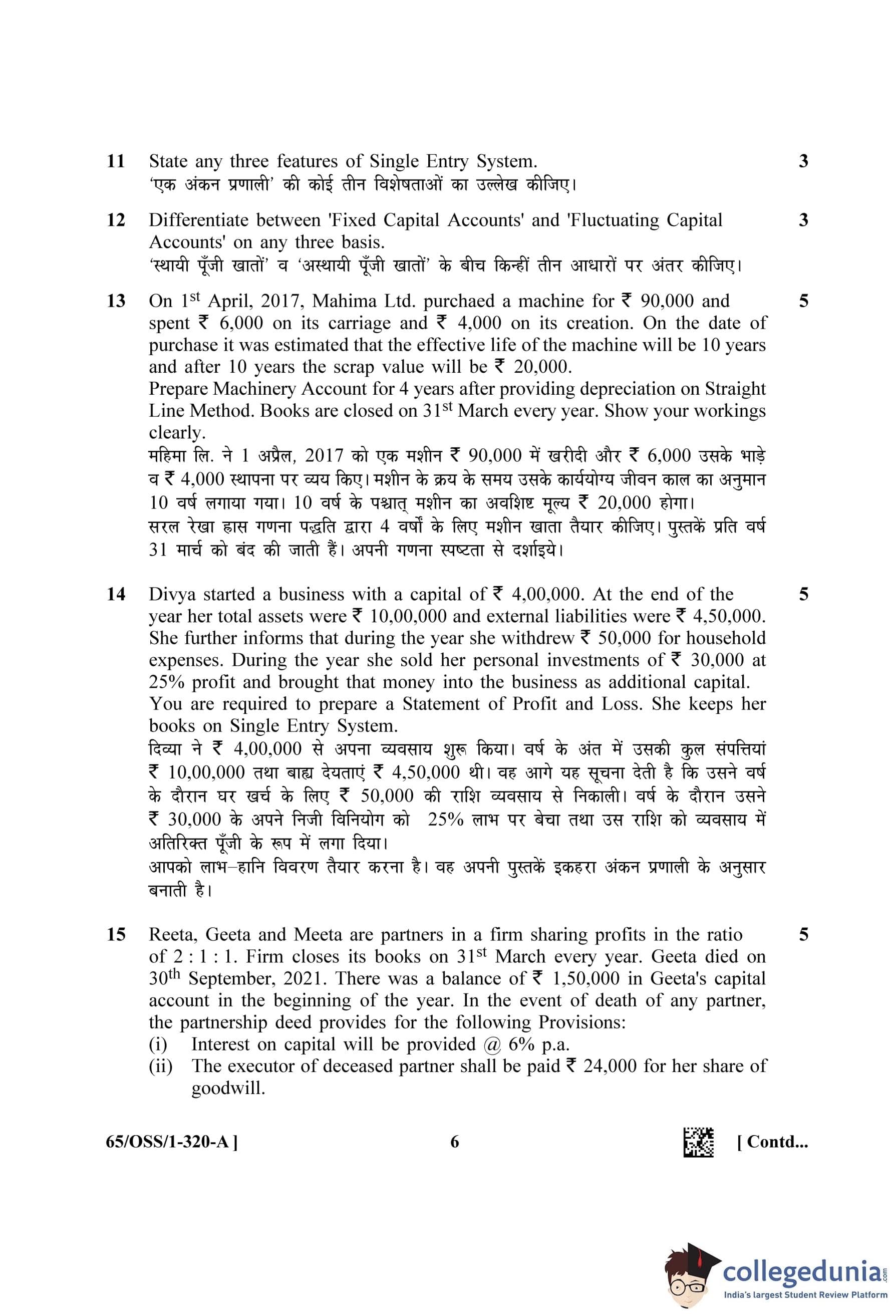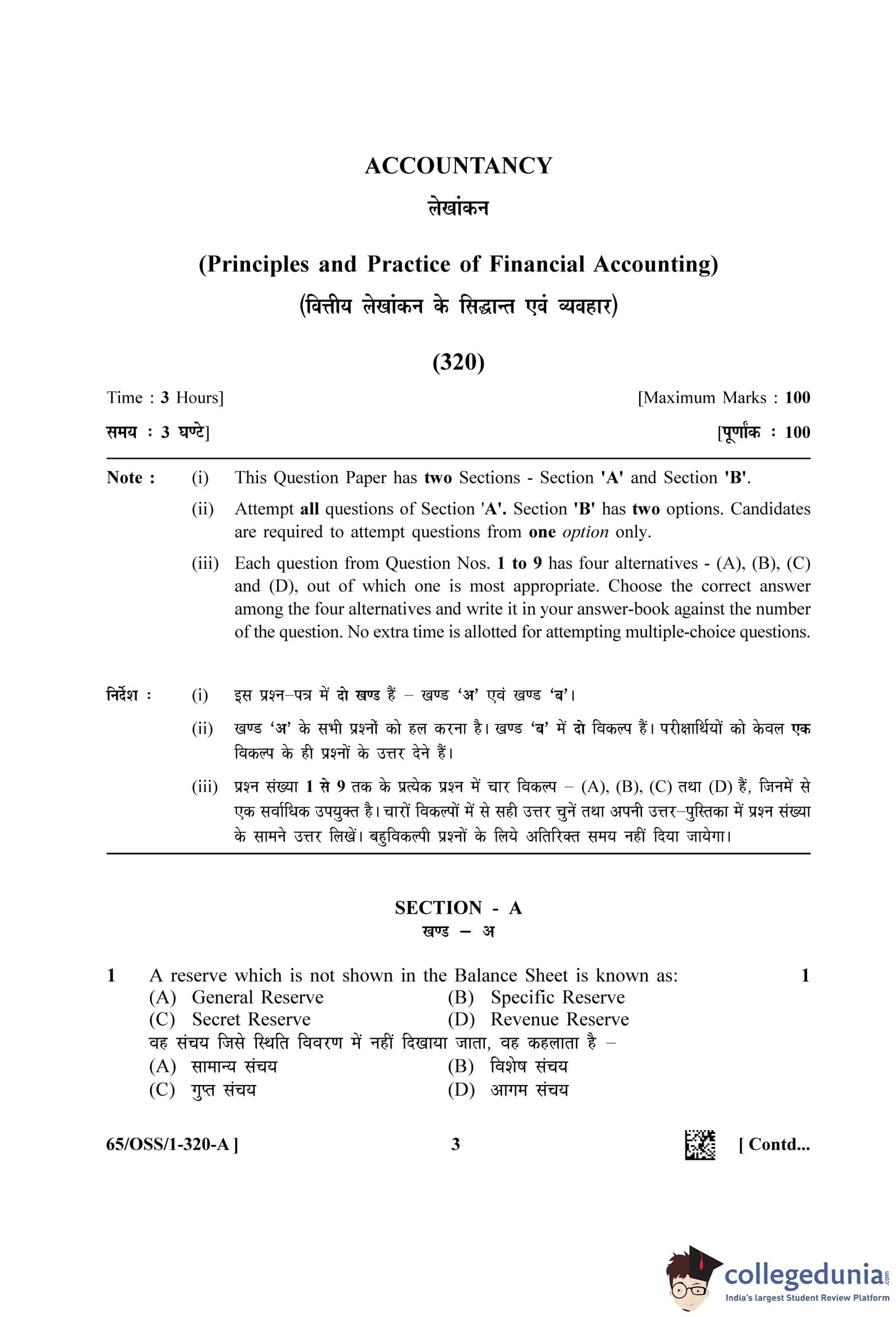 NIOS Class 12 Accountancy (Set A - OSS) Question Paper 2023 with Answer Key