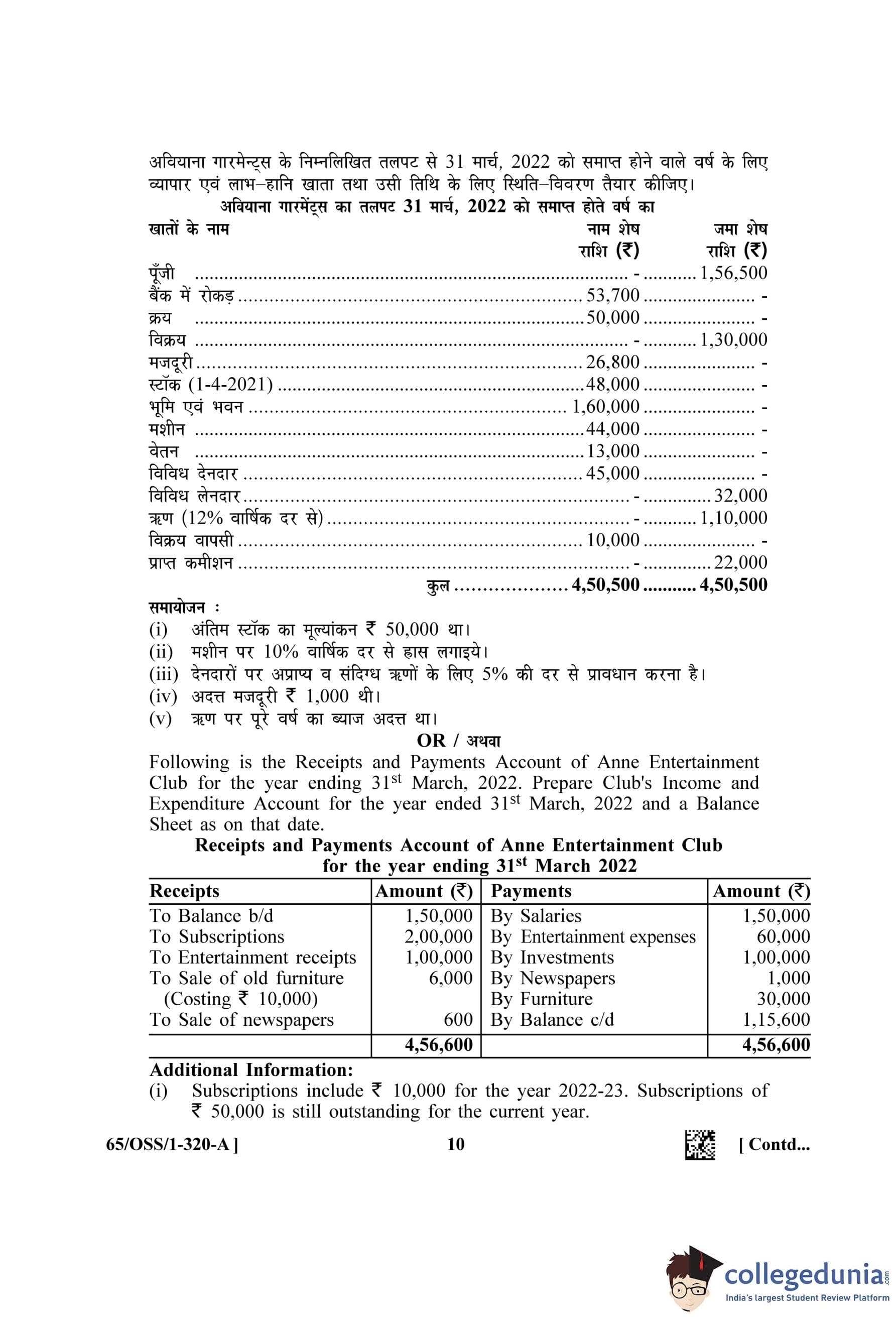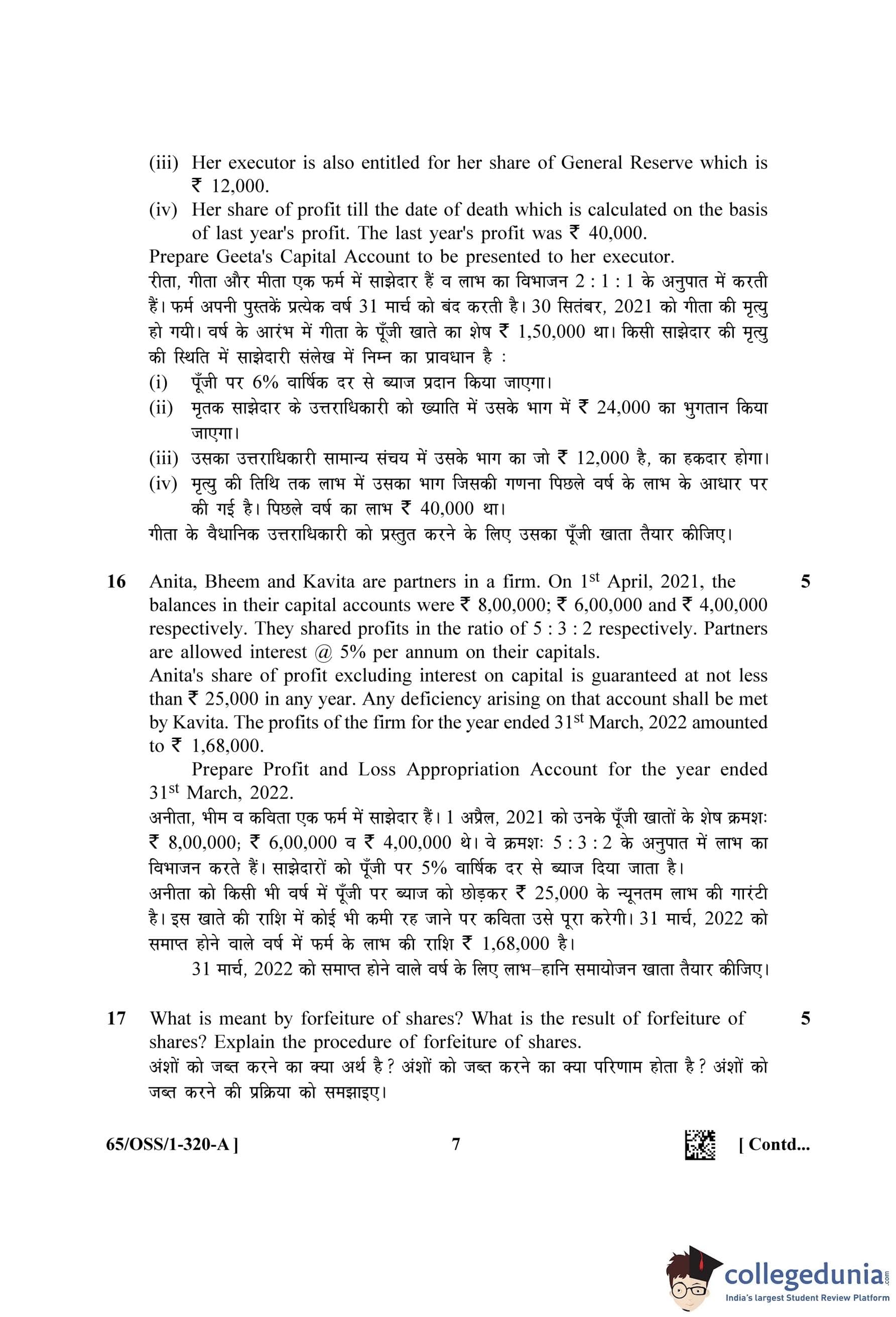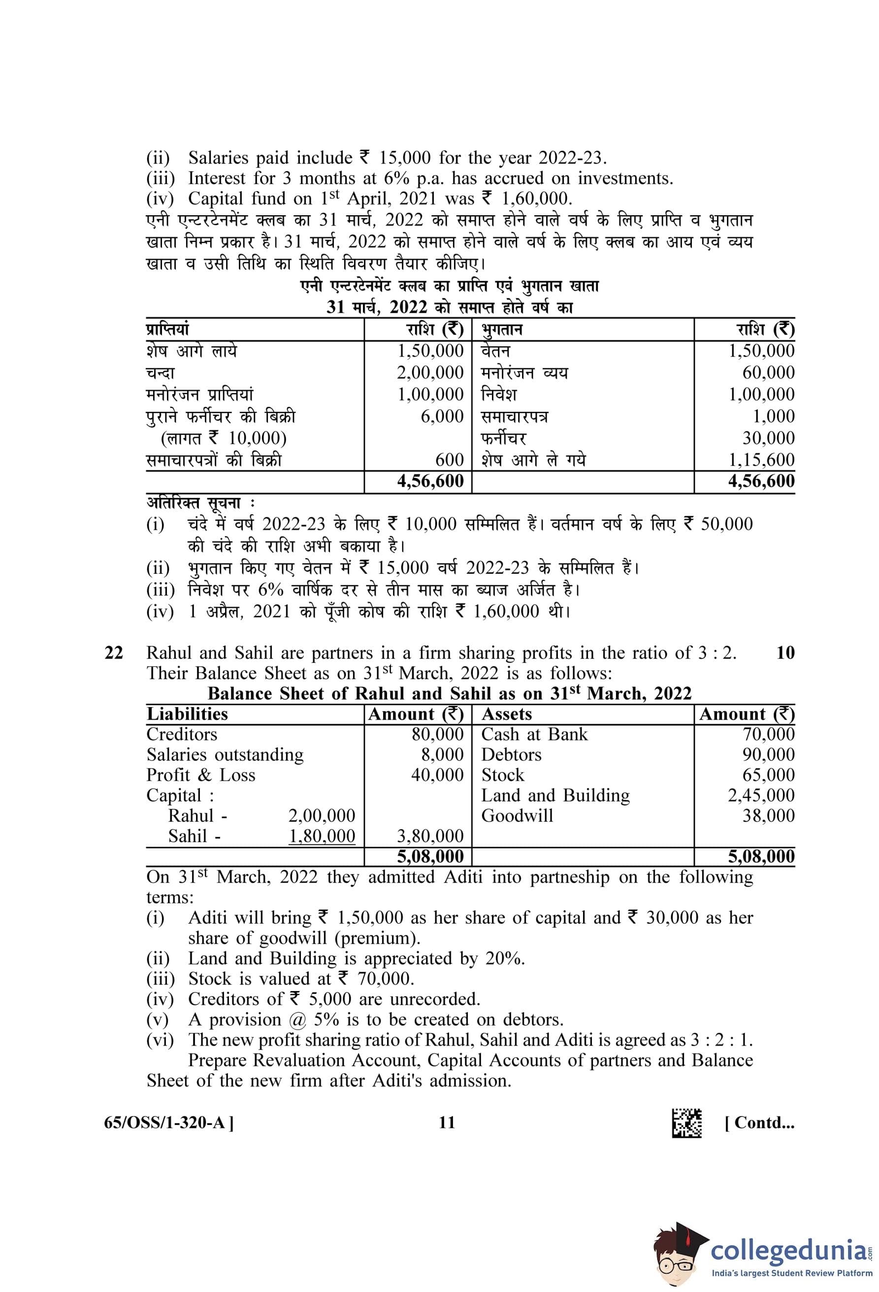 NIOS Class 12 Accountancy (Set A - OSS) Question Paper 2023 with Answer Key